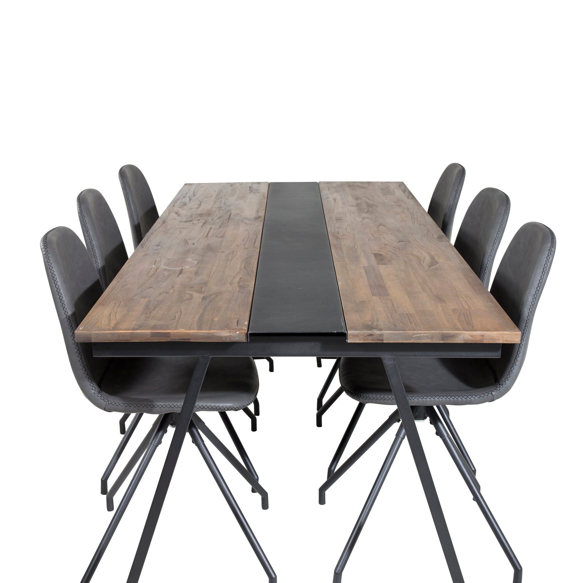 Jídelní stůl v Jakartě. 200*90*H75 - Tmavý týk / Černá+Polar Jídelní židle s funkcí Spin - černá Nohy - Černá PU - Black Stitches_6