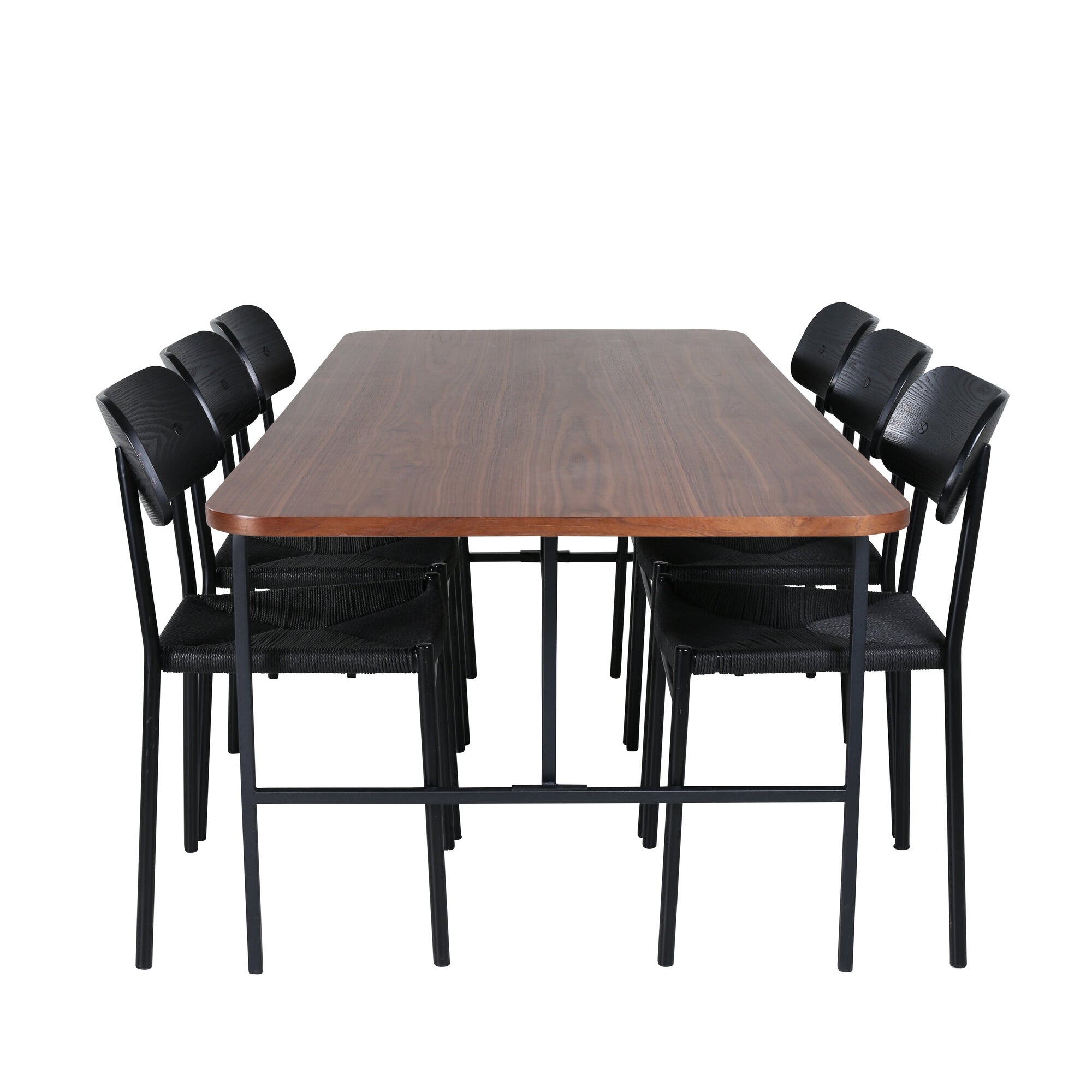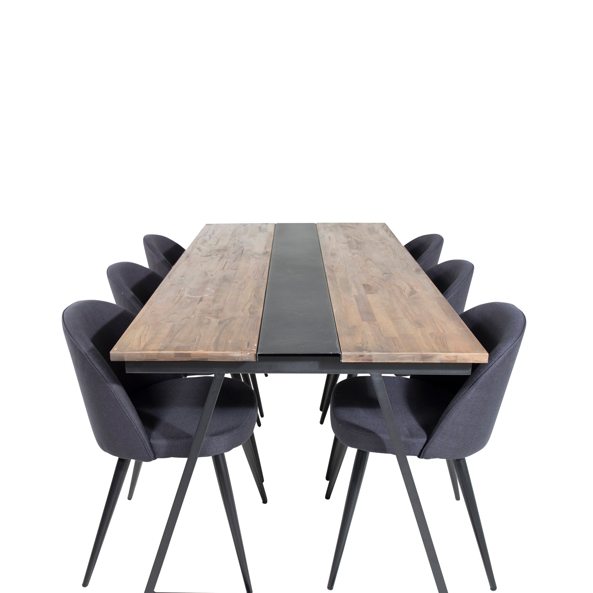 Jídelní stůl v Jakartě. 200*90*H75 - Tmavý týk / Černá+Sametová jídelní židle - Černé nohy- Black Fabric_6