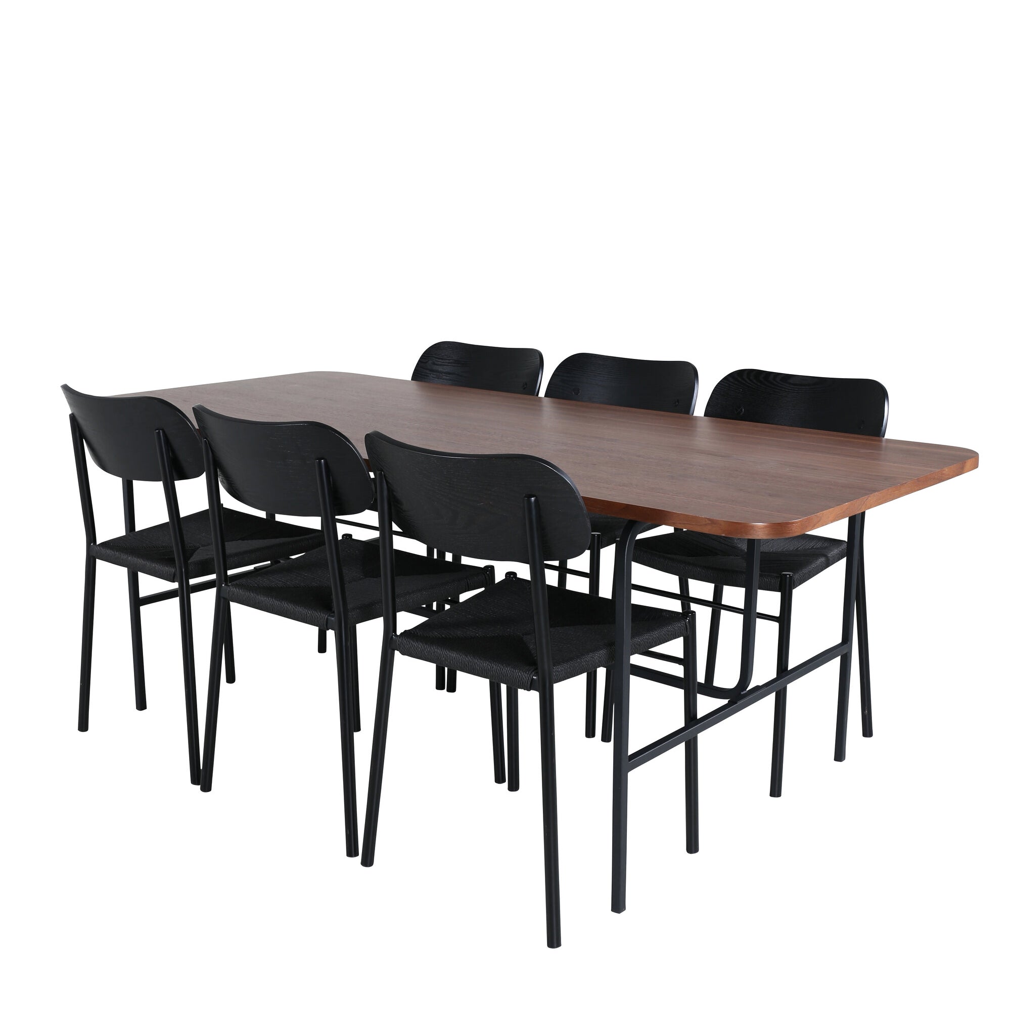 Garcia Jídelní stůl Alumnium – Hnědá / Obdélníková 100*200* + Vila Real Caféchair 2-balení – Hnědá/Černá _6