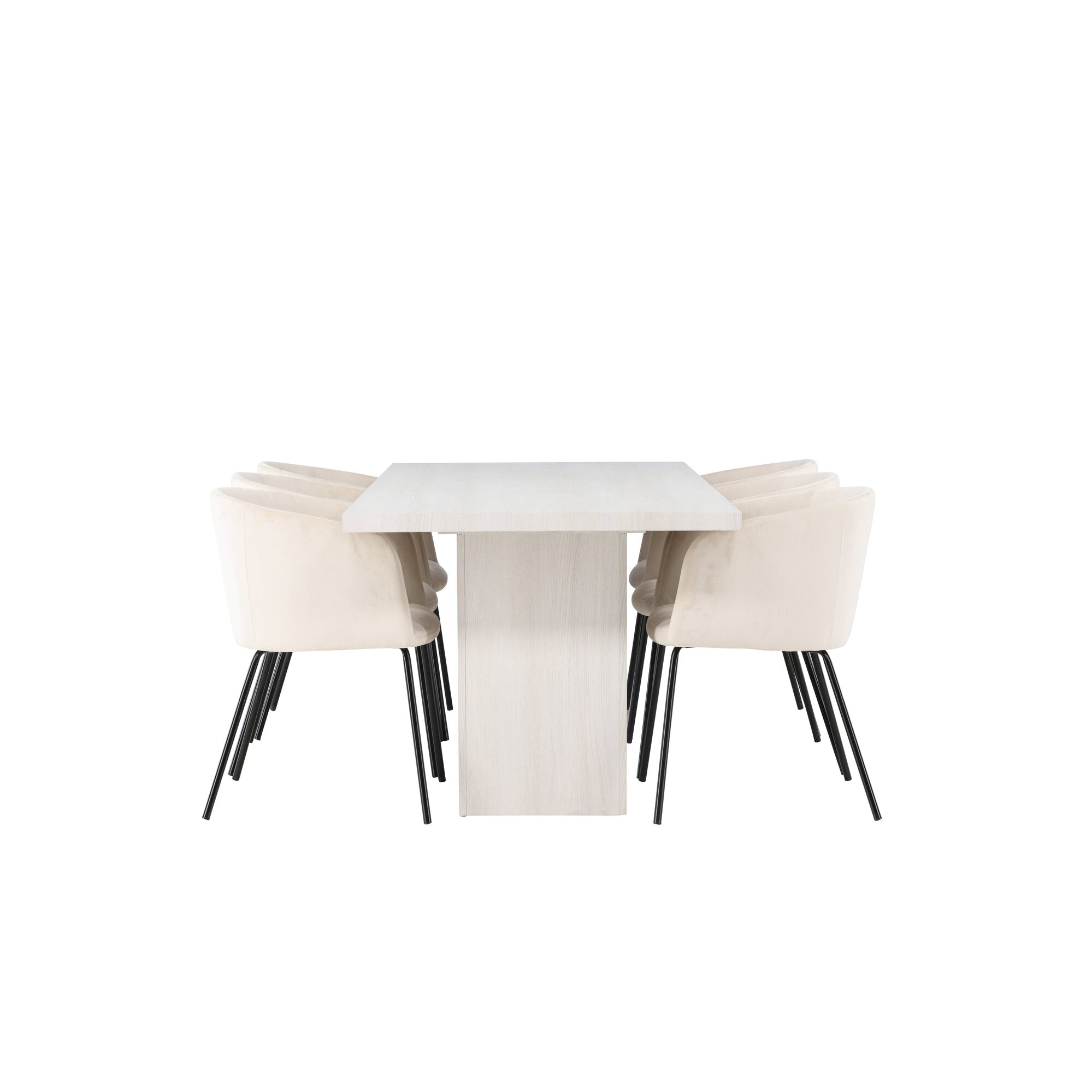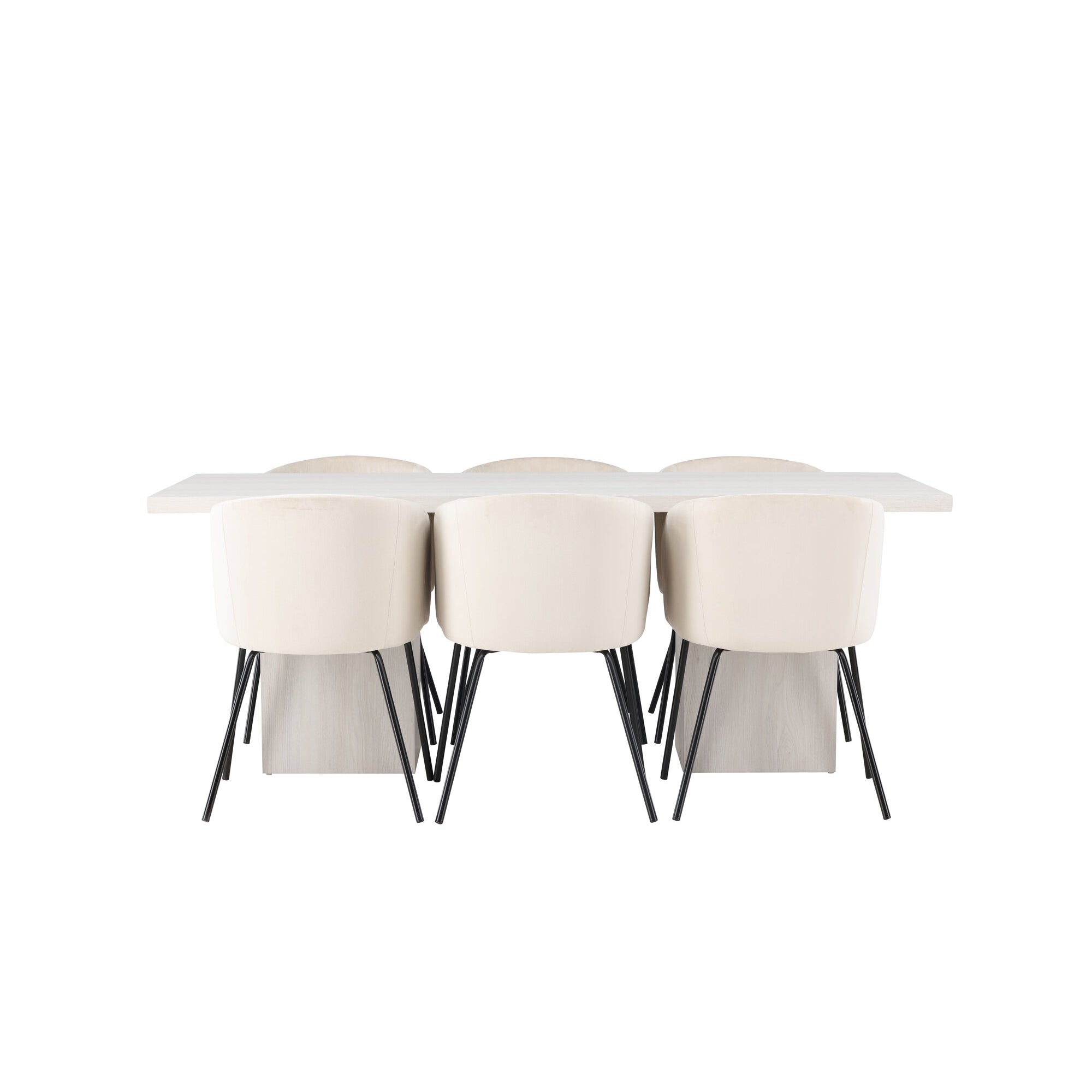 Olga Jídelní stůl 200*75 - White Wash + Židle Berit - Černá / Béžová Velvet _6