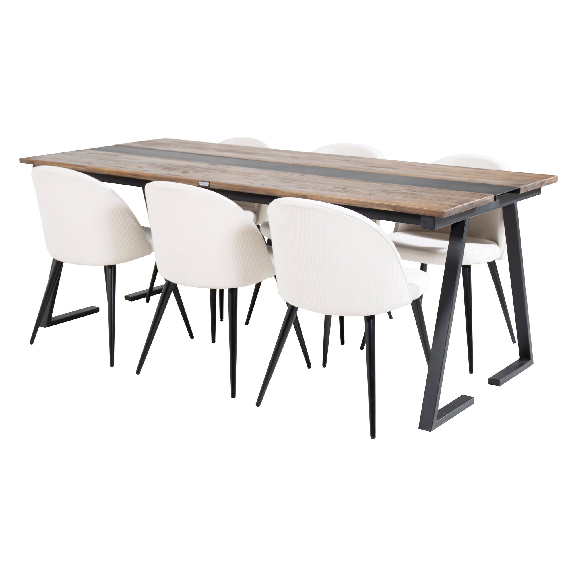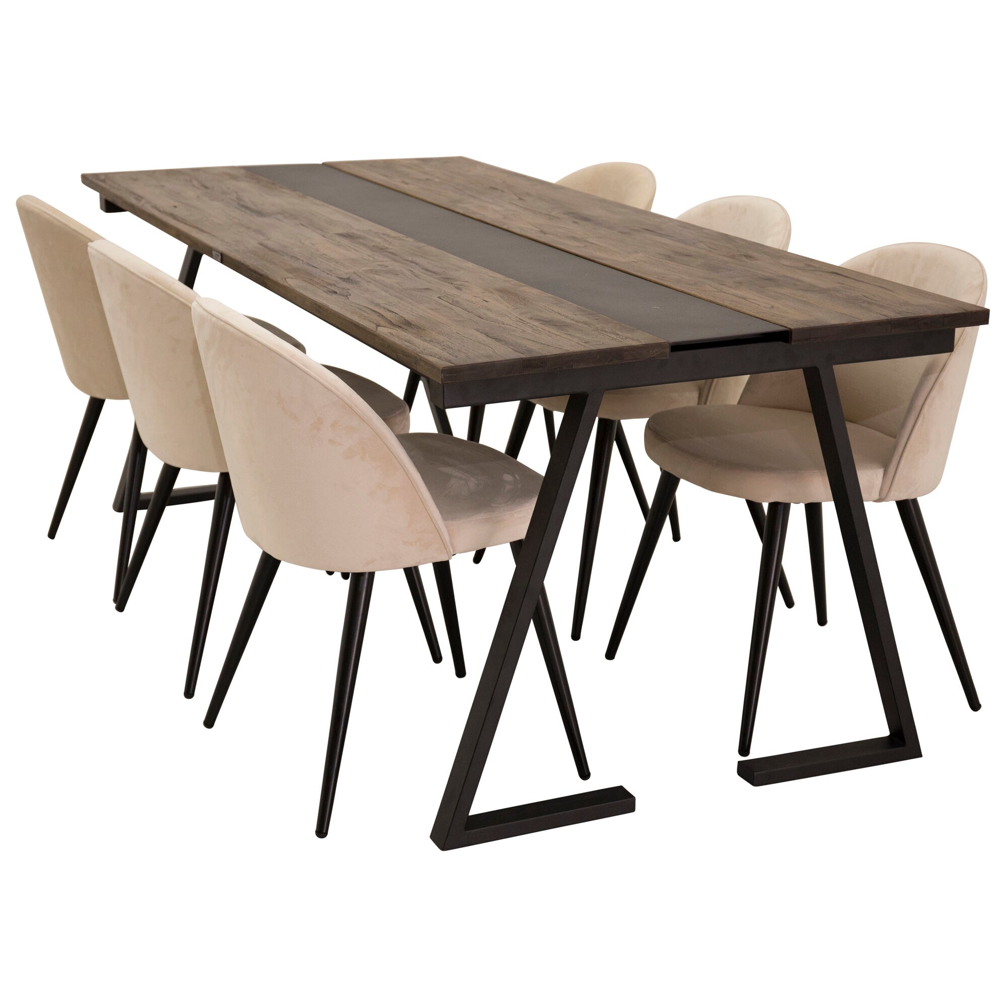 Jakarta Matbord - Svart / mörk Teak - 200*90*H75+Velvet Matstol - Svart / Créme