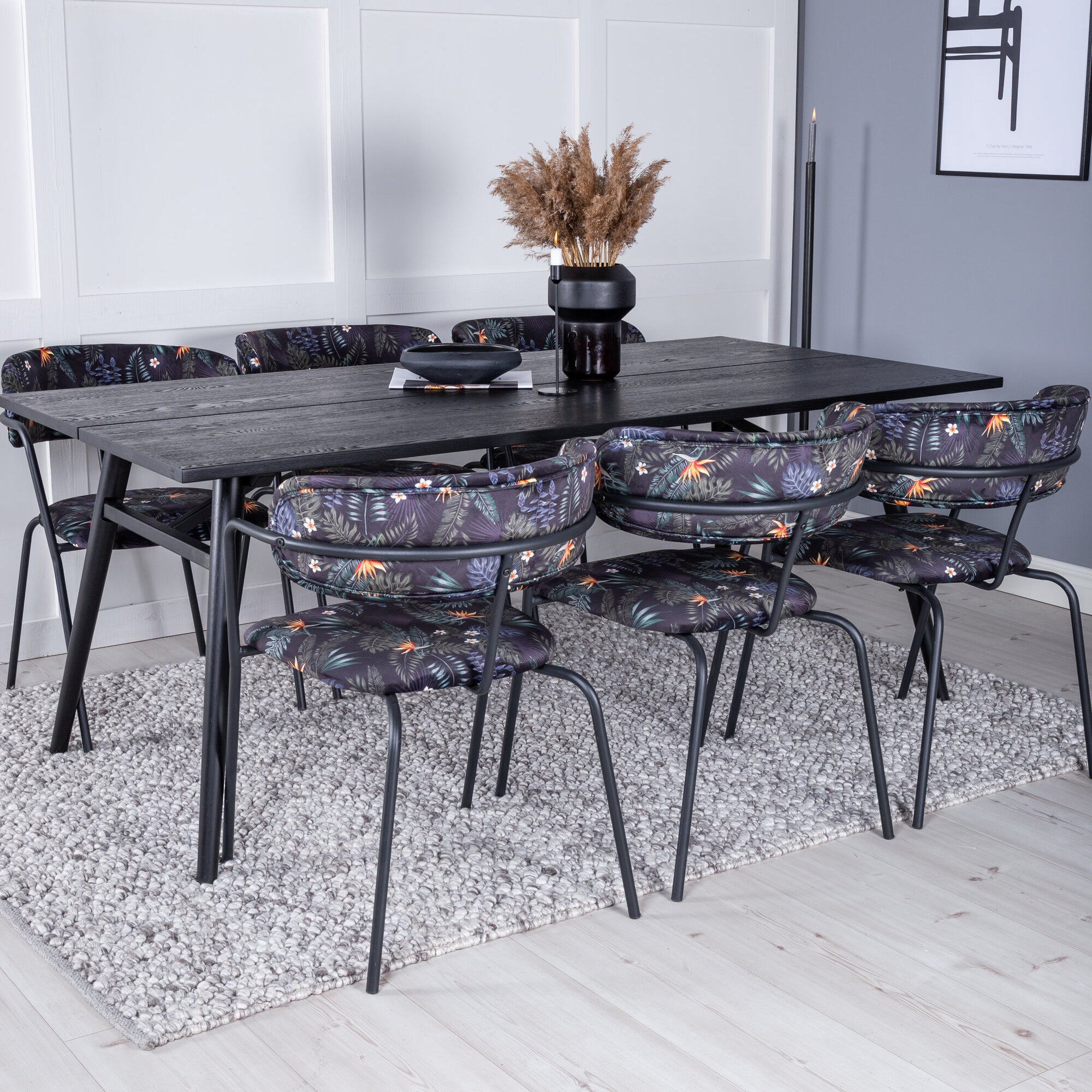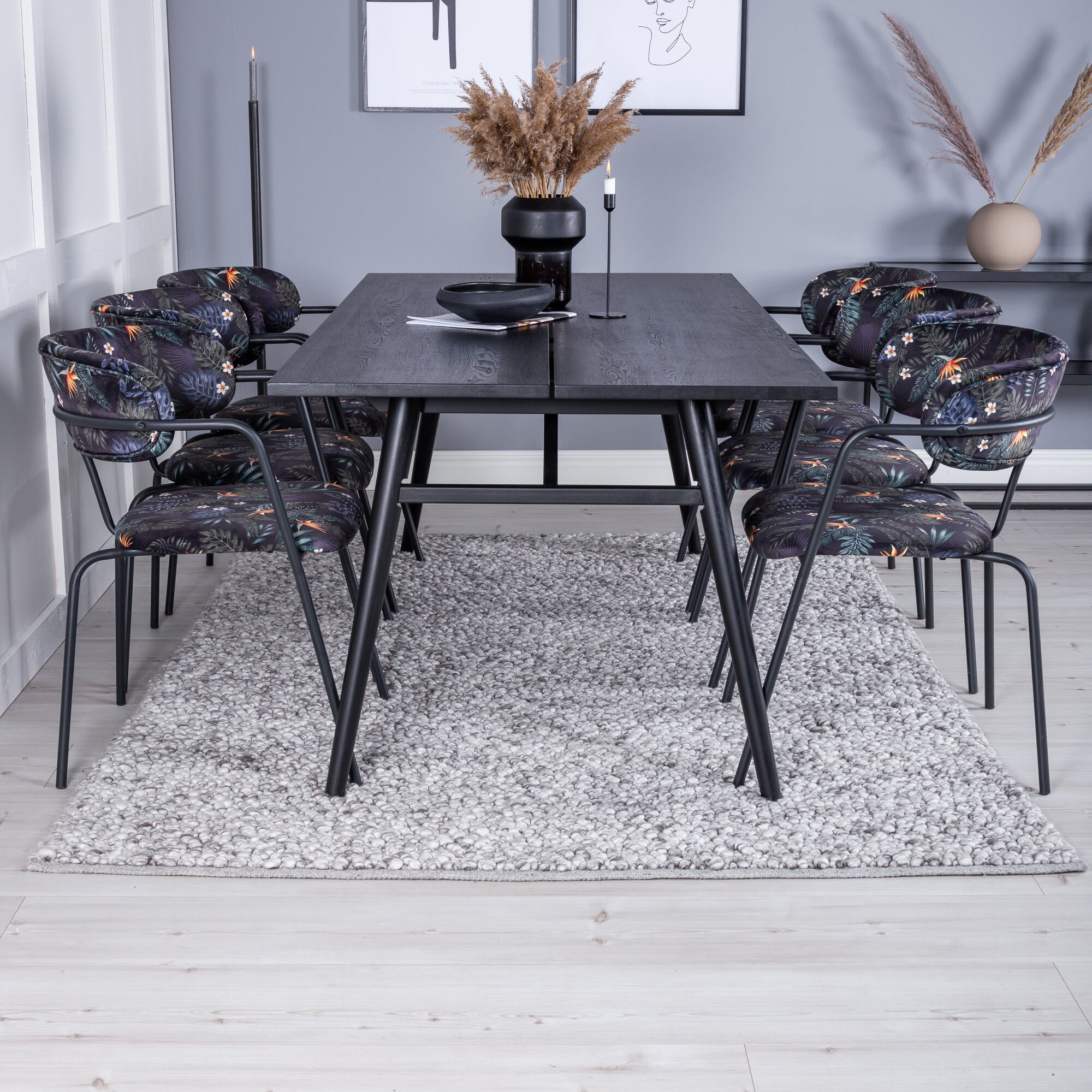 Olga Jídelní stůl 200*75 - White Wash +Yesterday Jídelní židle - Black / Black Boucle _6