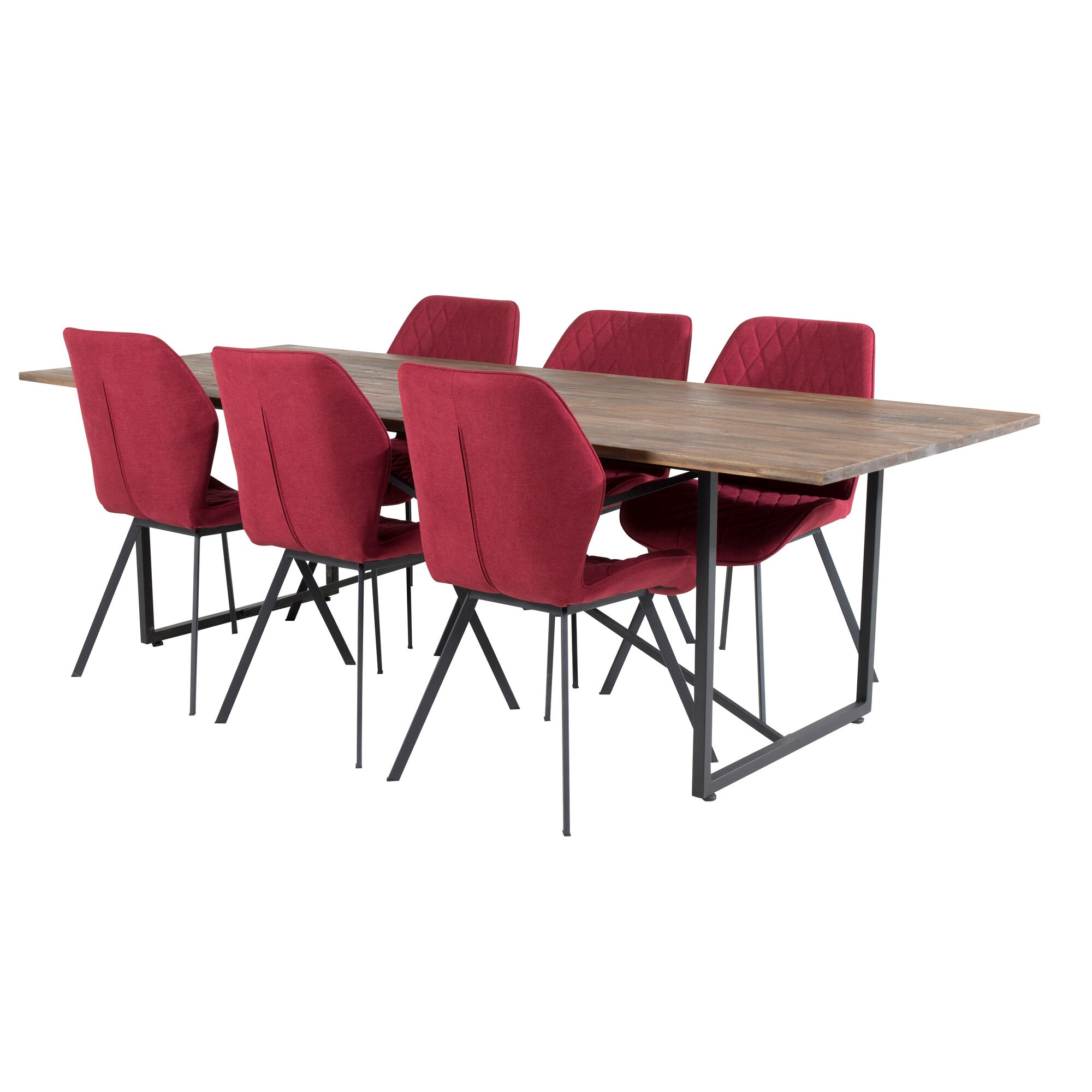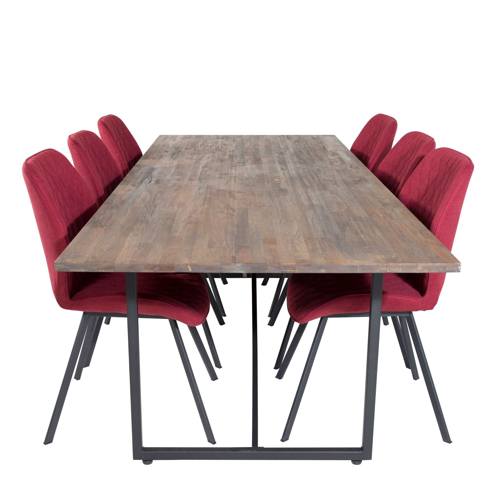 Jídelní stůl Padang – 250*100*H76 – Tmavý teak / Černá+Gemma jídelní židle – Černé nohy – Červená látka_6
