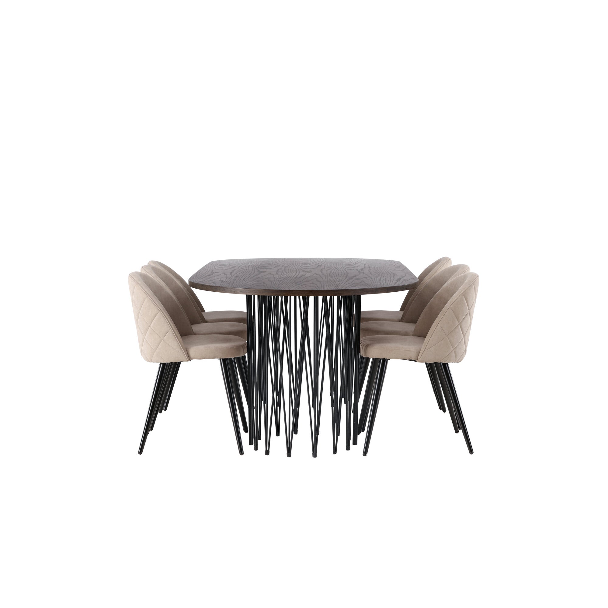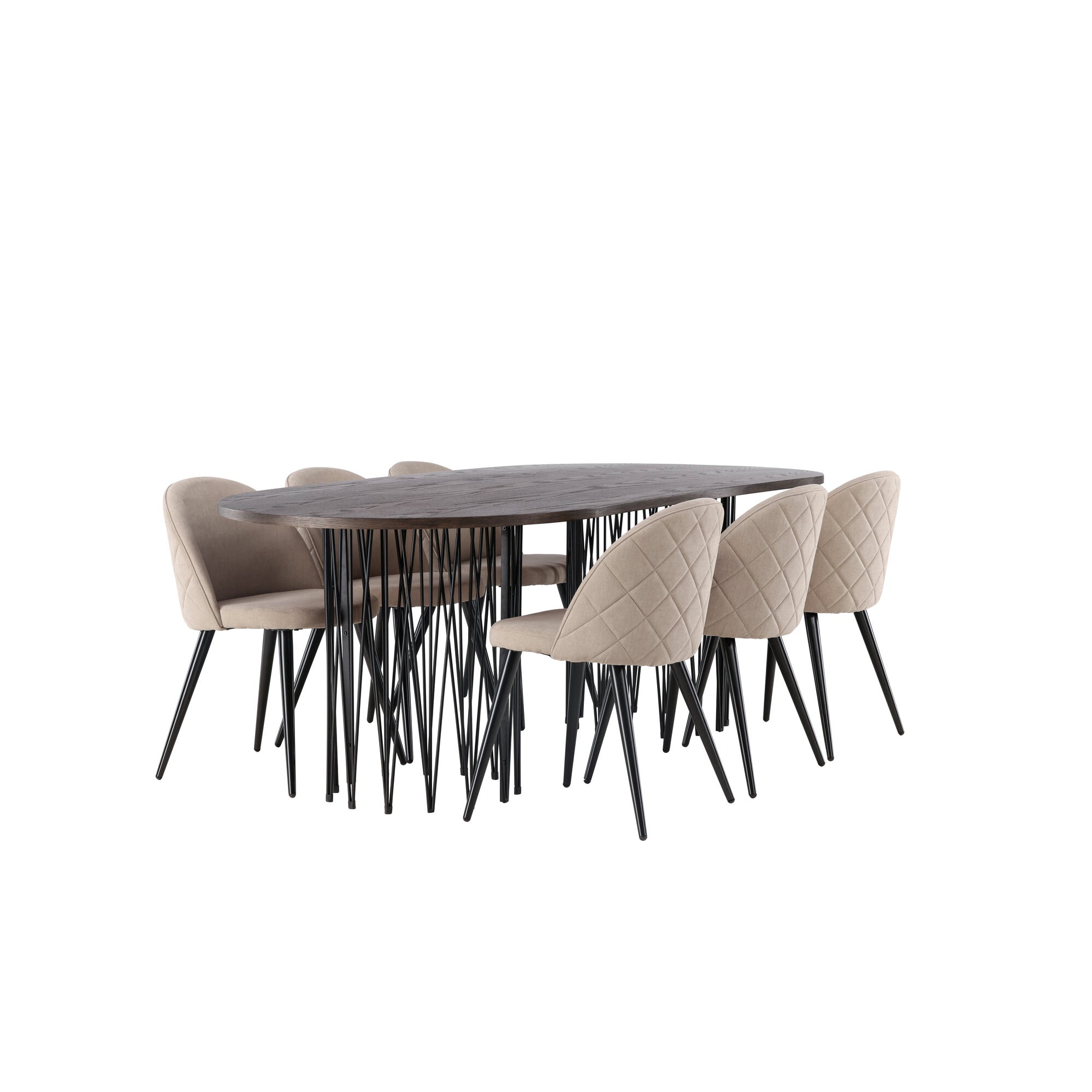 Bianca oválný jídelní stůl , ořechová černá dýha + židle se sametovými stehy , černá béžová Velvet_4