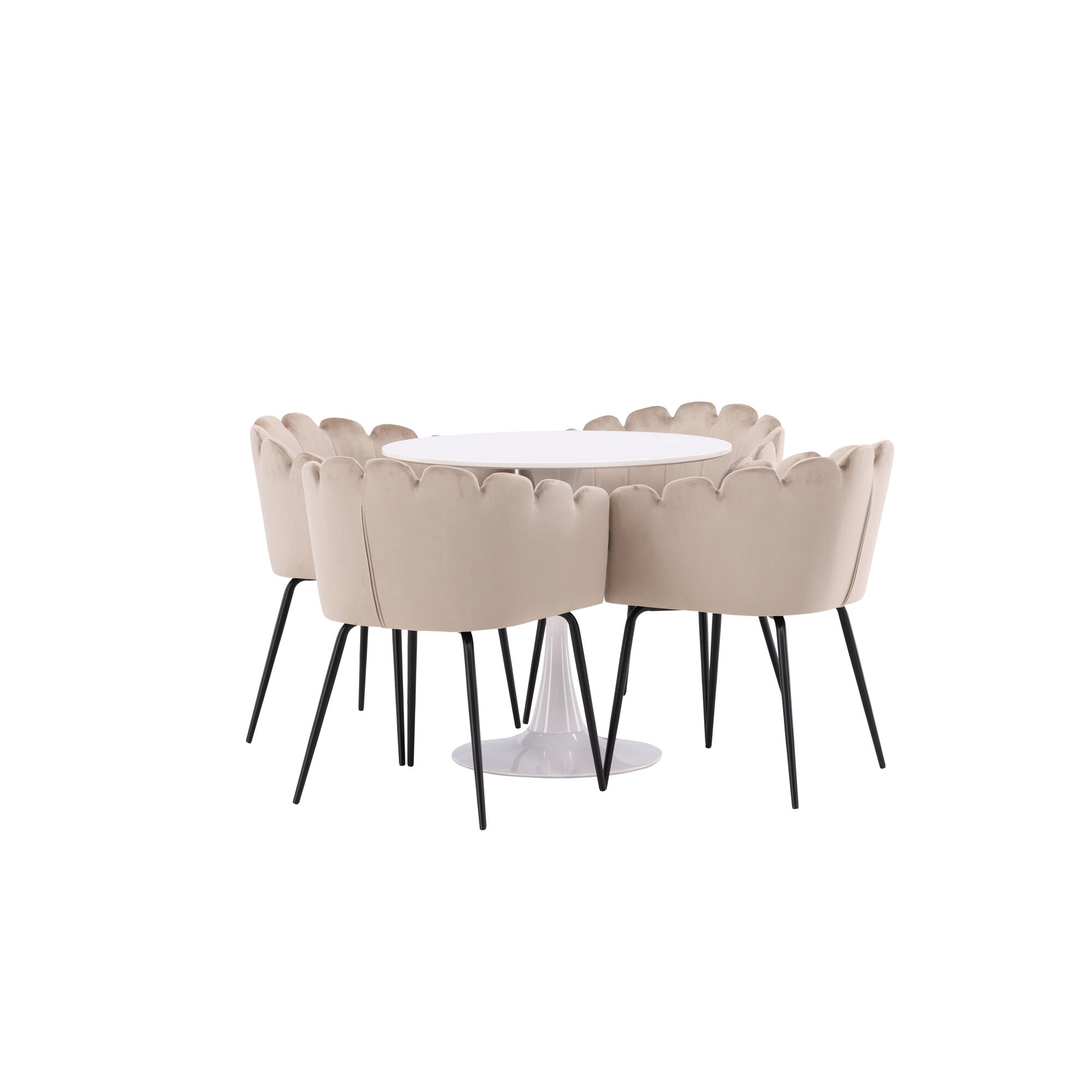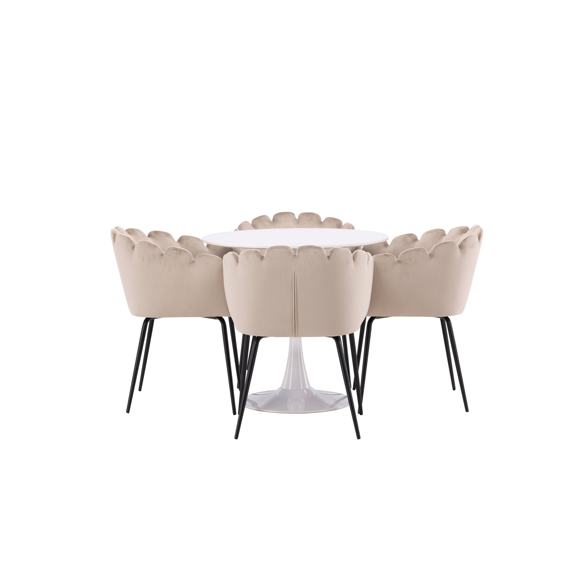 Jídelní stůl Hamden - Bílá MDF+Židle Limhamn - Černá / Béžová Velvet_4
