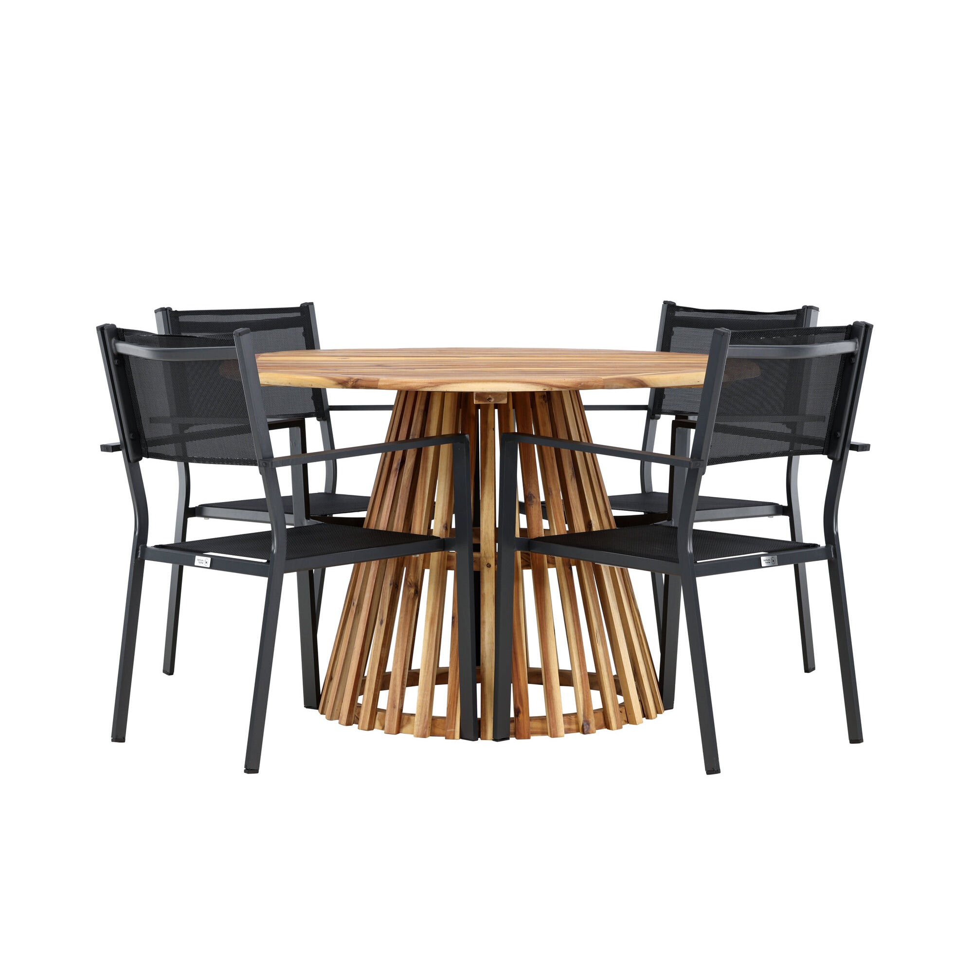 Lumpur Jídelní stůl Akácie - Teaklook / Kulatý ø110**75 + Stohovací židle Copacabana - Černá/Černá - Ersätter 4131-408 _4