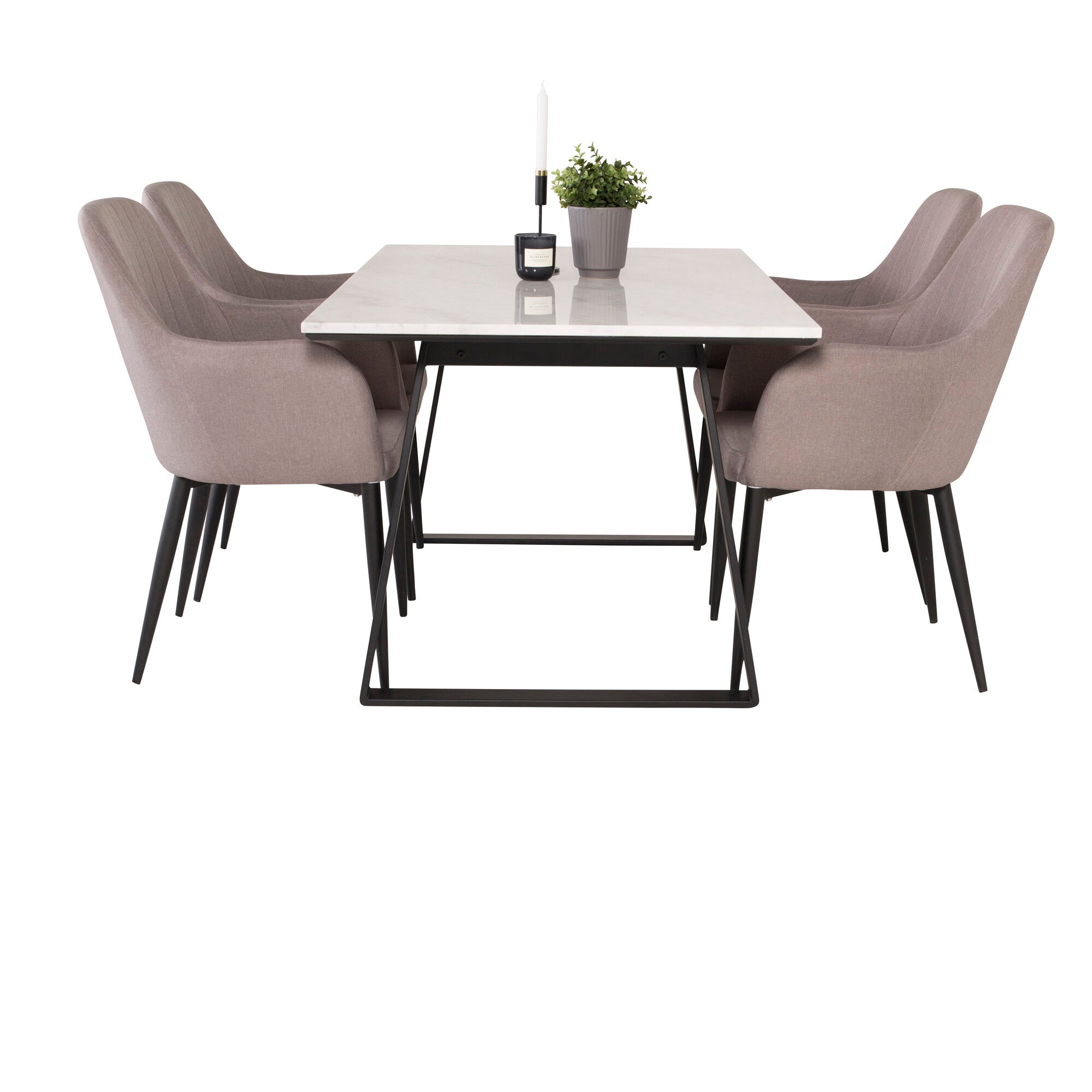 Jídelní stůl Estelle 140*90 – bílý mramor / černé nohy + pohodlná židle 2-balení Polar grey – černé nohy _4