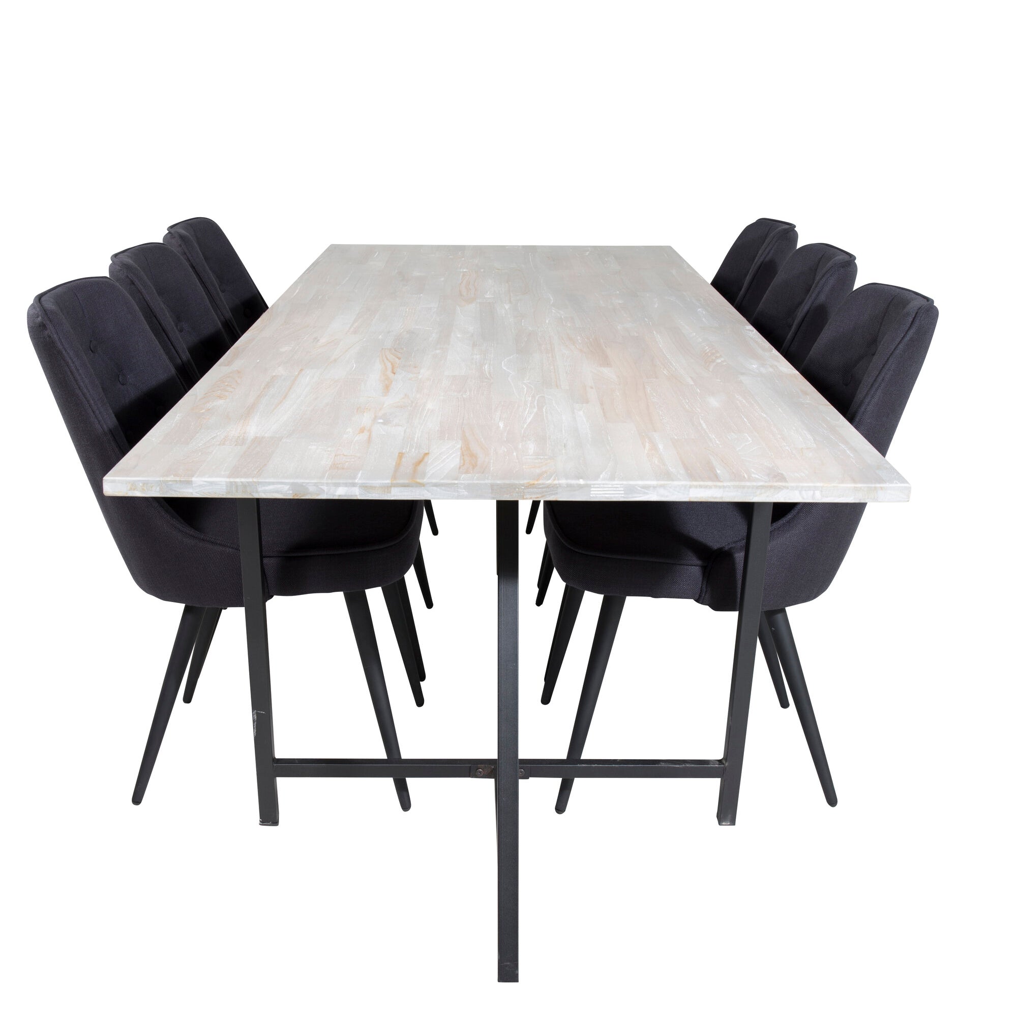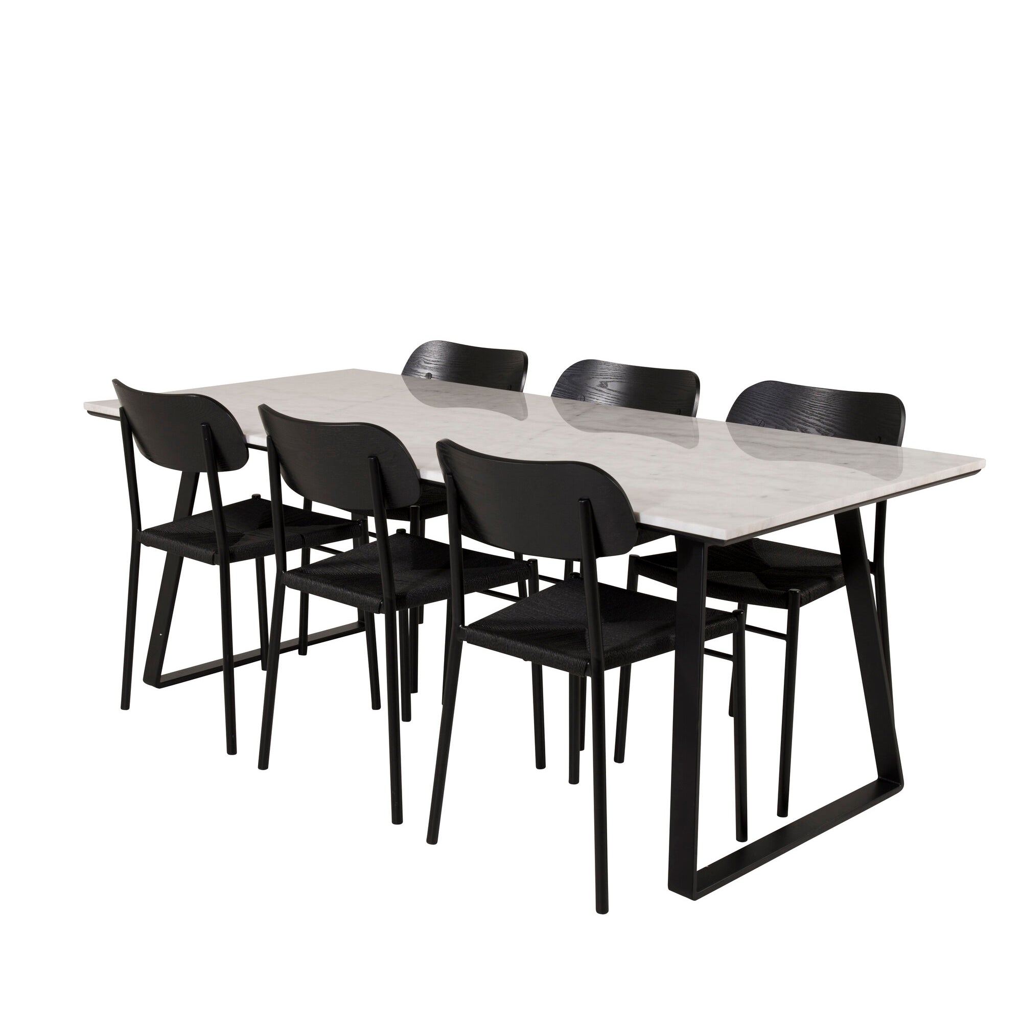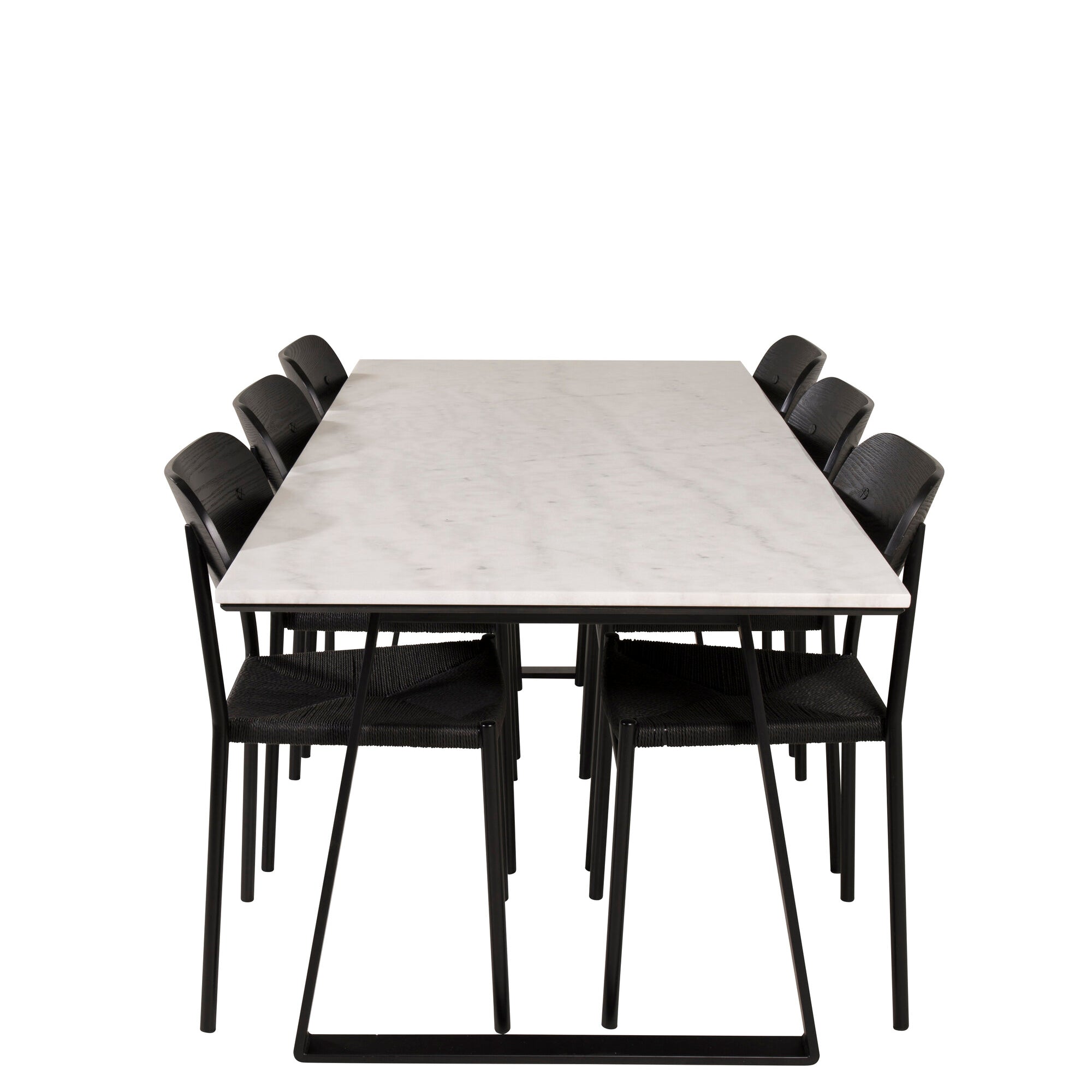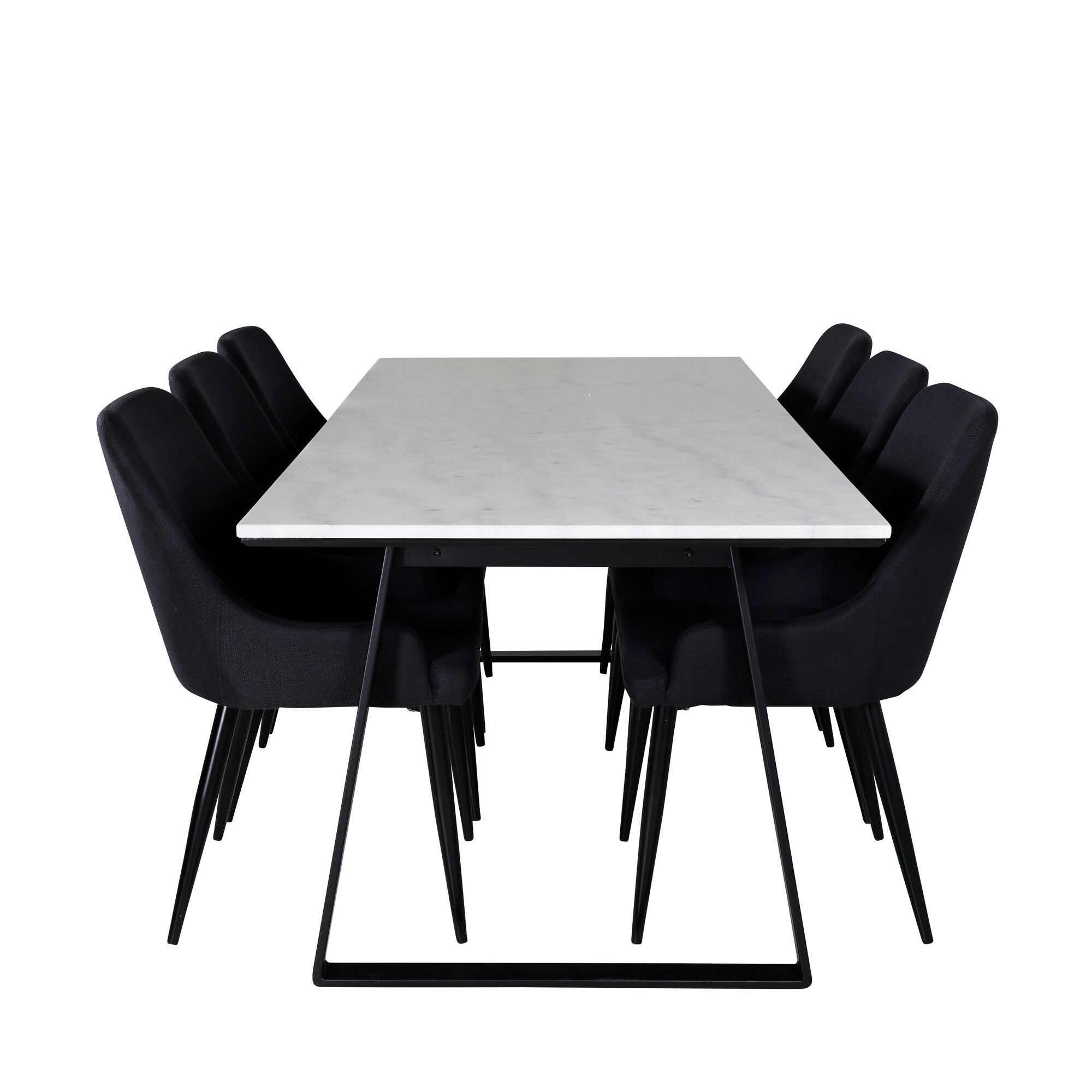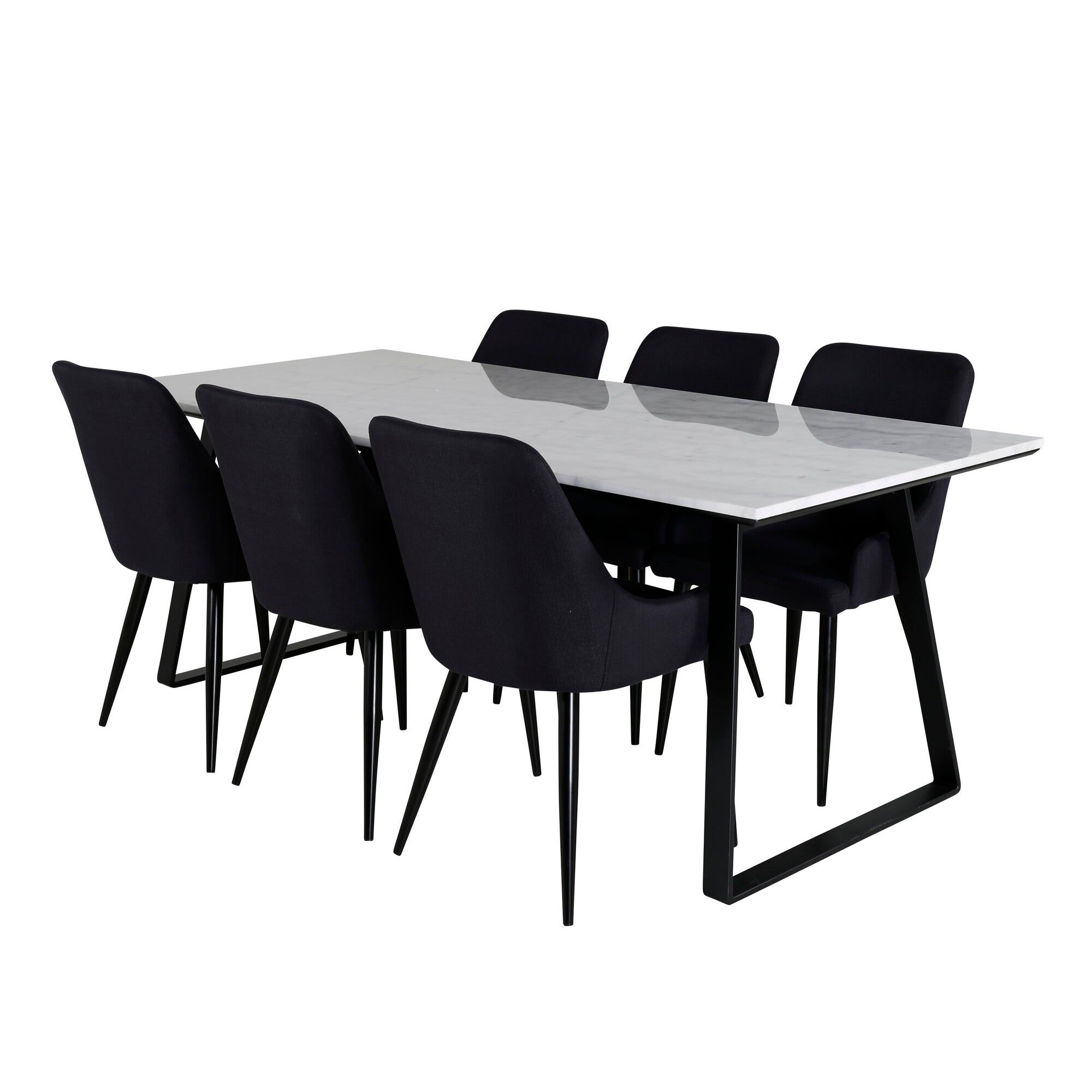 Estelle Jídelní stůl 200*90*H76 - Bílá / Černá+Plaza Jídelní židle - Černé nohy - Černá Fabric_6