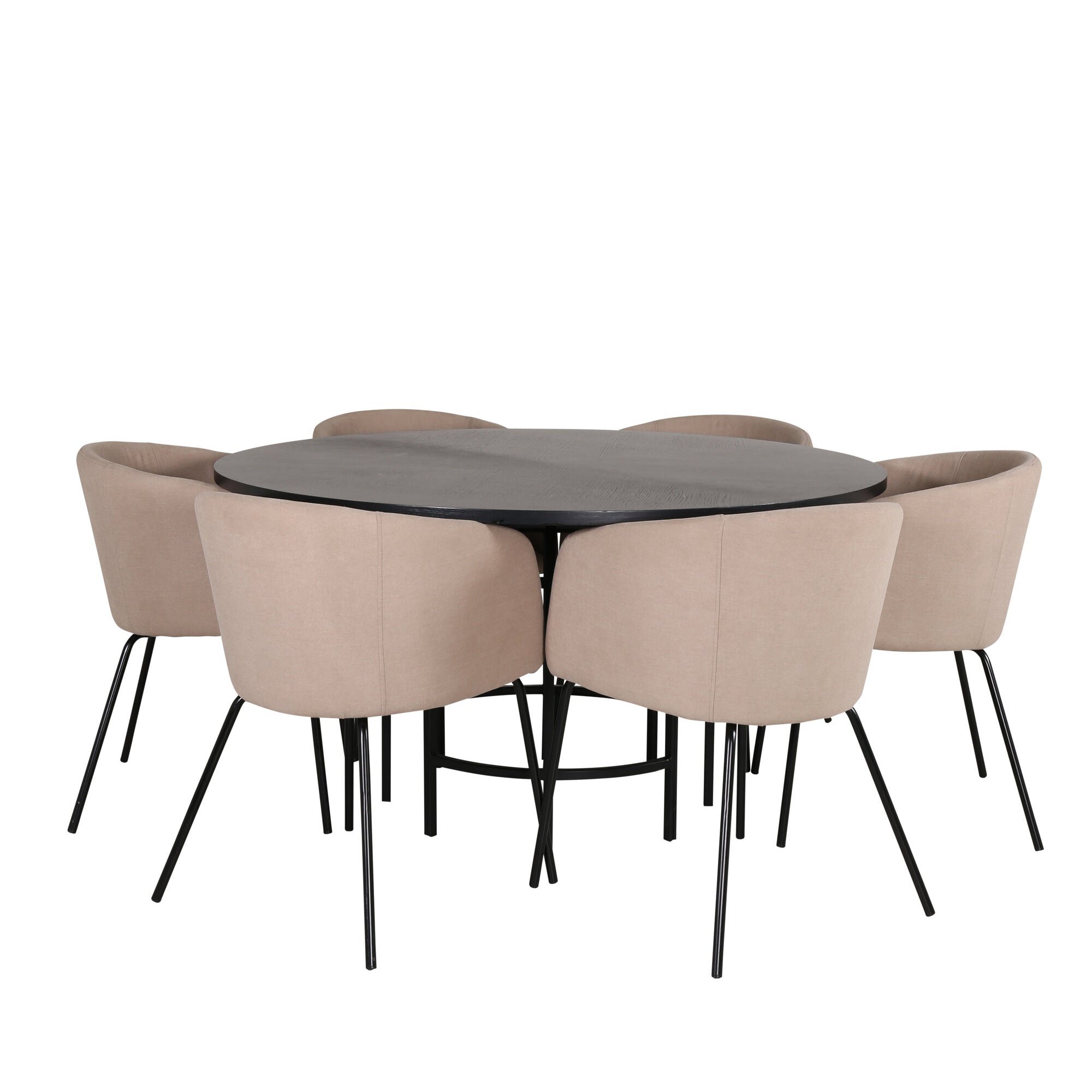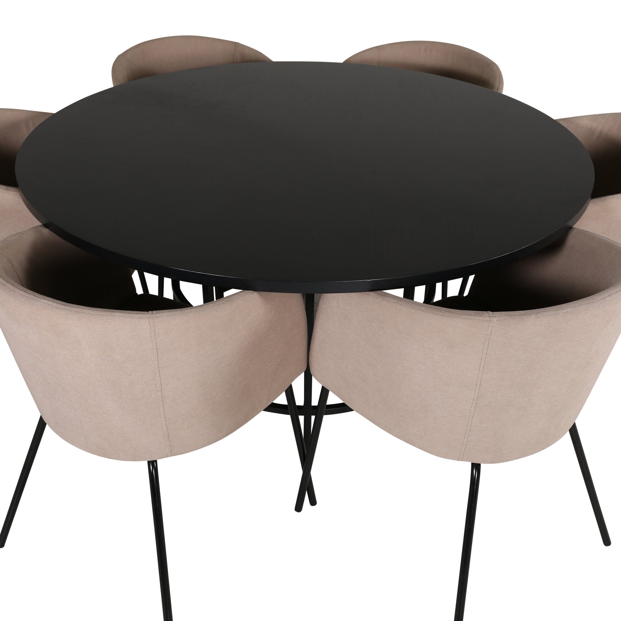 Copenhagen - Jídelní stůl kulatý - Černá / Černá + židle Berit - Černá / Béžová látka (polyesterové prádlo)_6