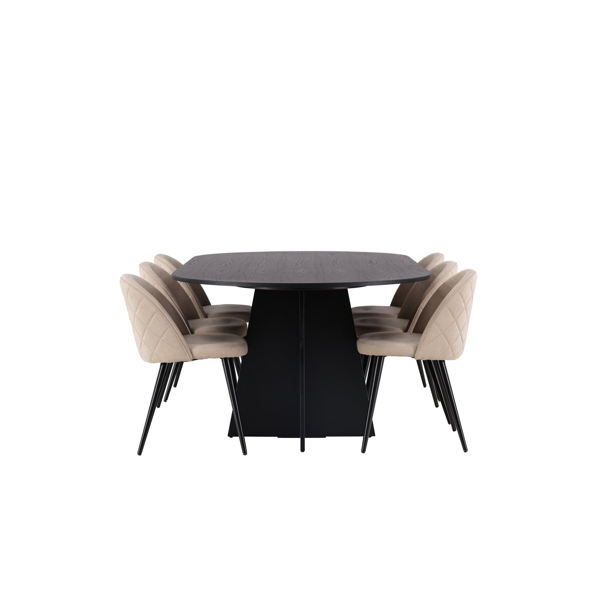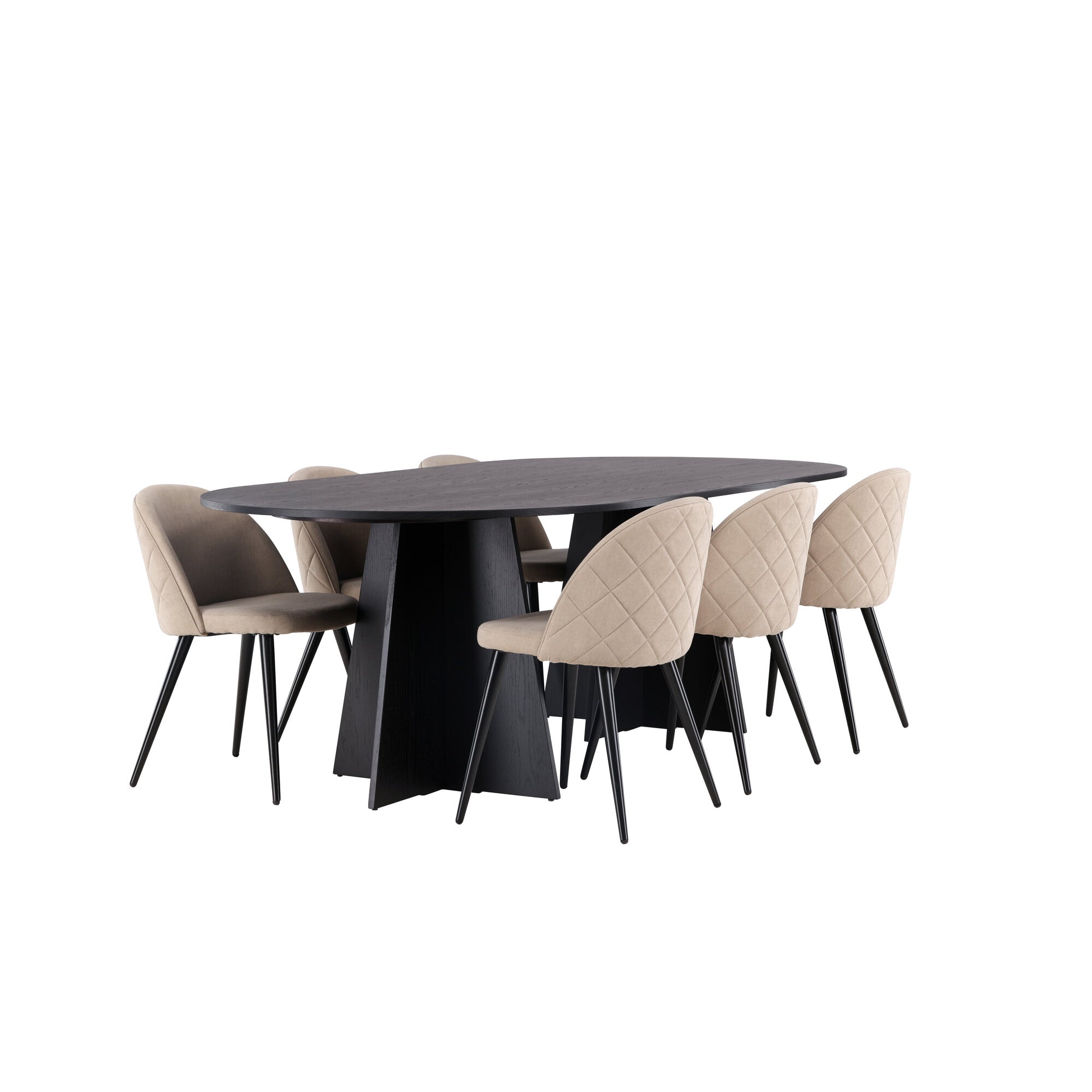 Bootcut oválný jídelní stůl - černá / černá Fanéer + židle se sametovými stehy - černá / béžová látka (polyesterové prádlo) _6