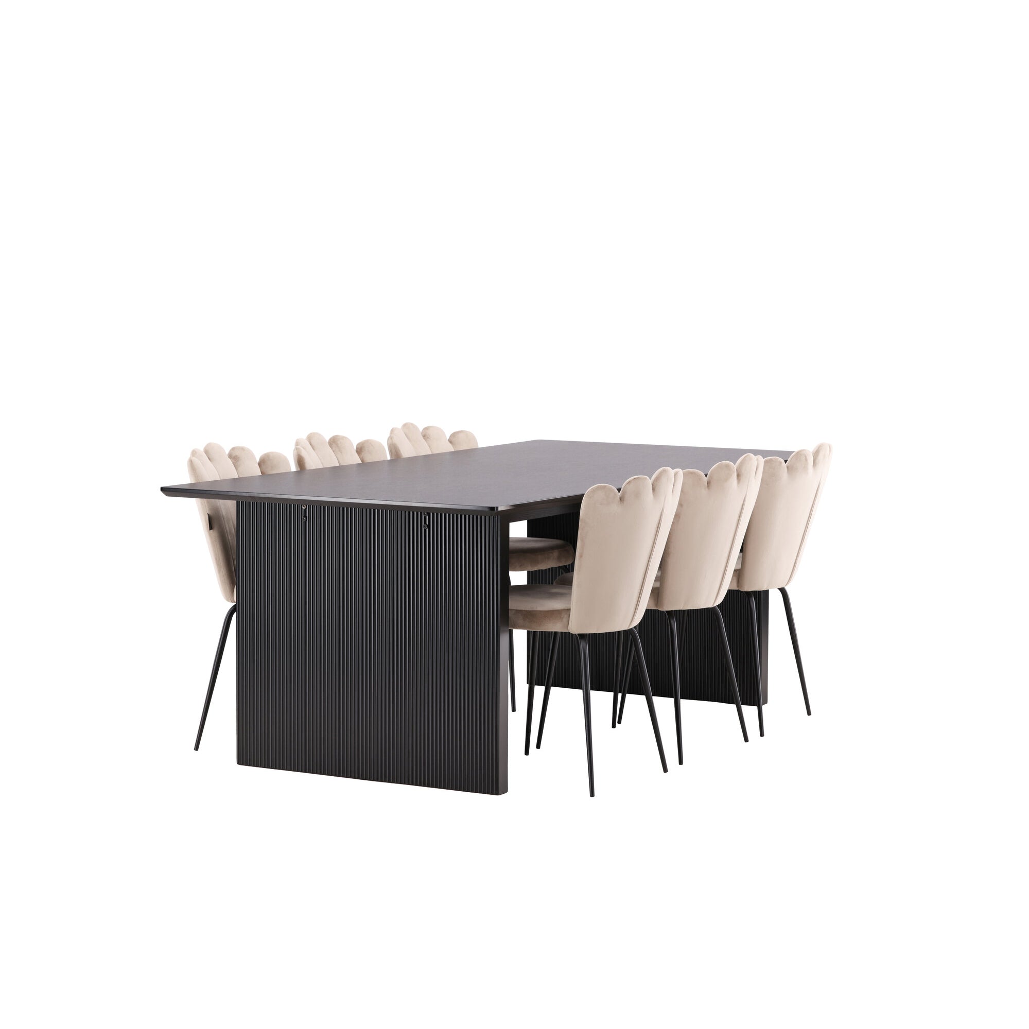 Padang Matbord - Svart / mörk Teak - 250*100*H76+Polar Jídelní židle - Černé nohy / Beige Velvet_6