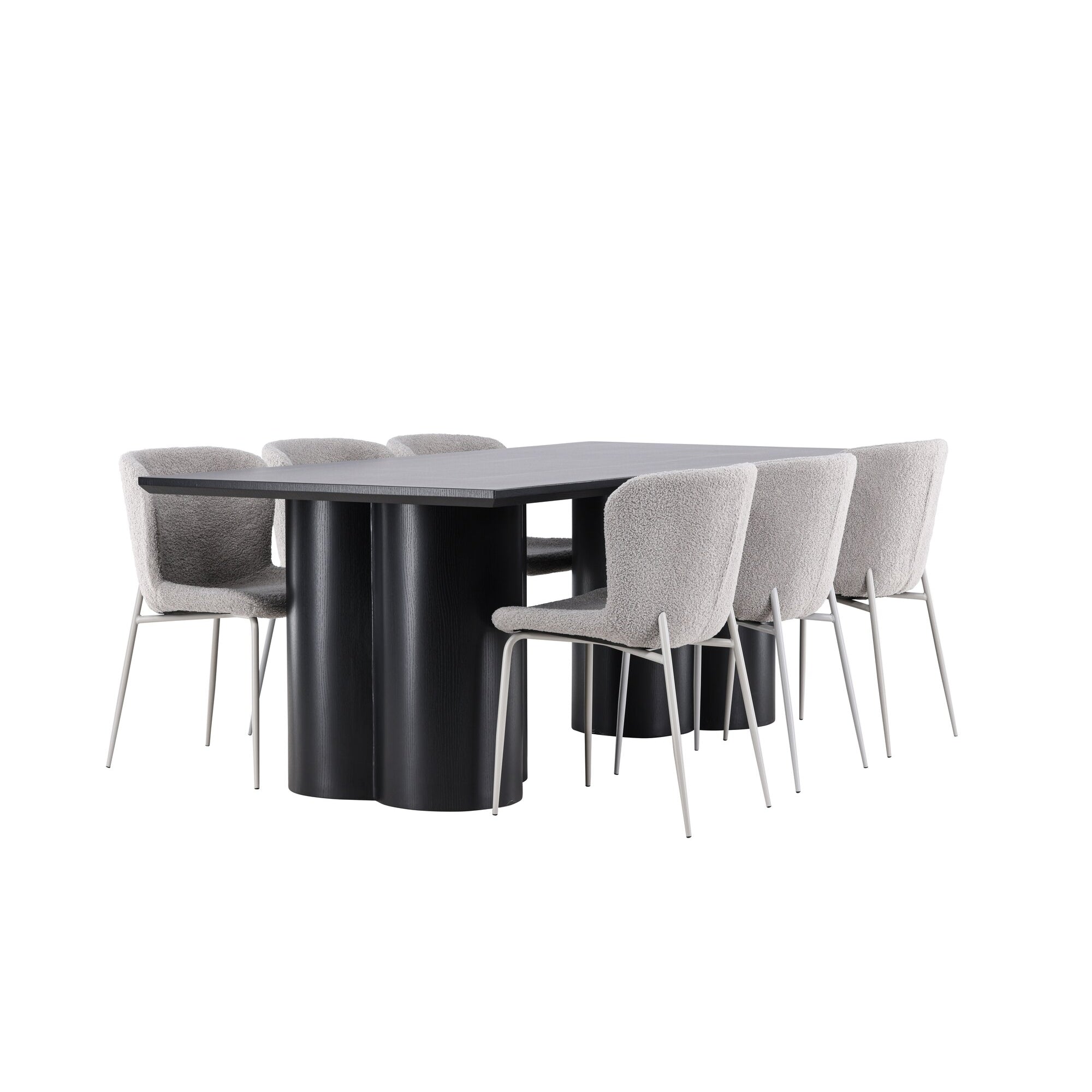 Olga Jídelní stůl 200*75 - White Wash + Ranní jídelní židle - Black / Black Boucle _6