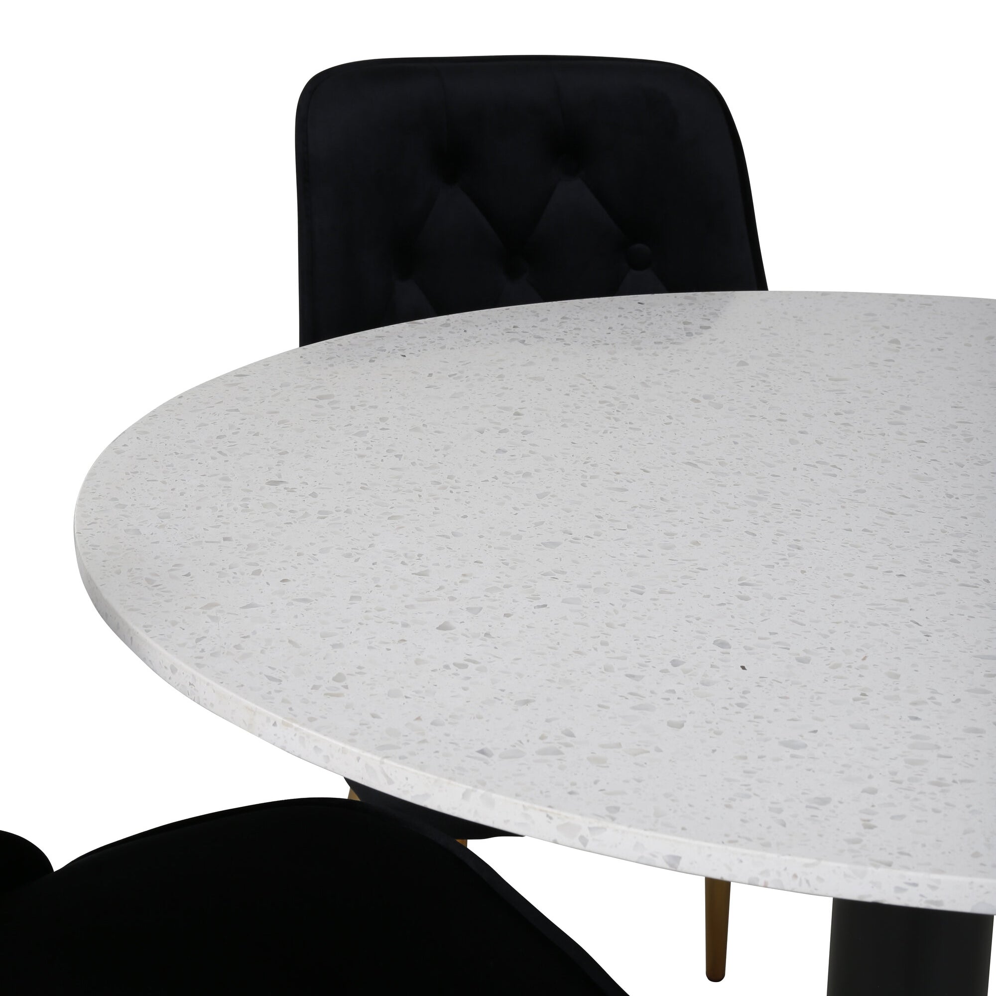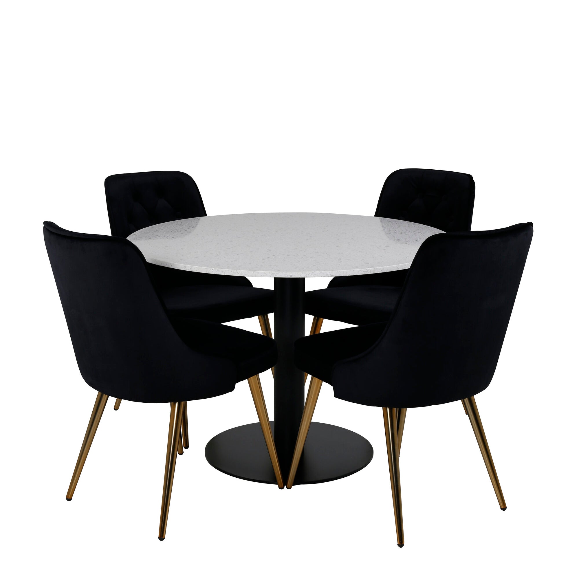 Jídelní stůl Razzia 106 cm -Bílá Terazzo / Černá - Sametová luxusní židle - Černá/matná mosaz noha 4