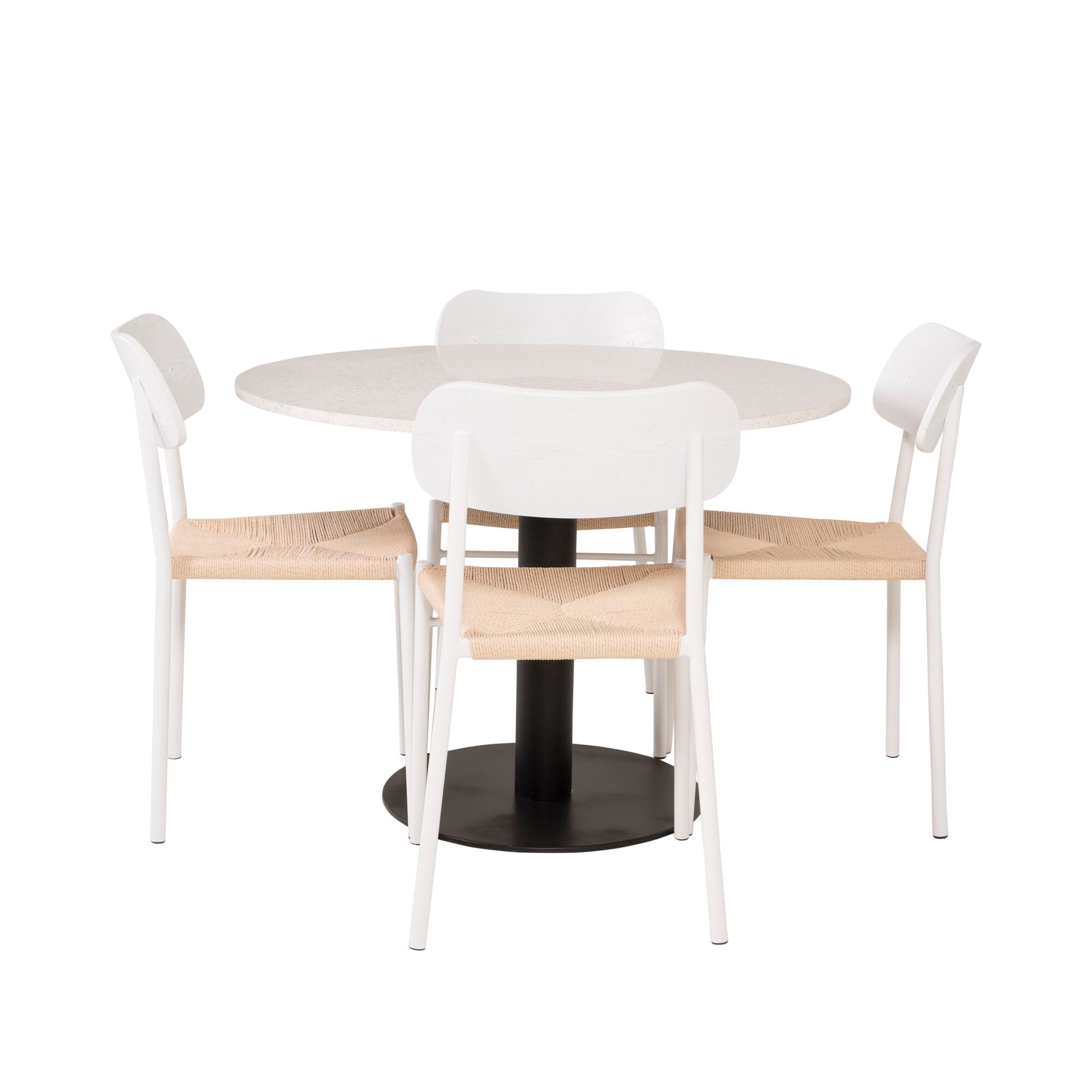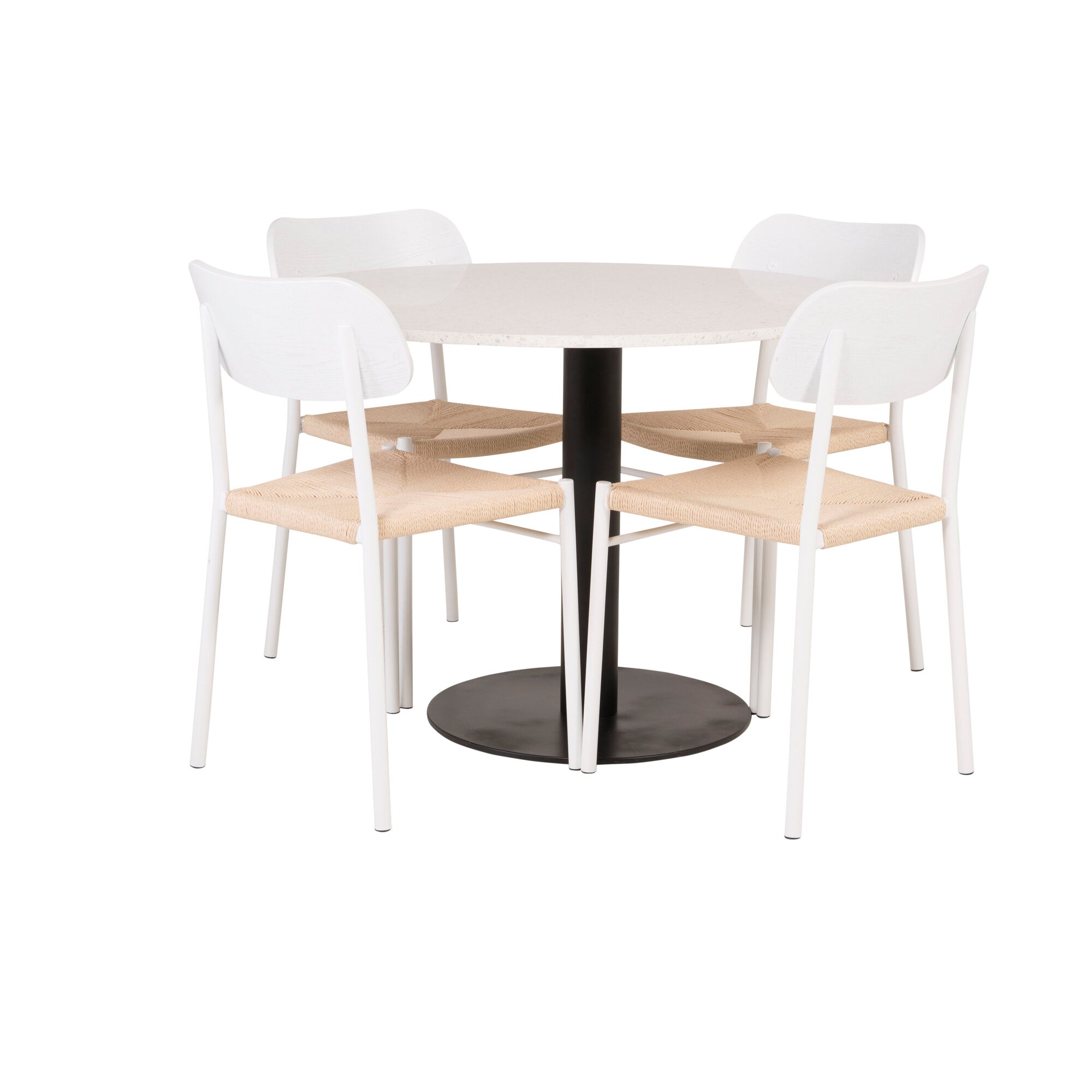 Razzia Jídelní stůl 106cm -Bílá Terazzo / Černá +Polly Jídelní židle - Bílá / Přírodní _4
