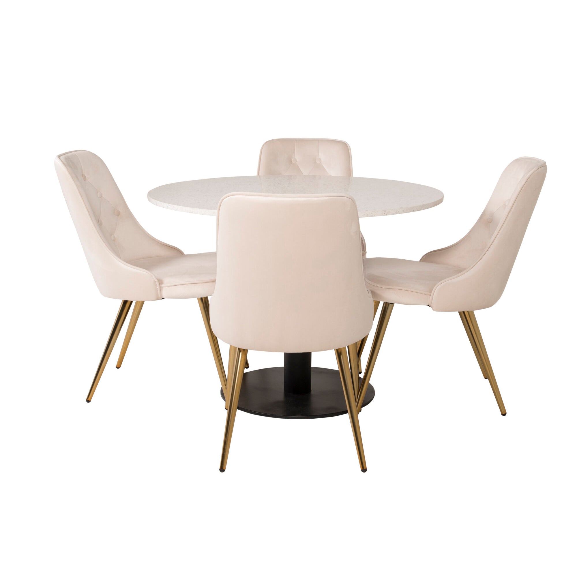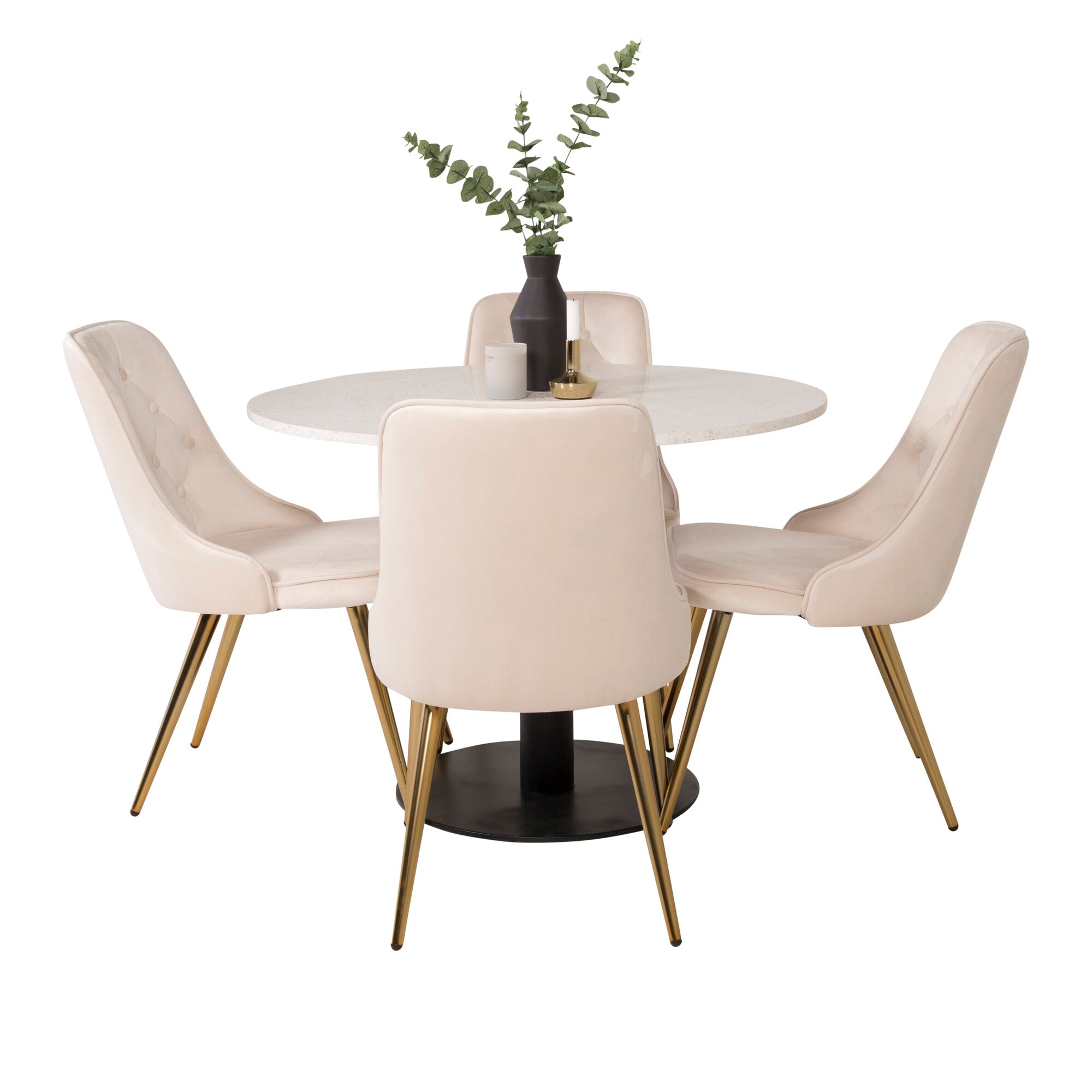 Jídelní stůl Razzia 106 cm -Bílá Terazzo / Černá - Velvet Deluxe Jídelní židle - Noha z kartáčované mosazi / Béžový Velvet 4