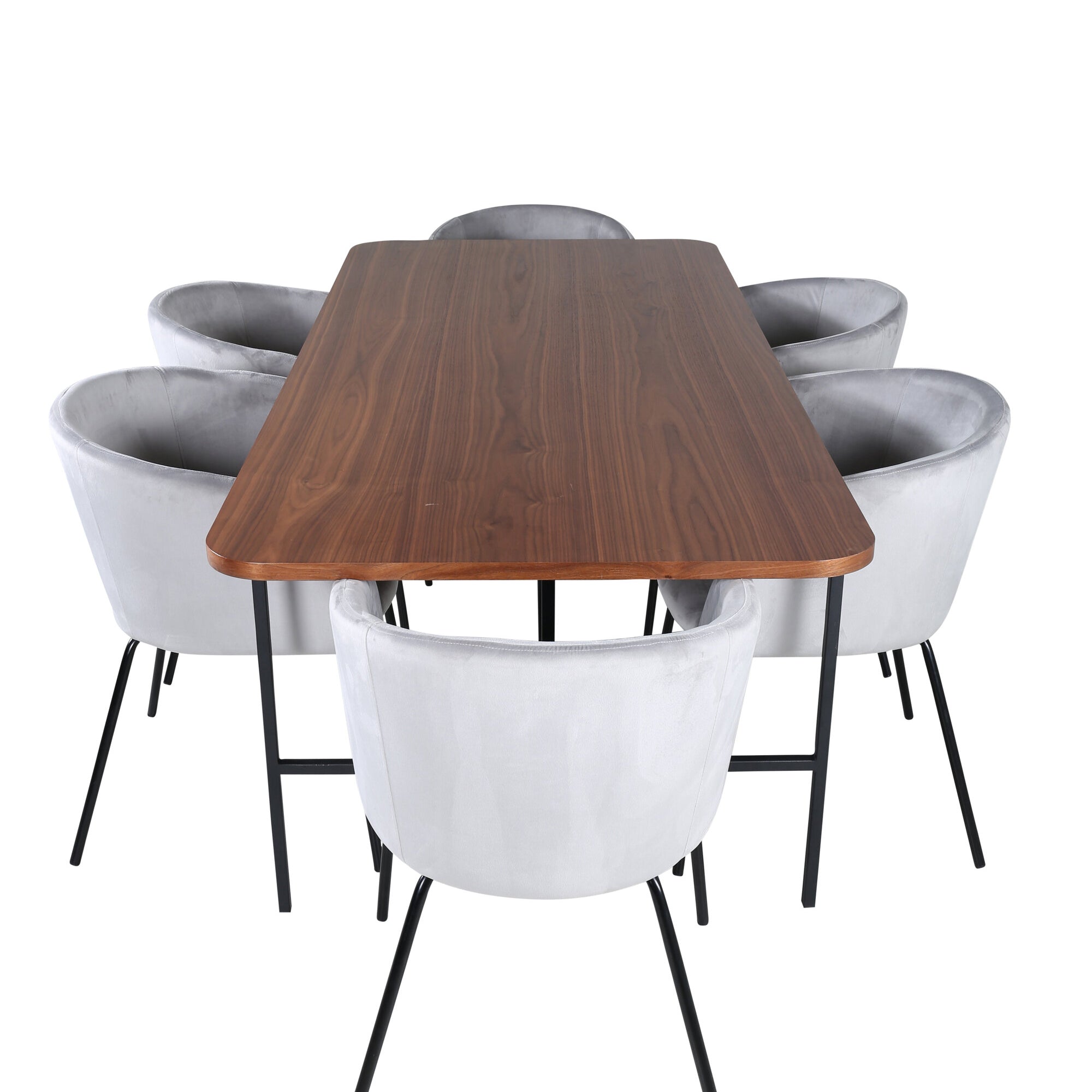Jídelní stůl Uno - černá / ořechová dýha + židle Berit - černá / světle šedá Velvet_6