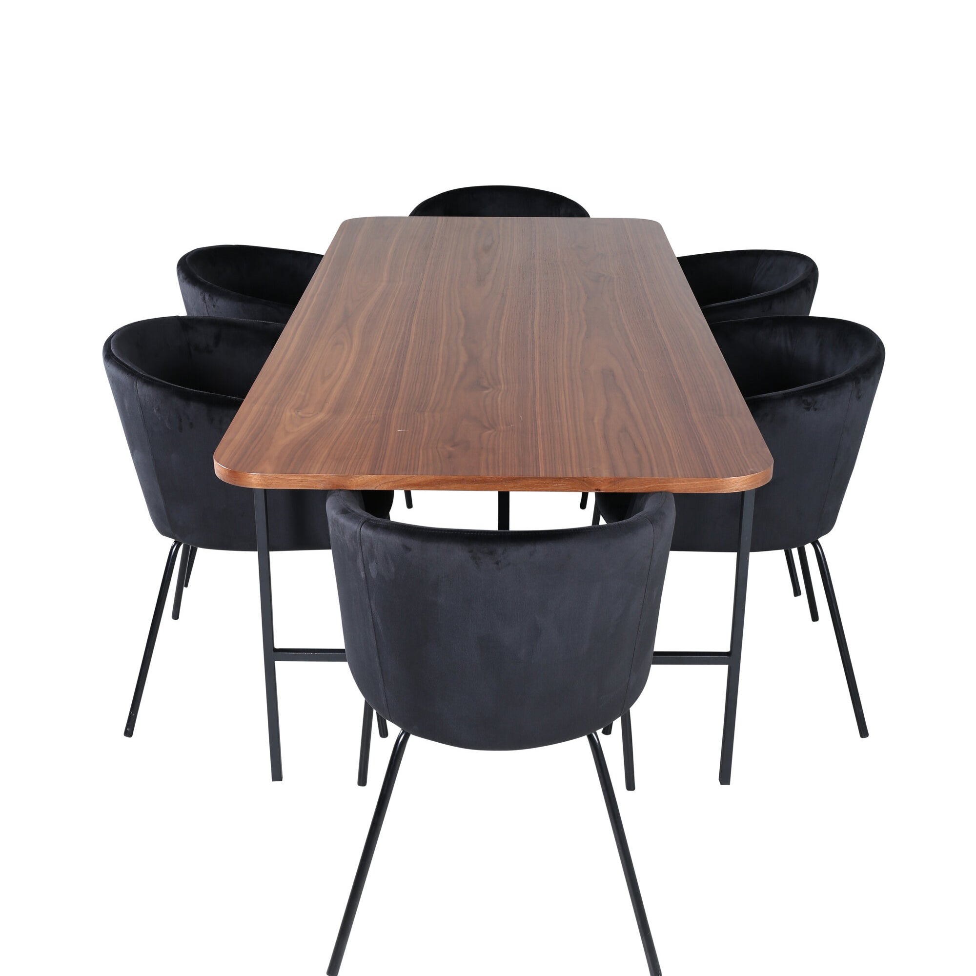 Jídelní stůl Uno - černá / ořechová dýha + židle Berit - černá / černý samet_6
