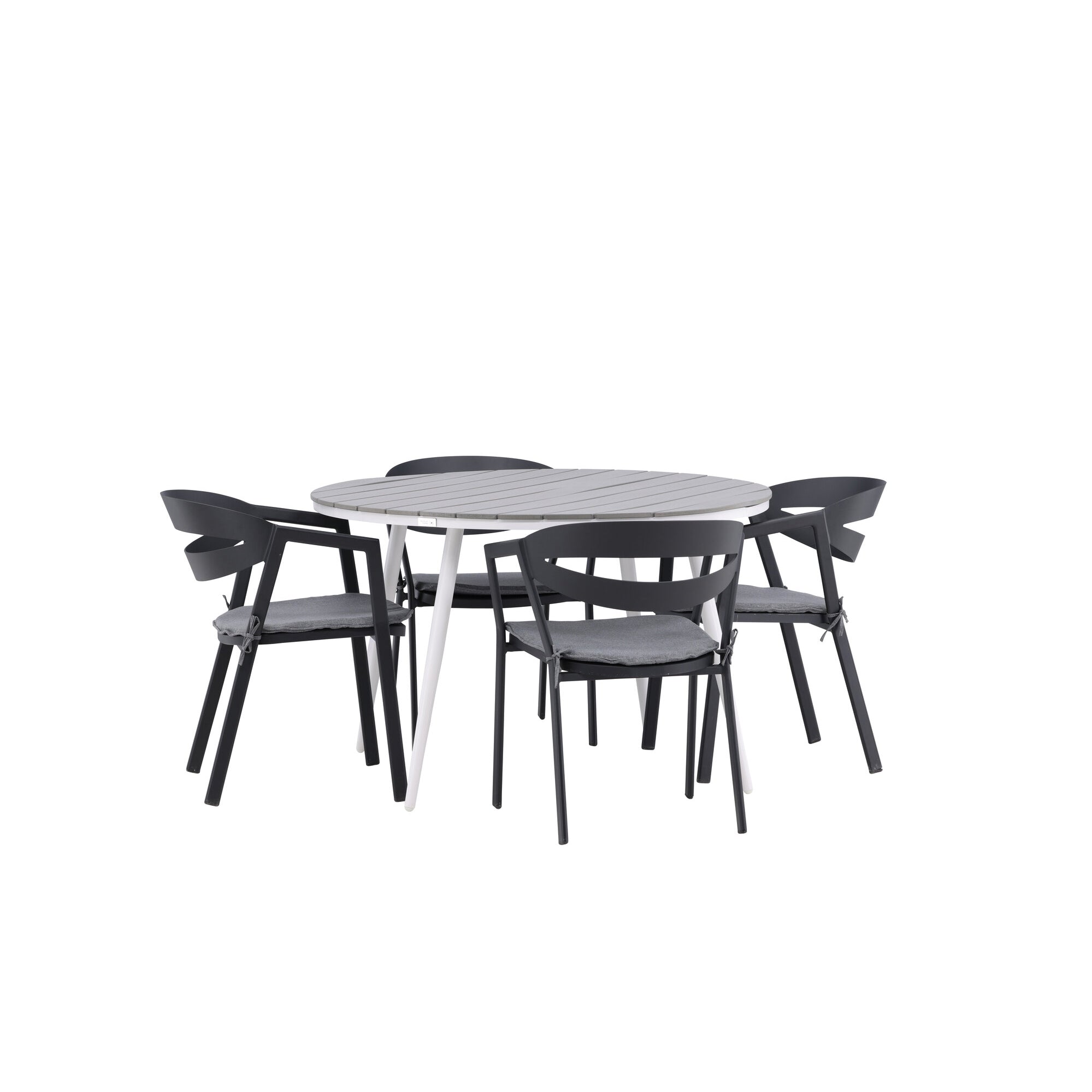 Break - Jídelní stůl kulatý - Bílá / Šedá - Alu / Aintwood - 120ø _1+ Štěrbina - Jídelní židle vč. Polštář - Černá / Šedá - Hliník - _4