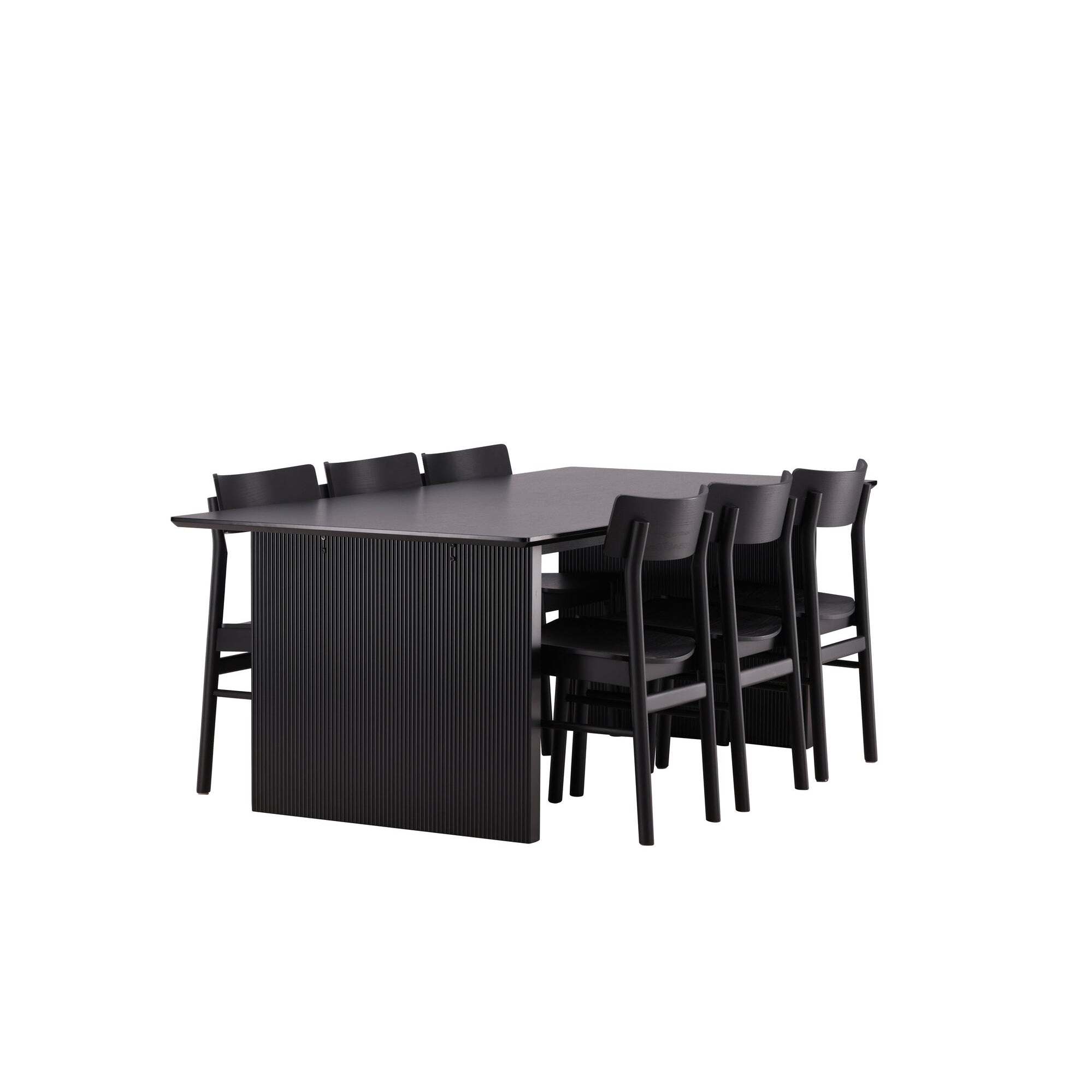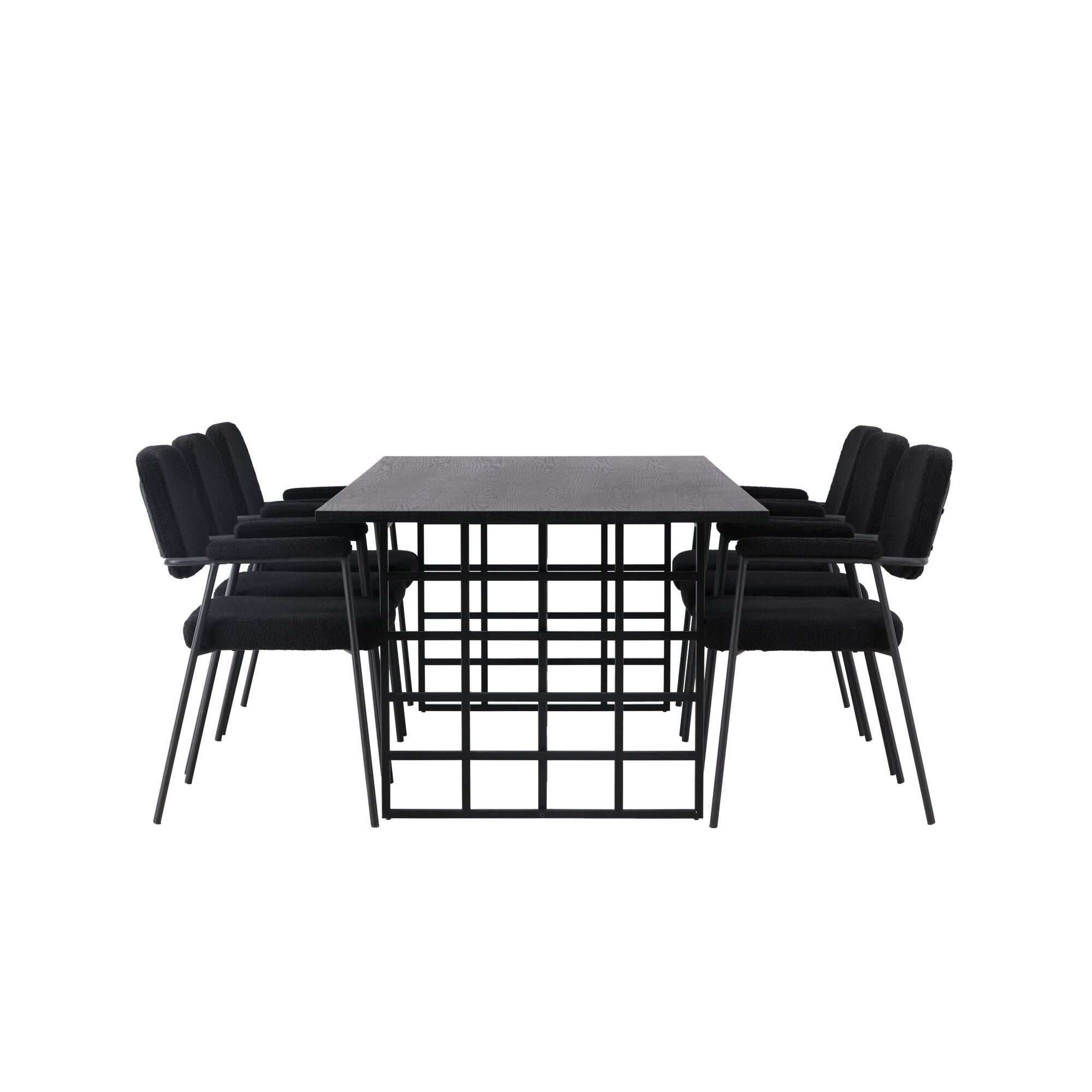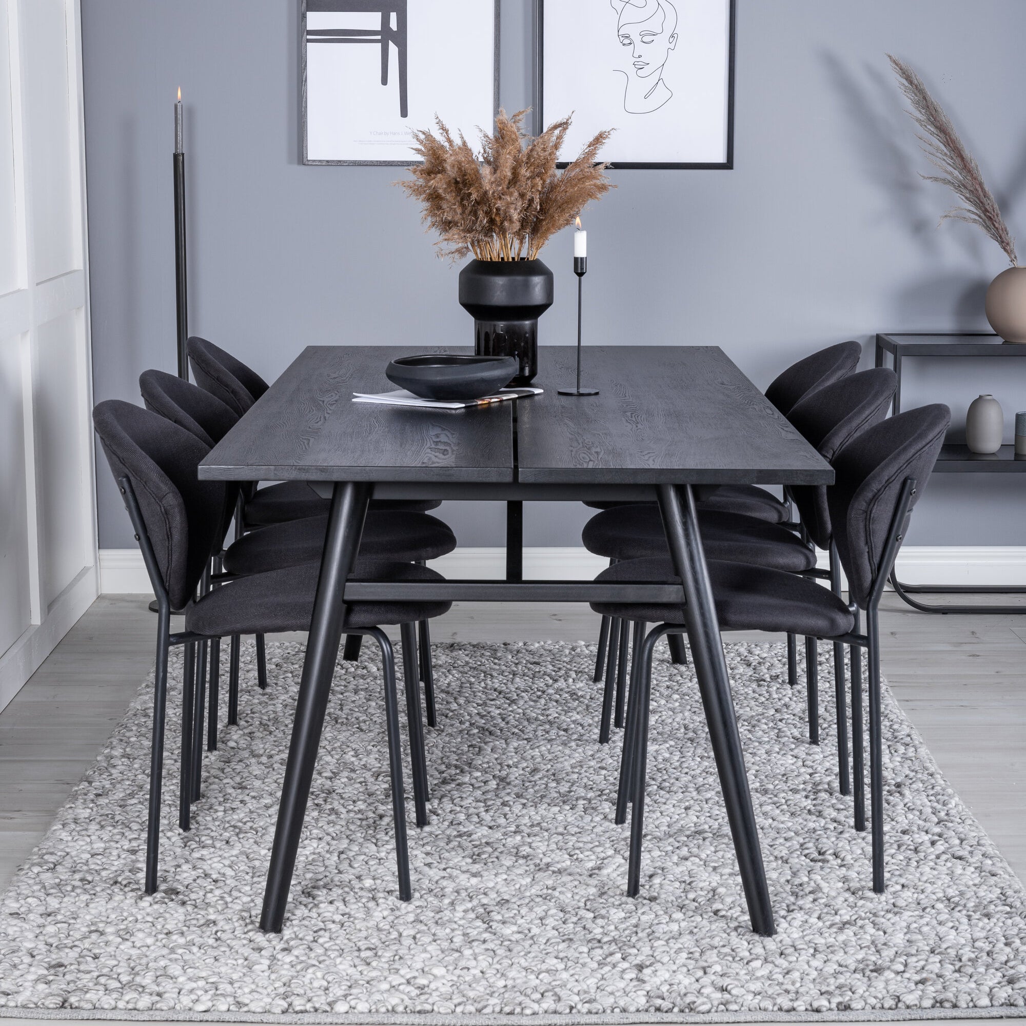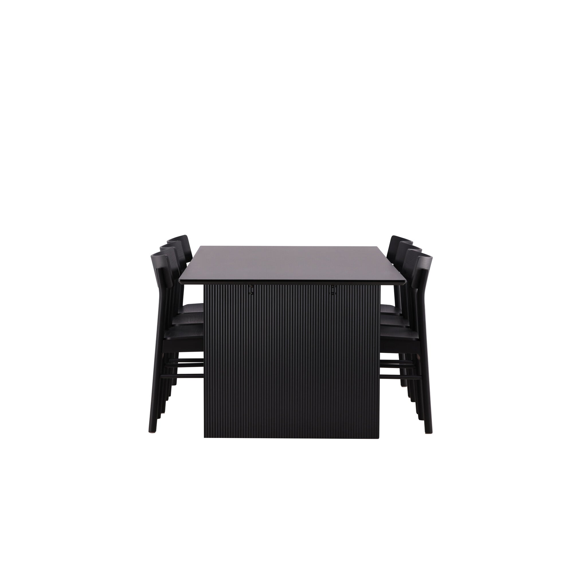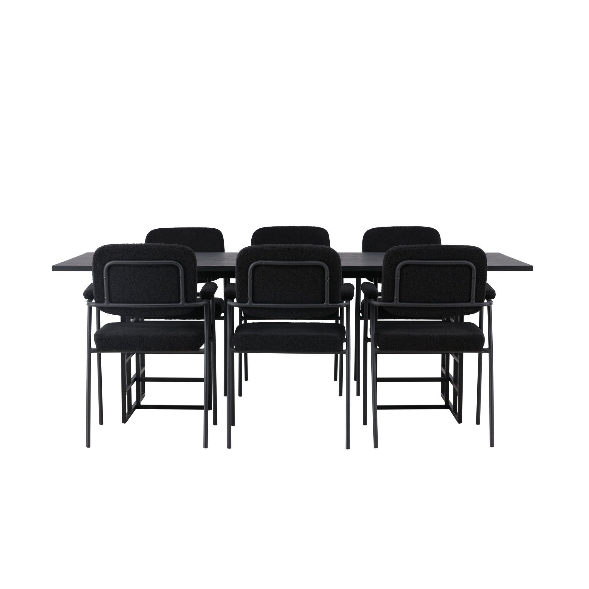 Ocelový jídelní stůl Holmbeck – černá / obdélníková 90*200*75 + hliníková jídelní židle Tablas – černá / _6