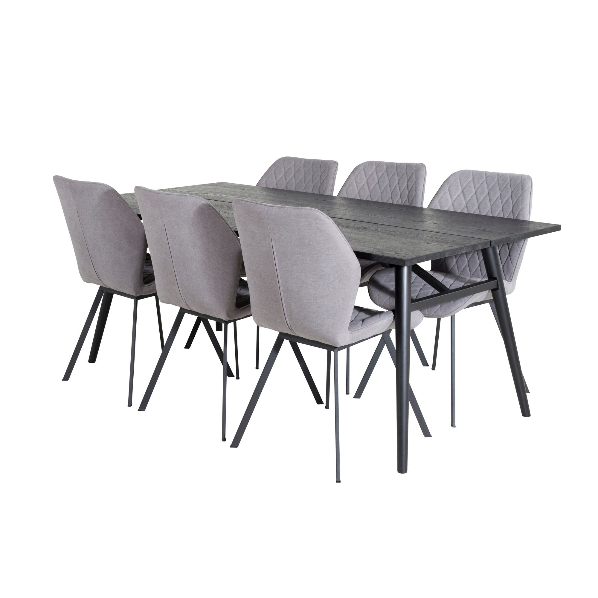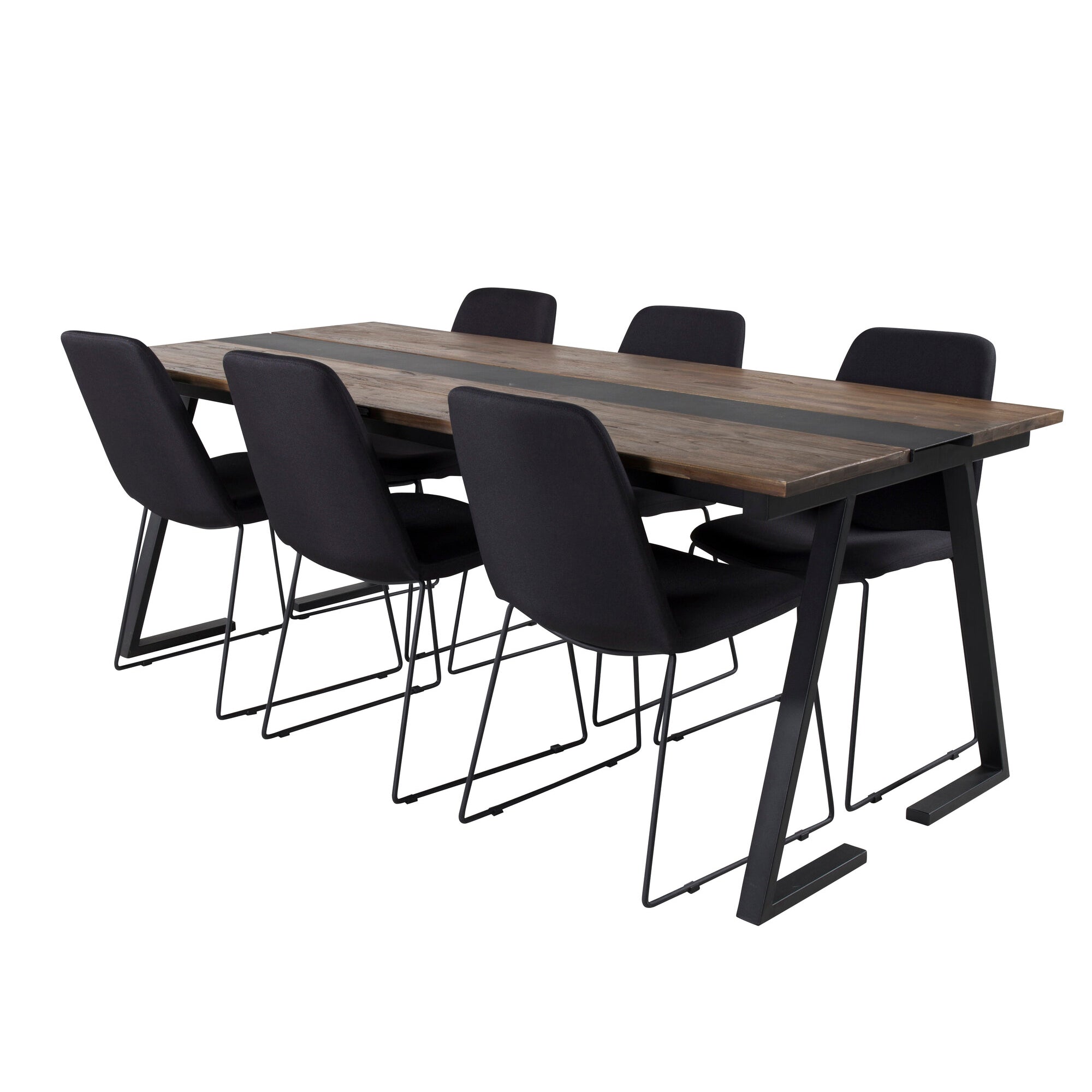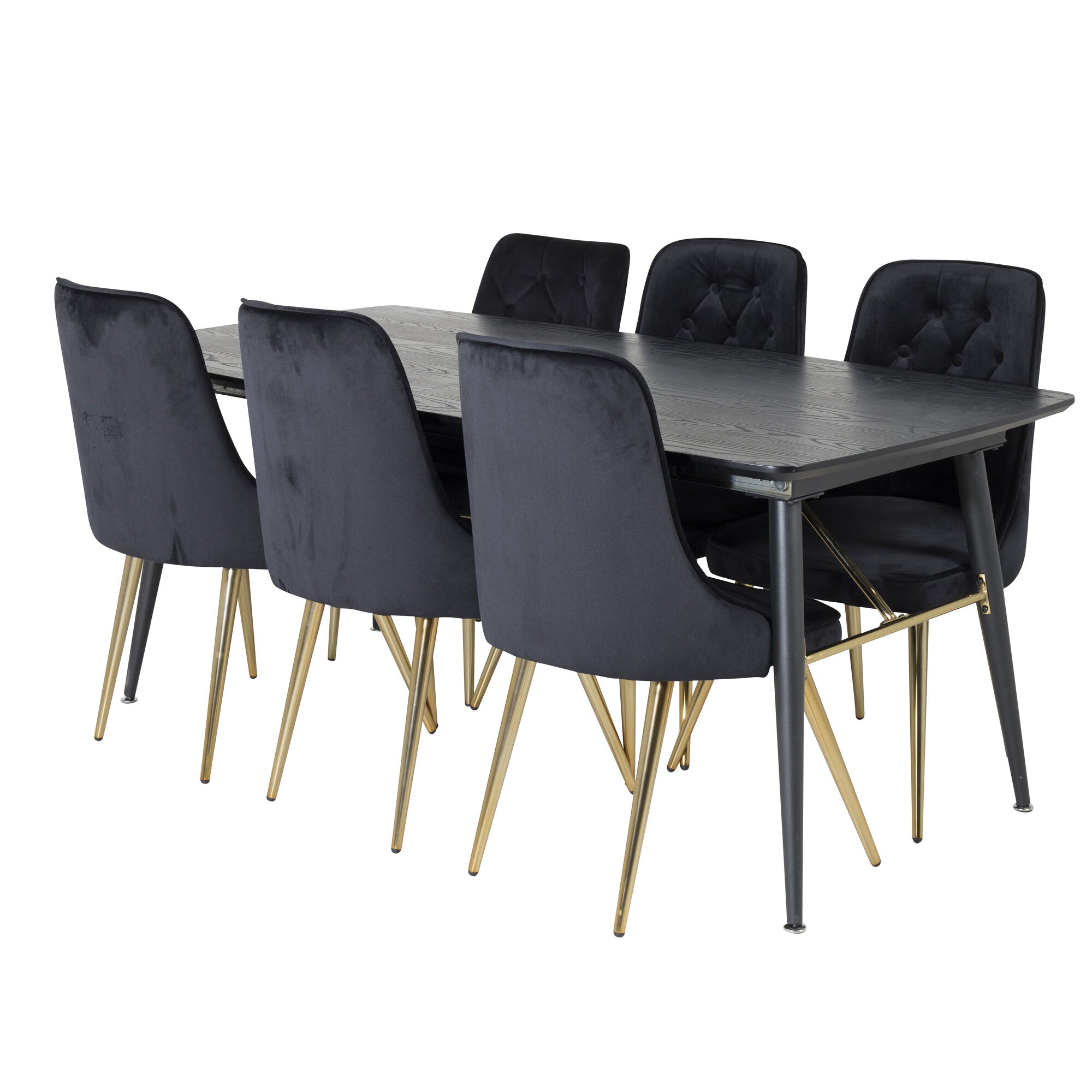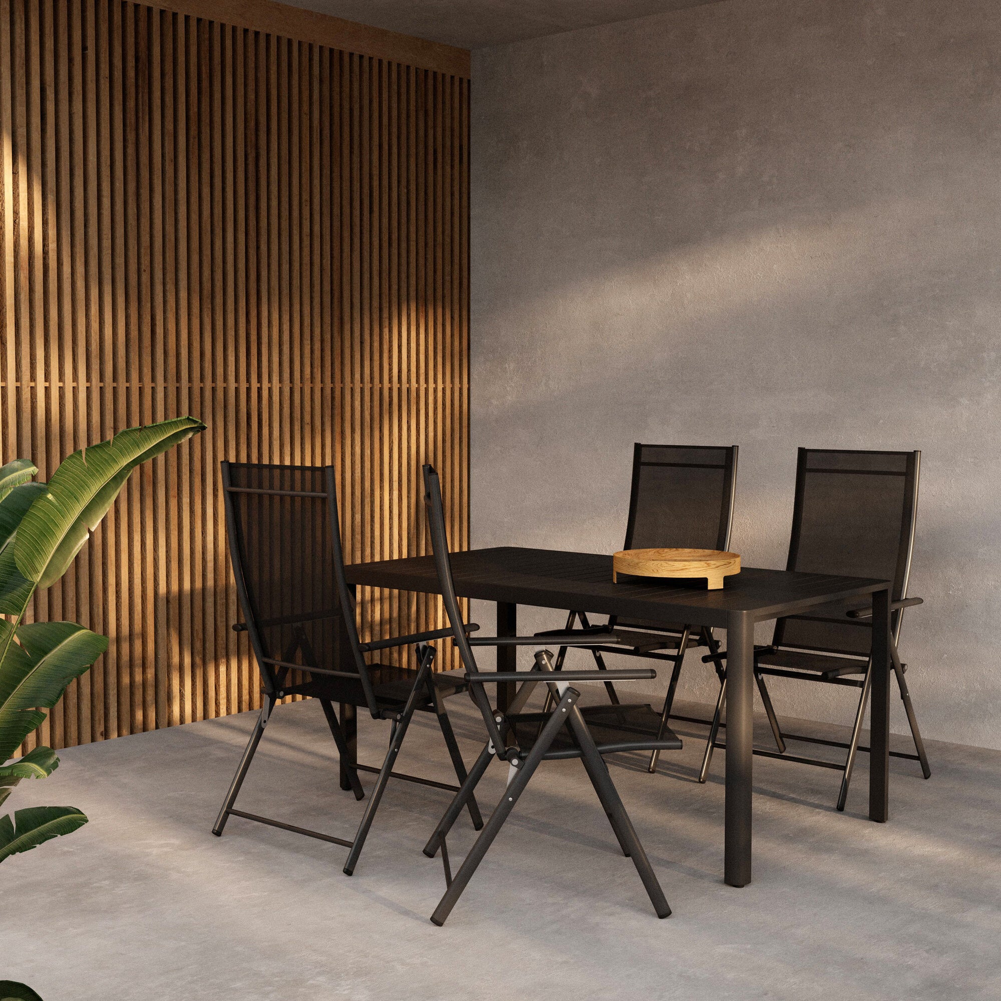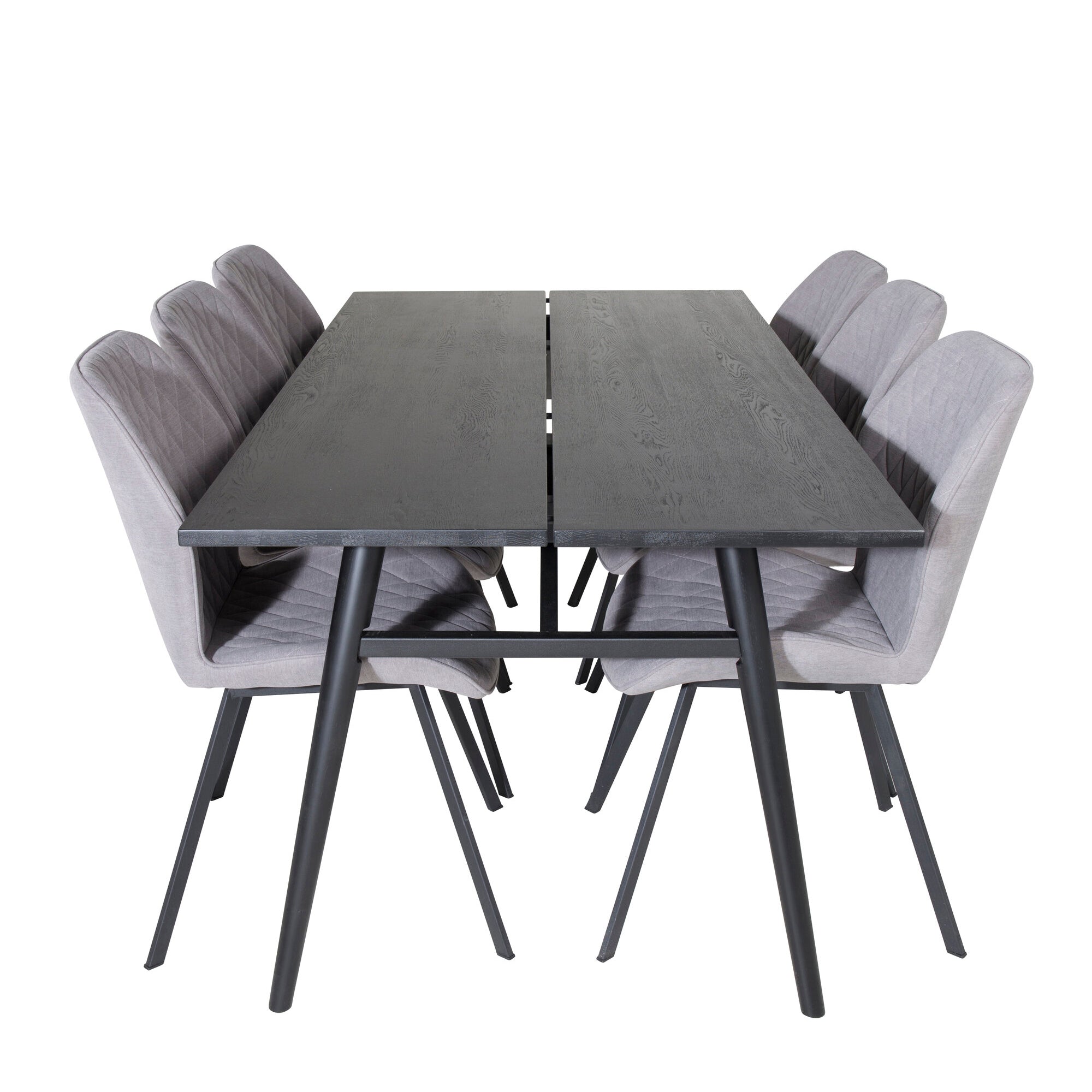 Ocelový jídelní stůl Holmbeck – černá / obdélníková 90*200*75 + hliníková jídelní židle Tablas – černá / _6