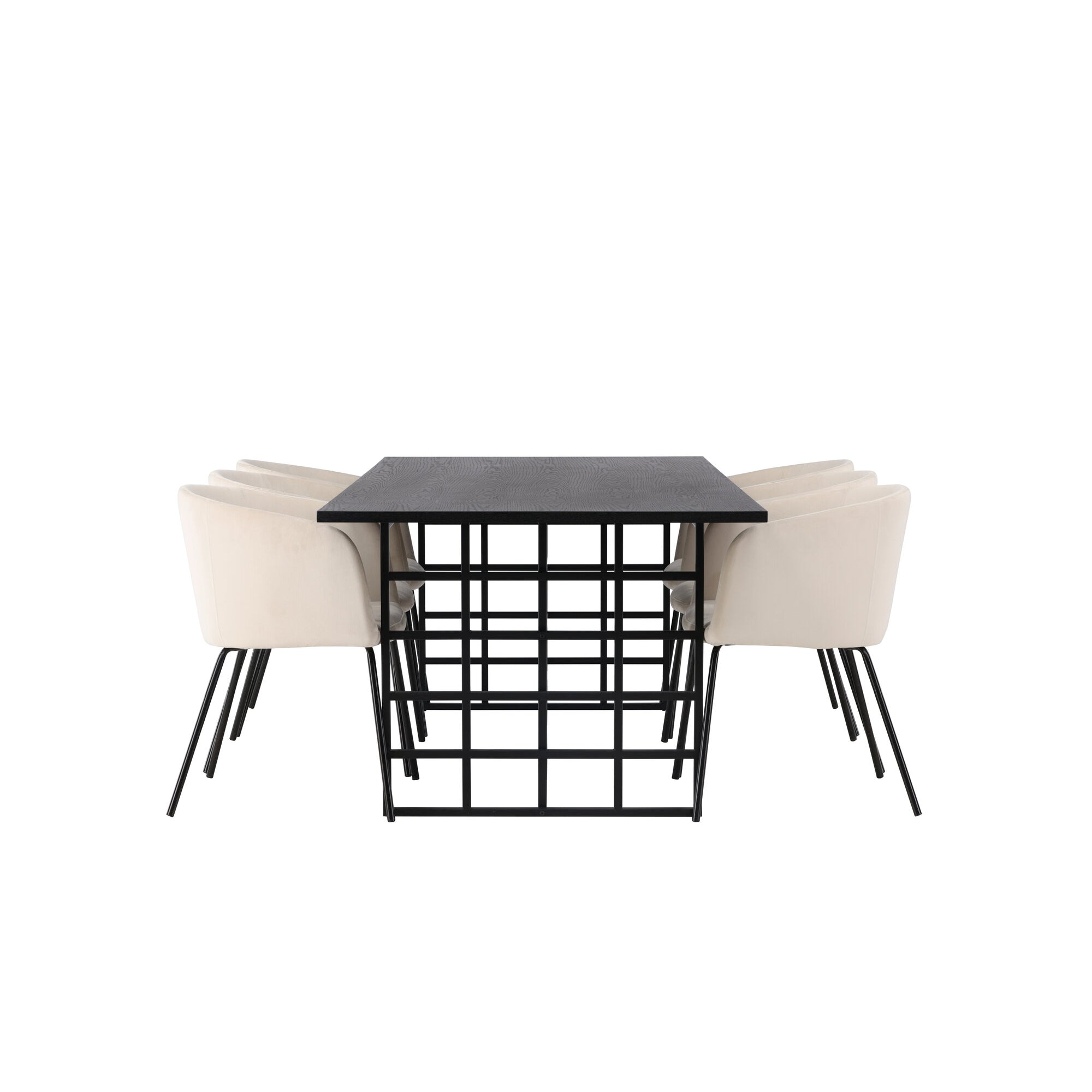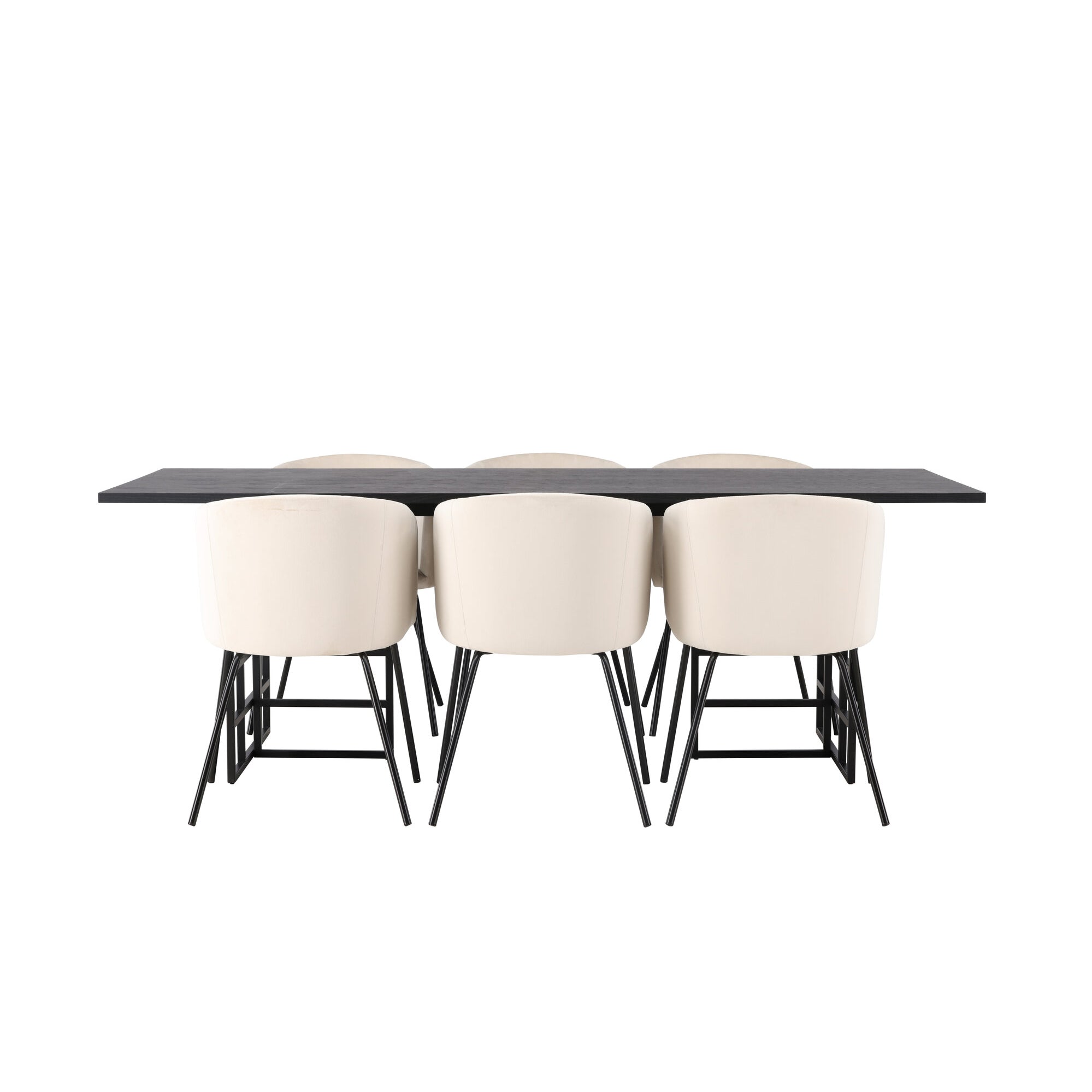 Jídelní stůl Ystad – černá/černá dubová dýha + židle Berit – černá/béžová sametová _6
