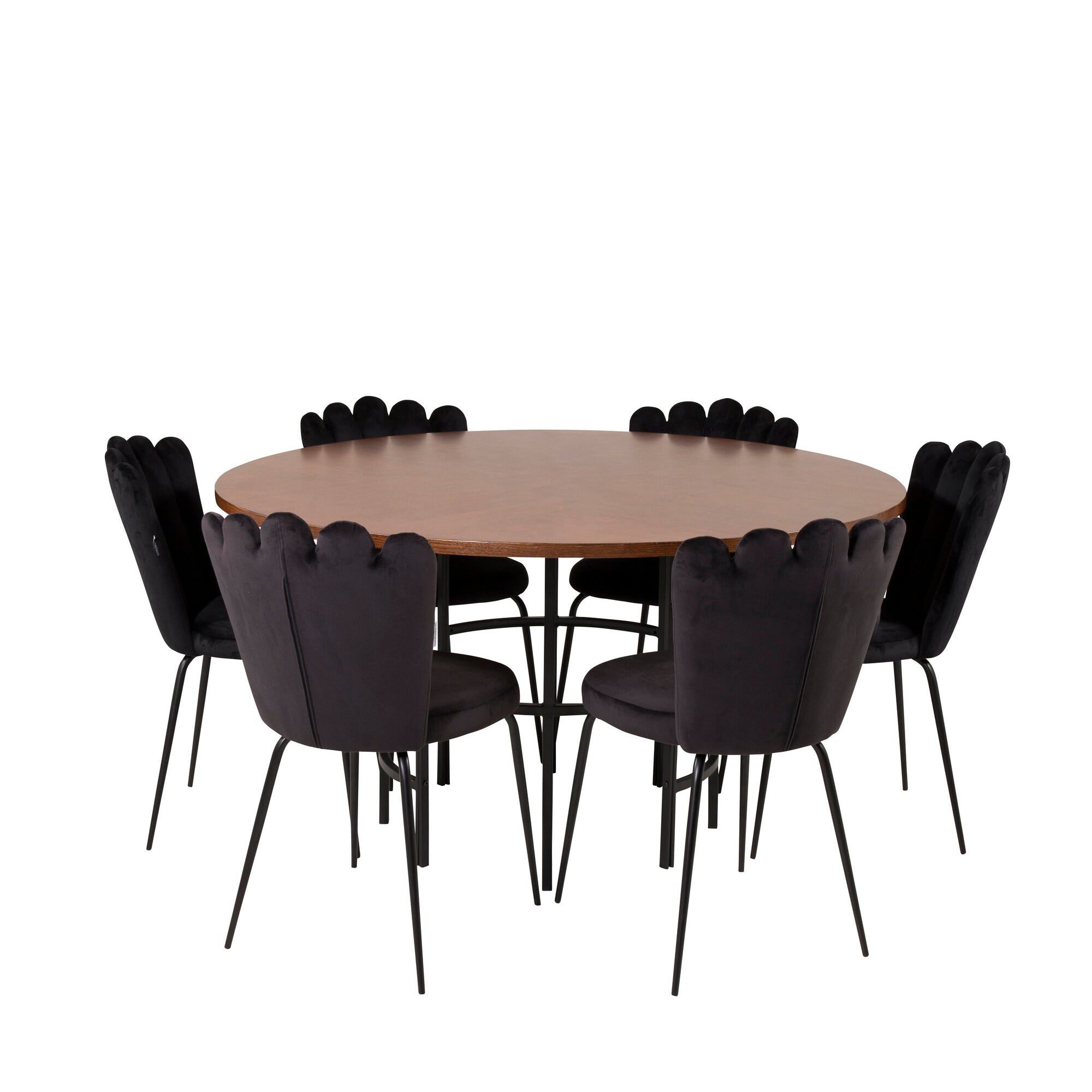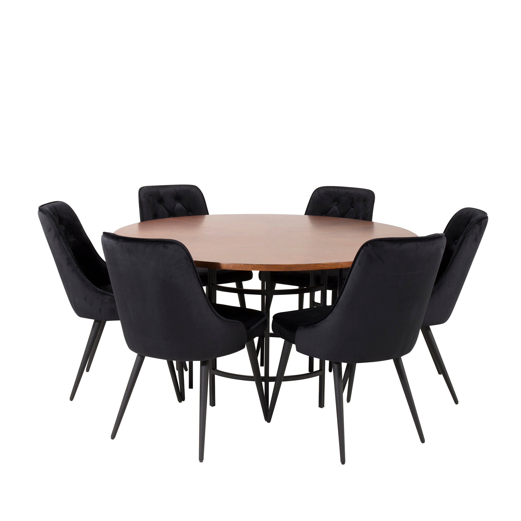 Copenhagen - Jídelní stůl kulatý - Hnědá / Černá+Velvet Deluxe Jídelní židle - Černé nohy / Black velvet_6