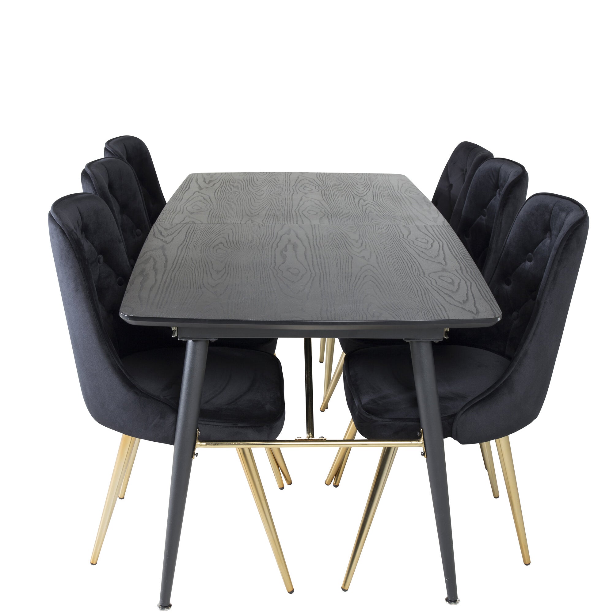 Zlatý rozkládací stůl - 180/220*85*H76 Černá dýha - Černé nohy - Mosazné detaily+Velvet Deluxe Jídelní židle - Černá / Brass_6