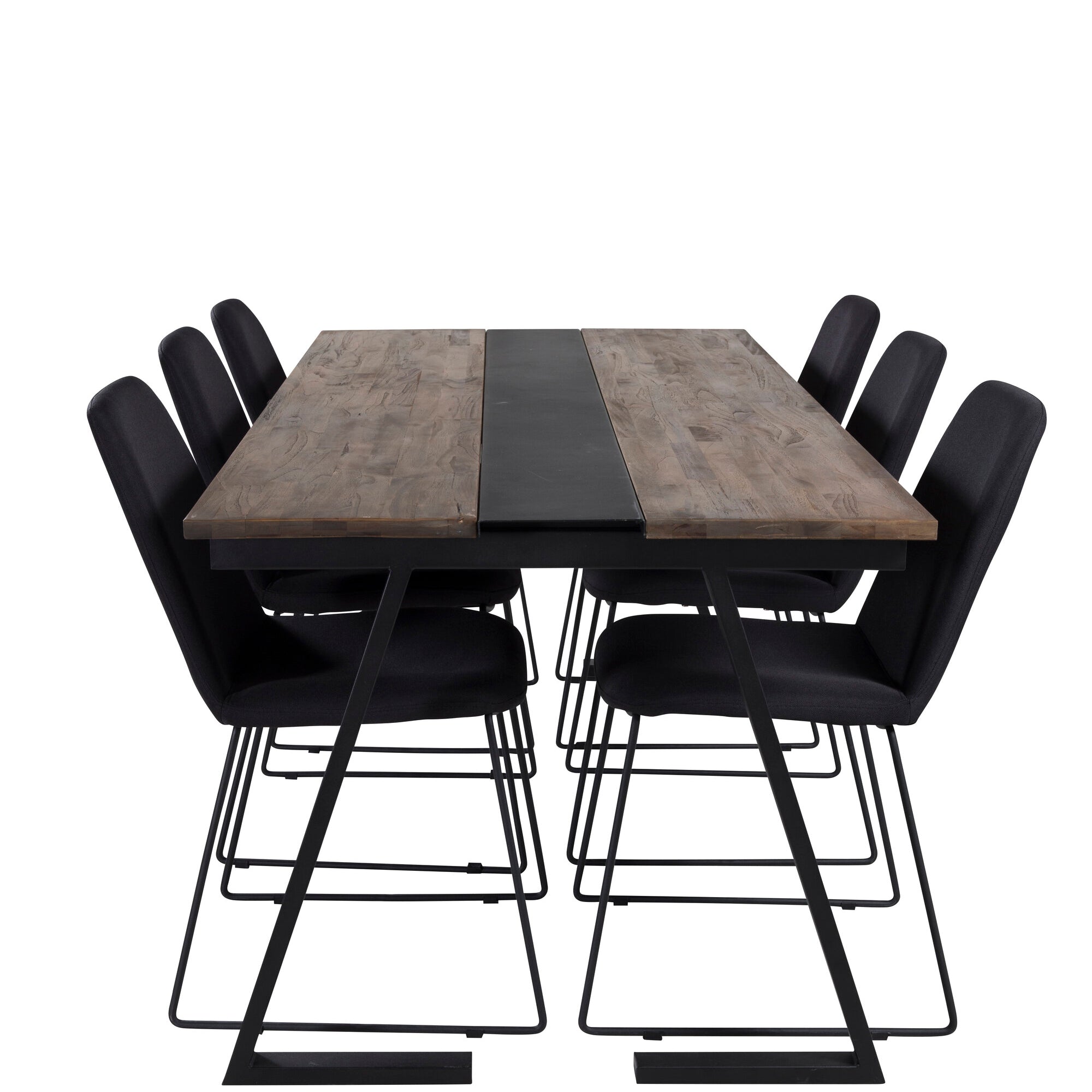 Jídelní stůl v Jakartě. 200*90*H75 - Tmavý teak / Černá + Muce jídelní židle - Blac