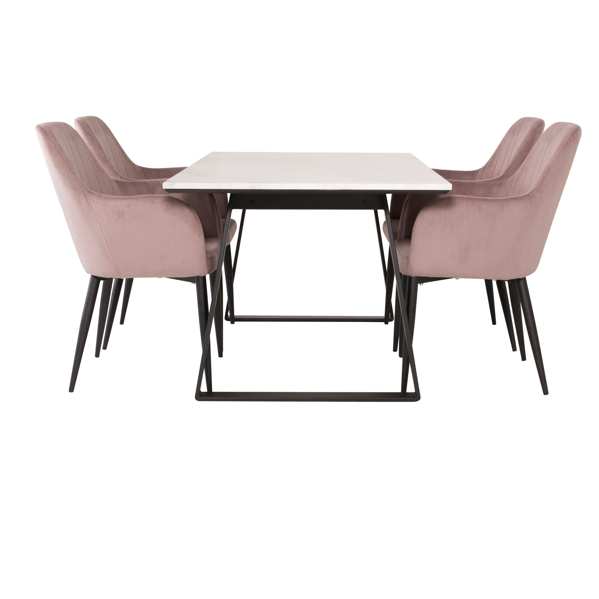Estelle Jídelní stůl 140*90 – Bílý mramor / Černé nohy + Komfortní jídelní židle 2-balení – Černé nohy / Dusty Pink Manšestr _4