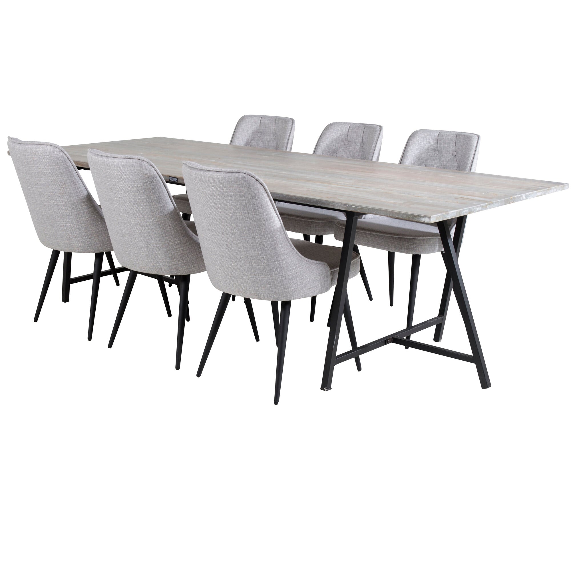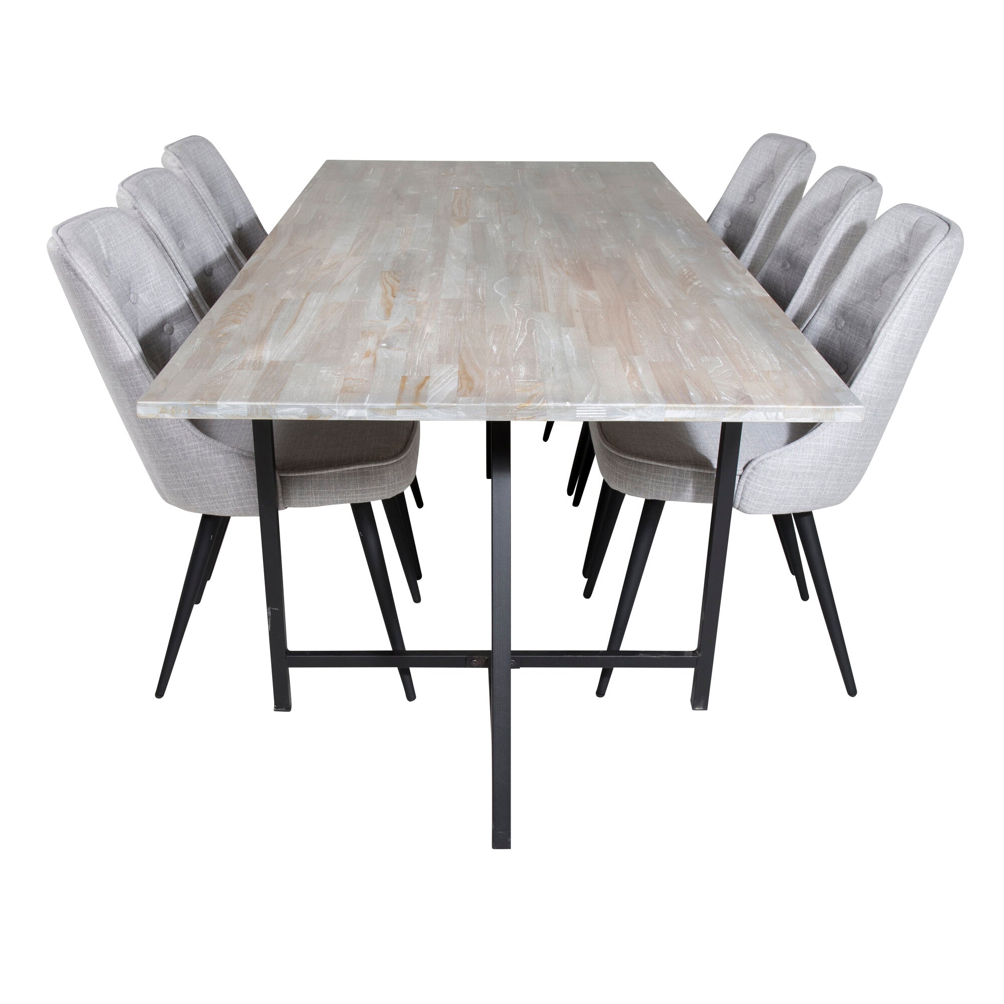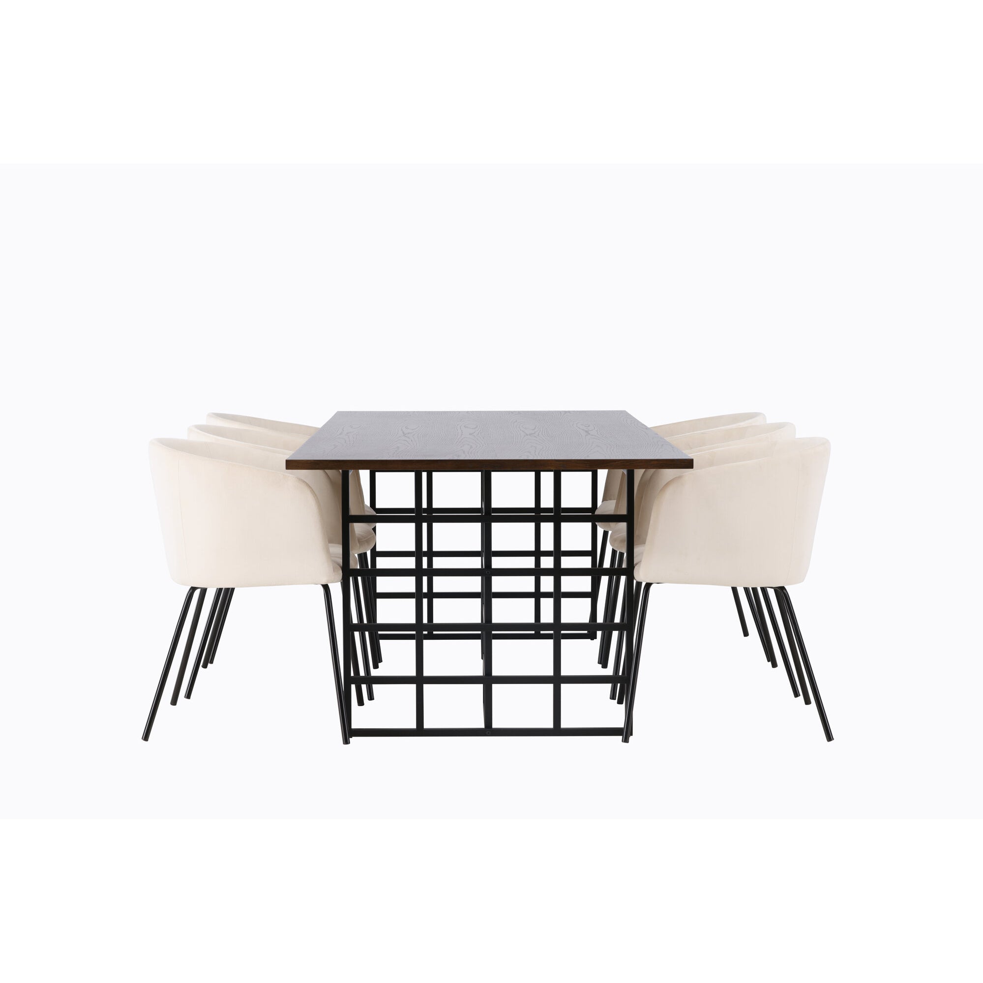 Lina Jídelní stůl - Béžová - 200*90 +Lindos Jídelní židle Hliník - Černá / _6