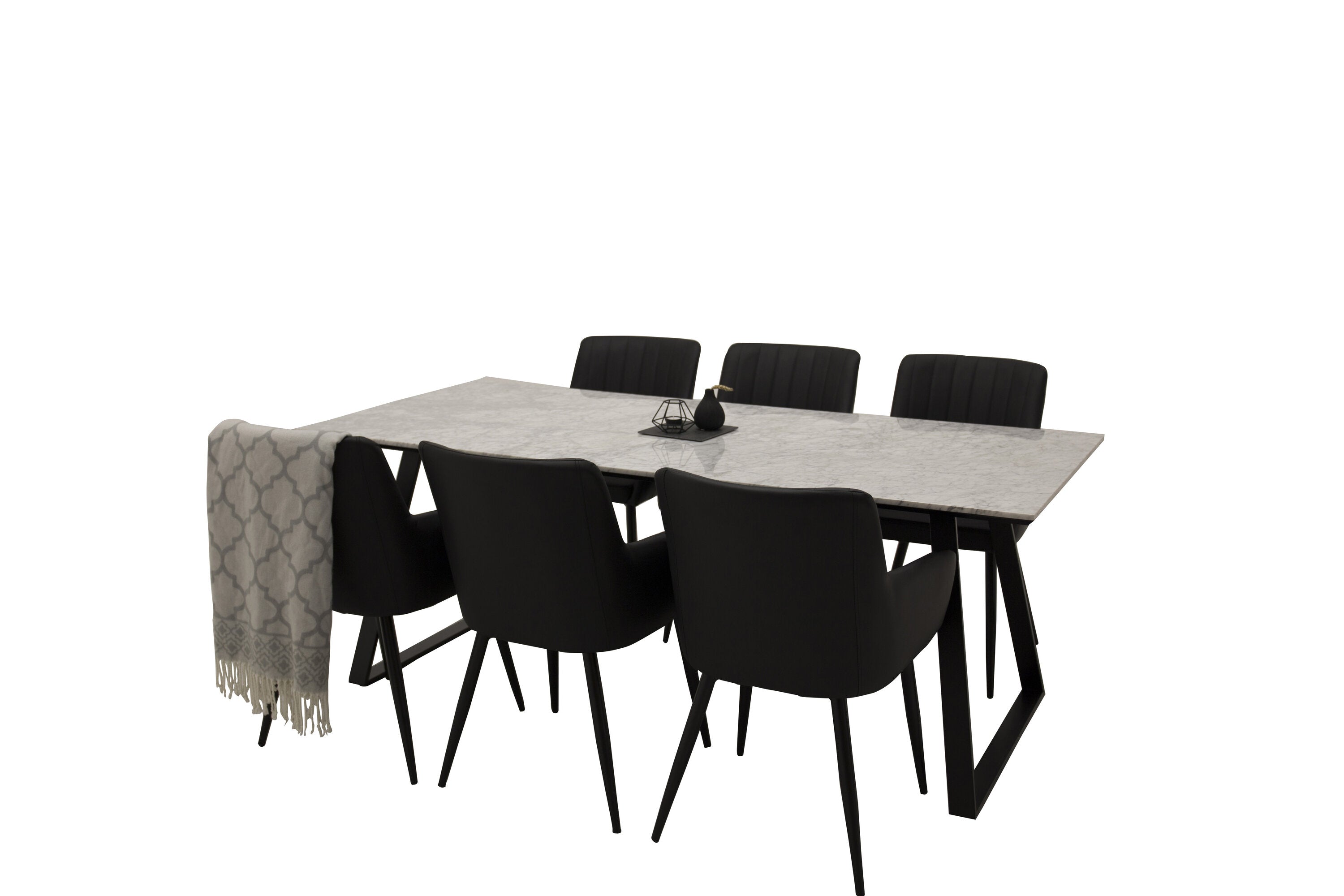 Estelle Jídelní stůl Stůl 200*90 Bílý Mramor / Černé nohy +Comfort - Jídelní židle 2-balení - černá/Černá _6