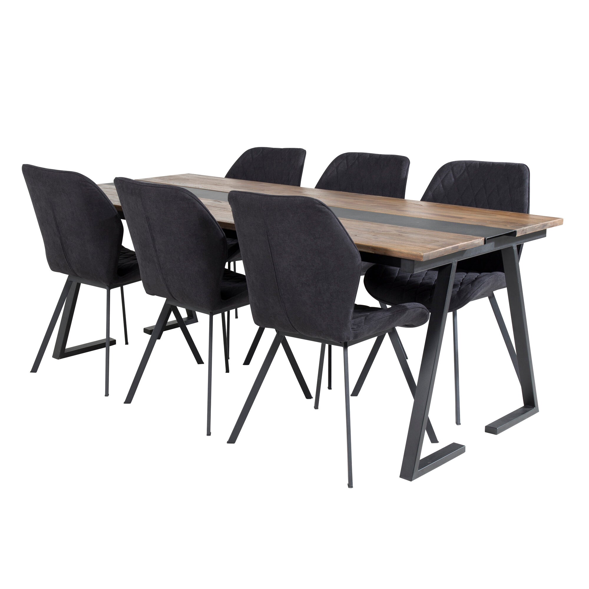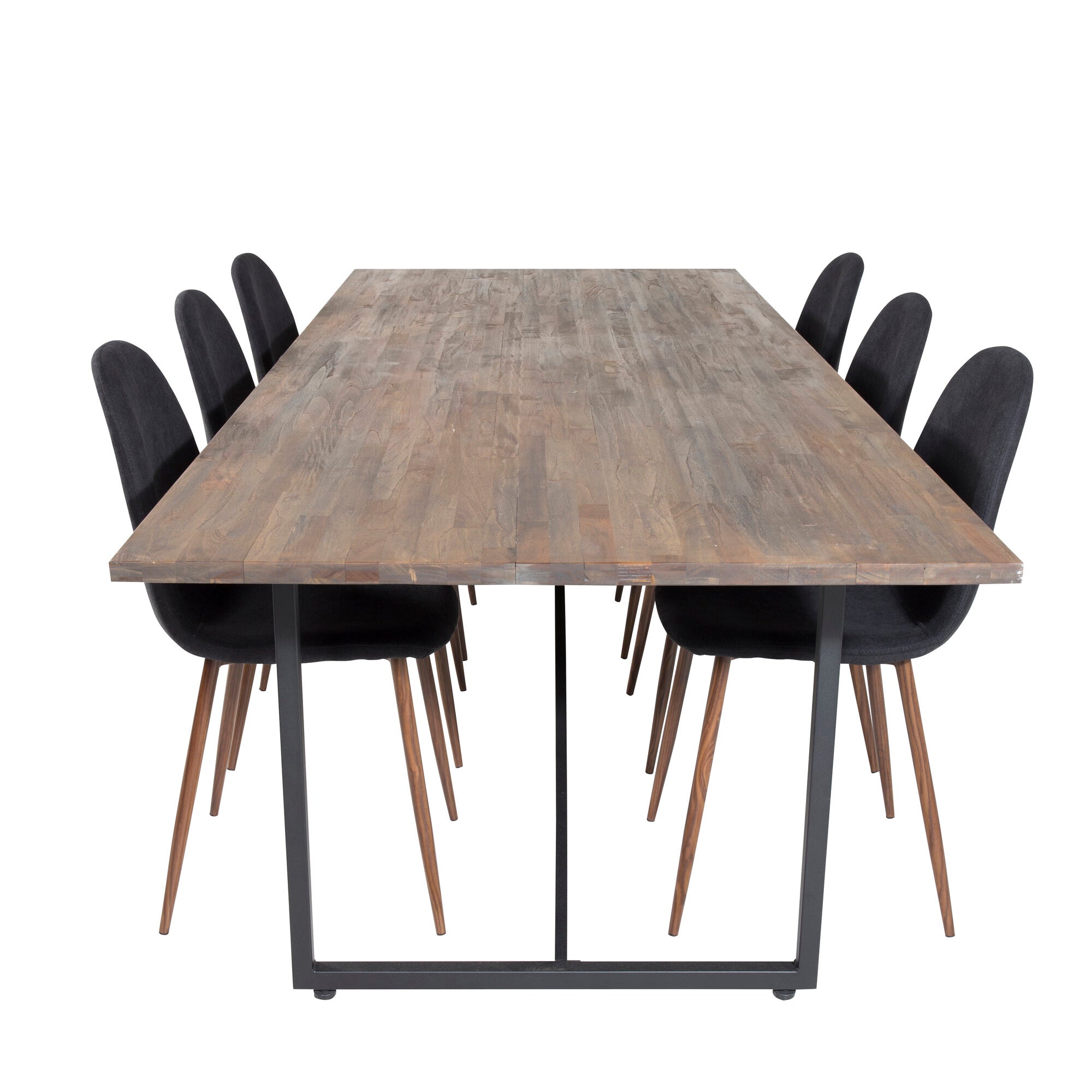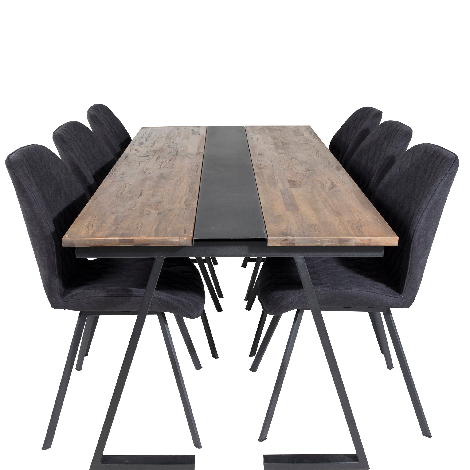 Jídelní stůl Padang - 250*100*H76 - Tmavý teak / Černá+Polar Diamond Jídelní židle - Černé nohy - Šedá Velvet_6