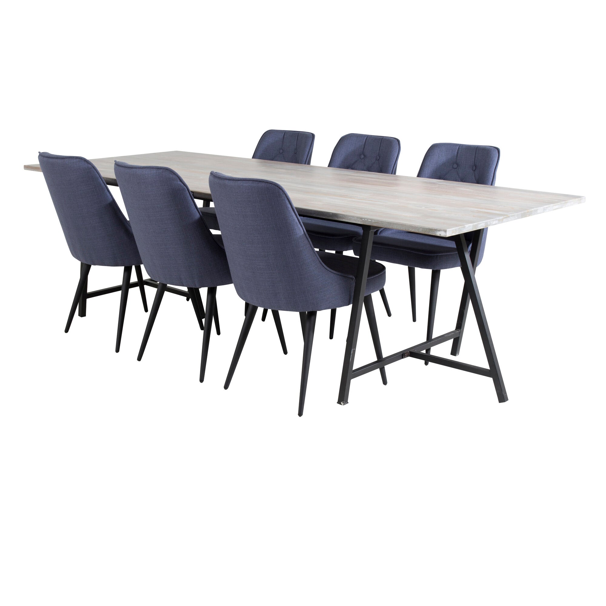 Jídelní stůl Padang - 250*100*H76 - Tmavý týk / Černá + Muce Jídelní židle - Černé nohy - Modrá Velvet_6