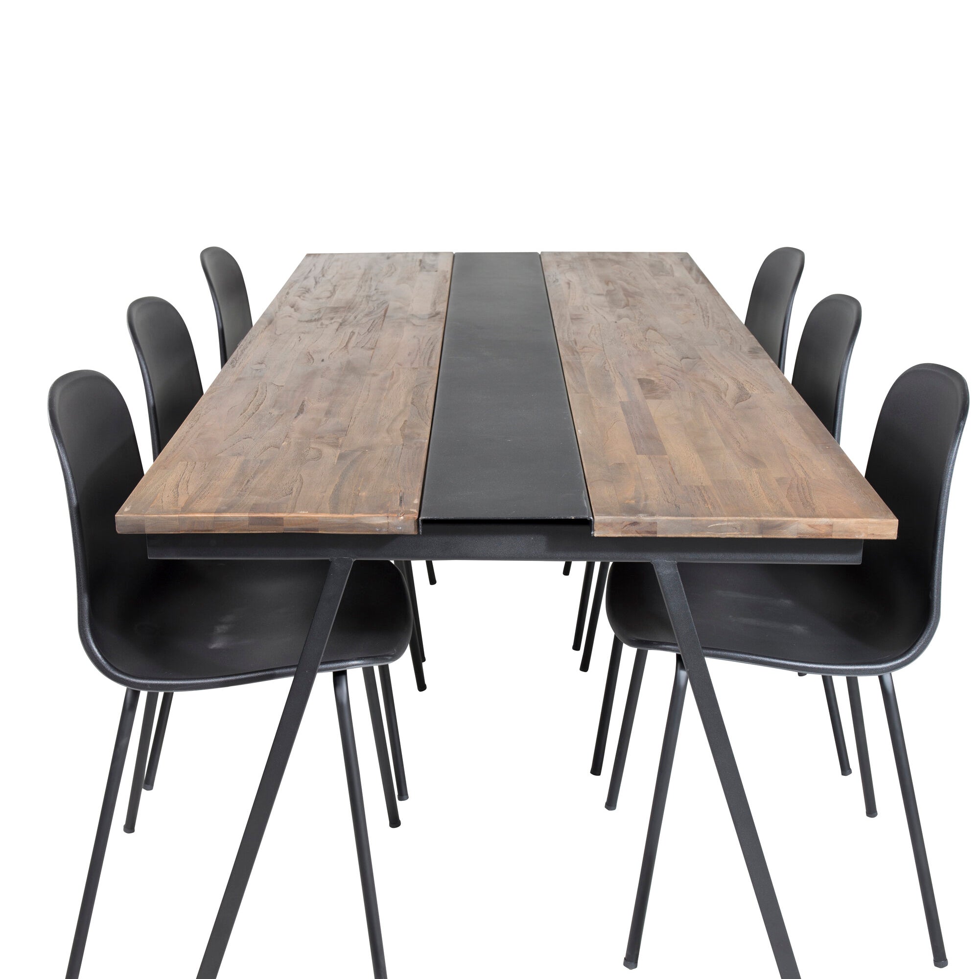 Jídelní stůl v Jakartě. 200*90*H75 - Tmavý teak / Černá + arktická jídelní židle - Černé nohy - Černý plast_6