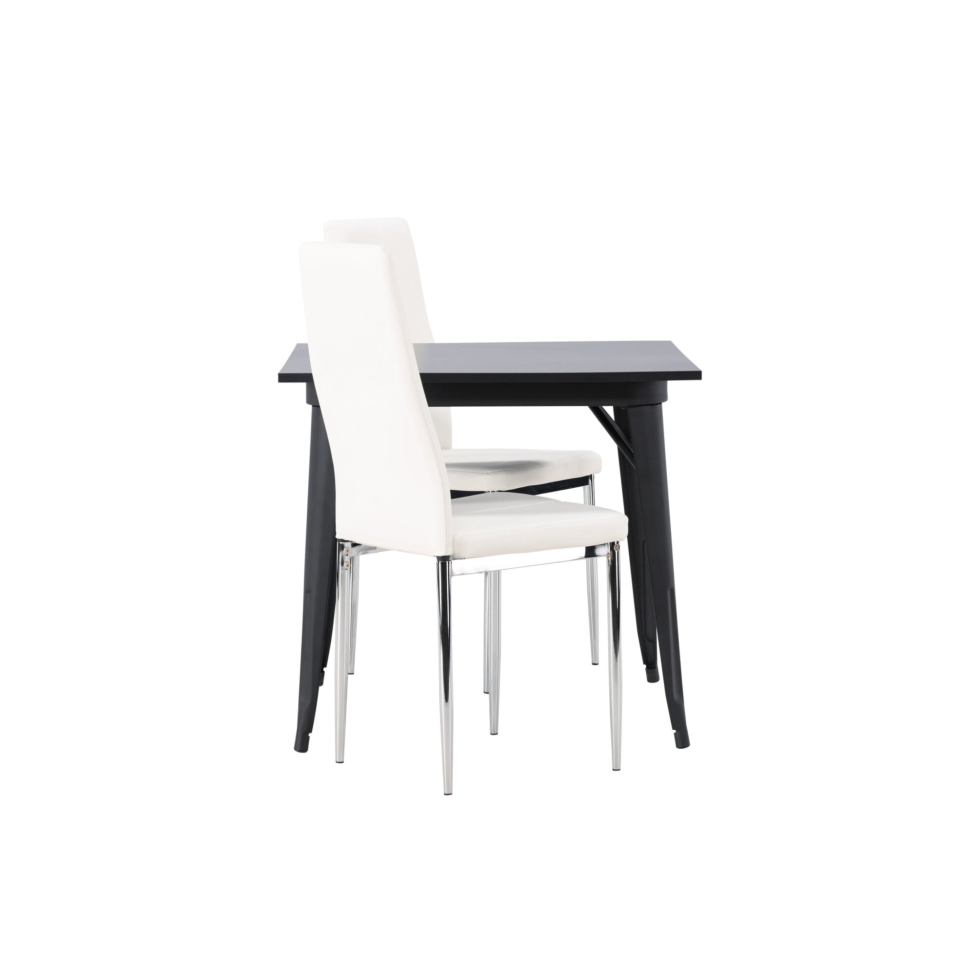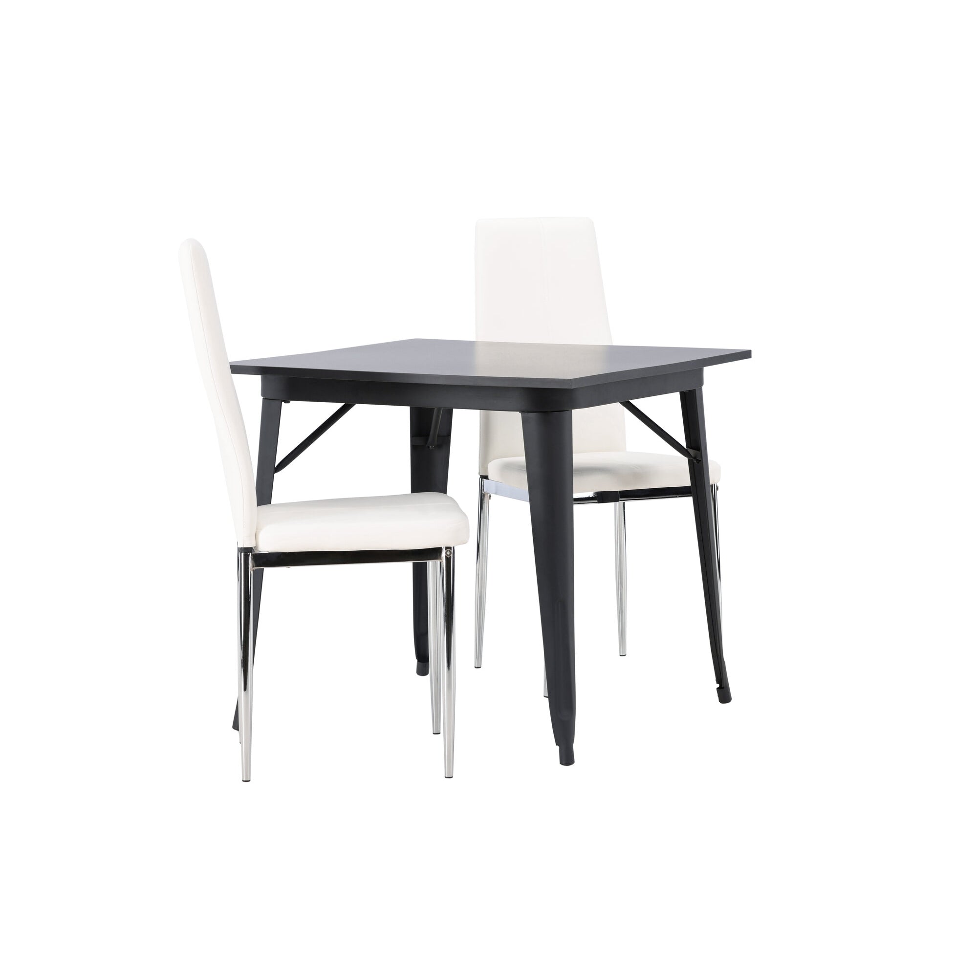 Jídelní stůl Tempe - černá / černá MDF + jídelní židle Pastill - stříbrná / bílá PU _2