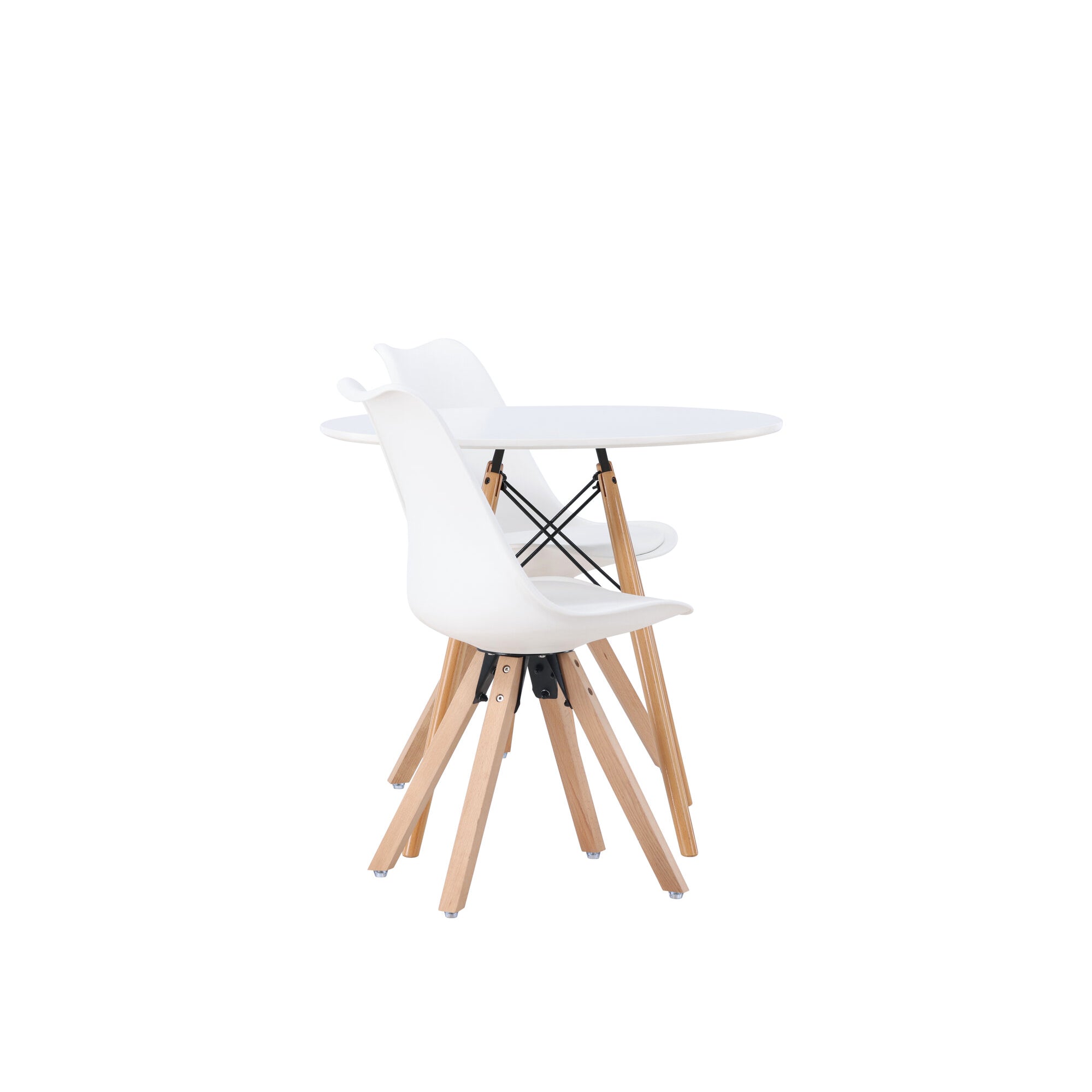 Danburi Jídelní stůl - Woodlook / Woodlook MDF +Edvin Jídelní židle - Nature / PET (polštář bílý) PET povrch, sedák s běžnou houbou _2