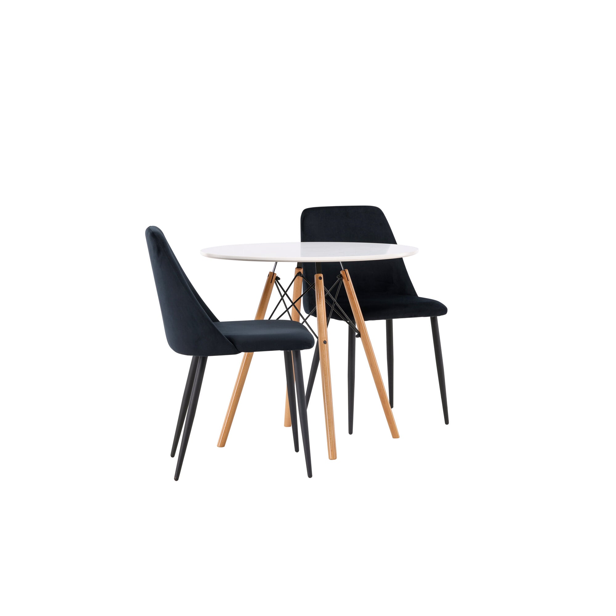Jídelní stůl Hamden - Bílá MDF + Jídelní židle Zeno - Přírodní vzhled dřeva / Černá PP _2