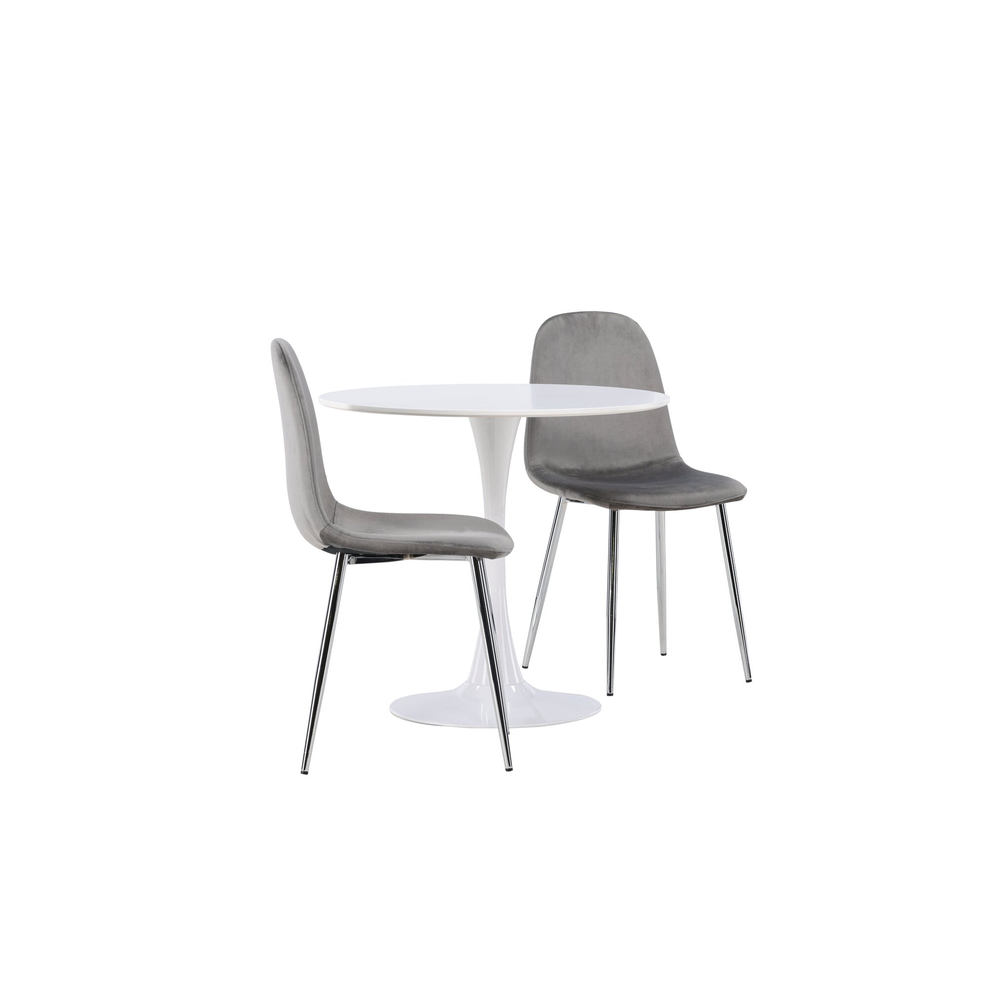 Jídelní stůl Hamden - Bílá MDF +Eva Jídelní židle - Světle šedá / Světle šedá Velvet _2
