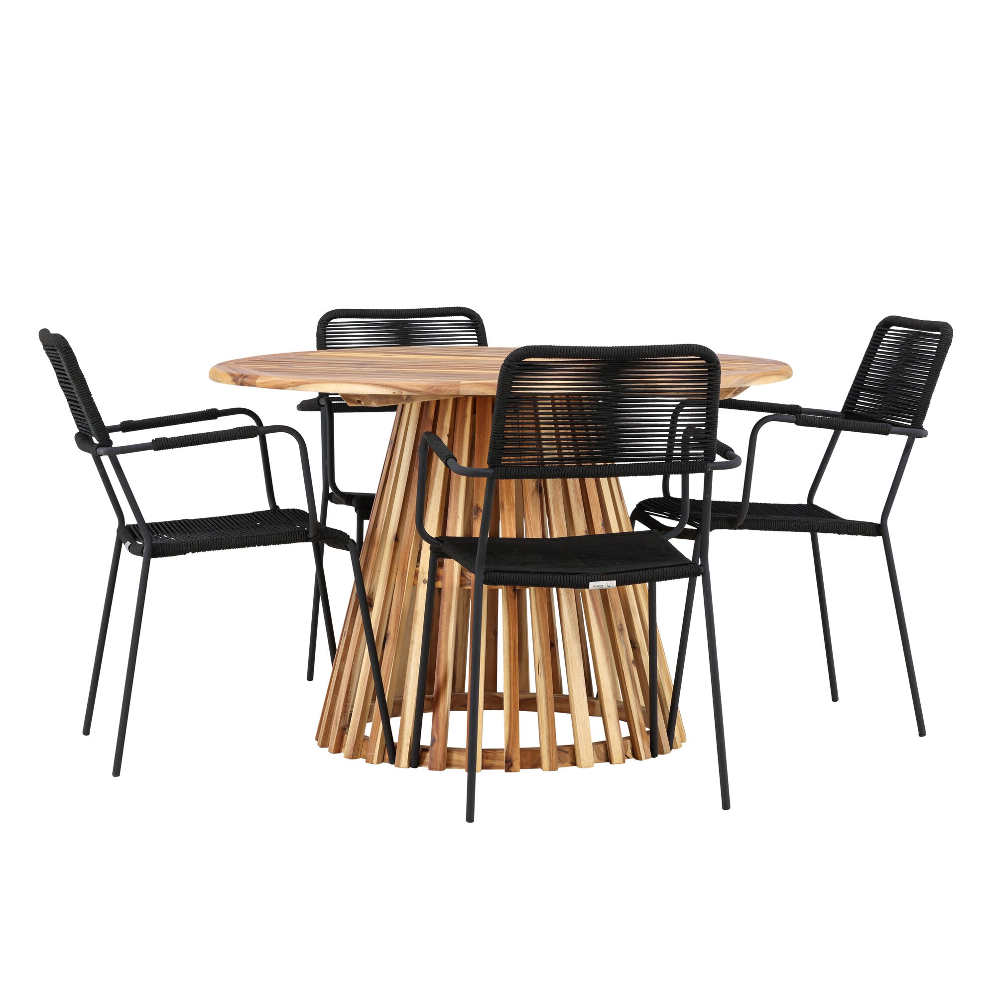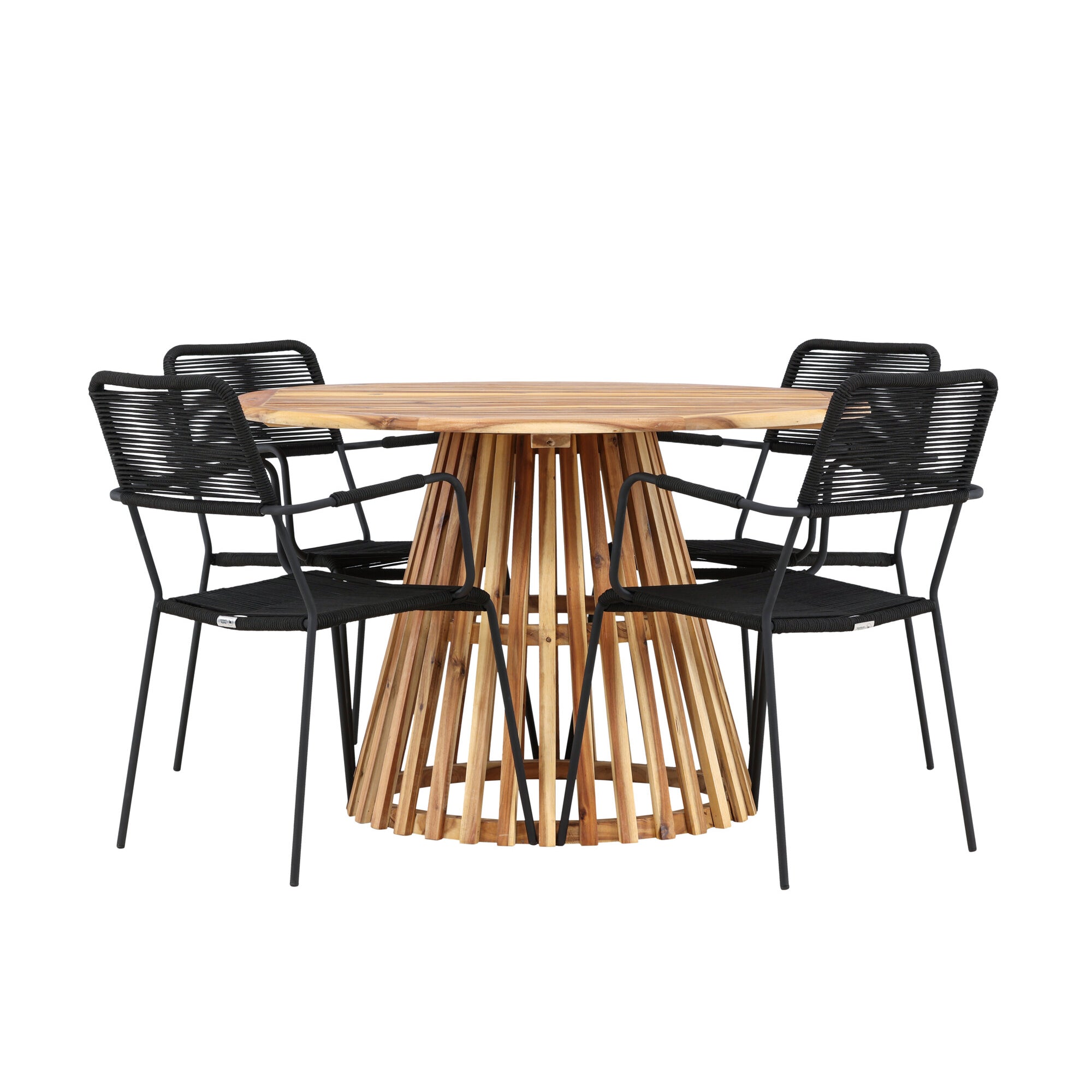 Lumpur Jídelní stůl Acacia - Teaklook / Kulatý ø110**75 + křeslo Lindos - Black Alu / Black Lano _4