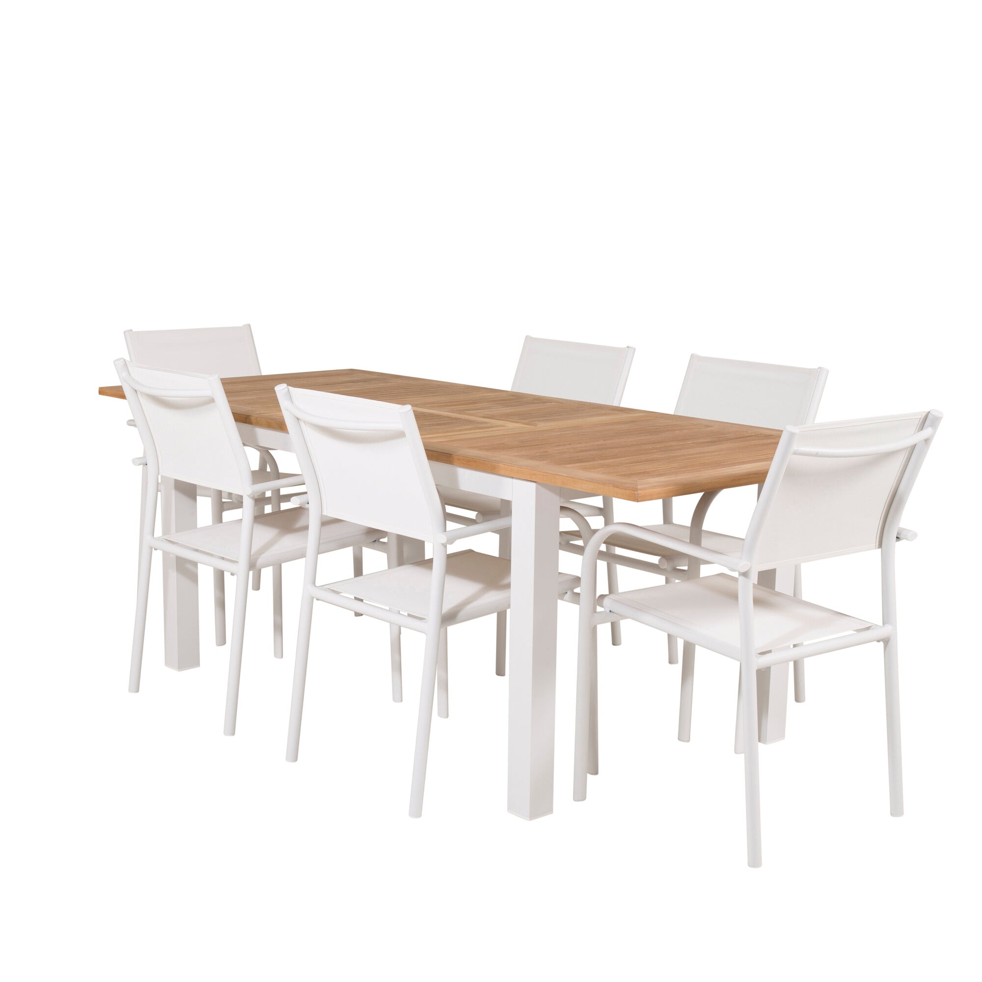 Jídelní stůl Panama 152/210*90 - Bílá Alu / Teak+Santorini křeslo (stohovatelné) - Bílá Alu / Bílá Textilene_6
