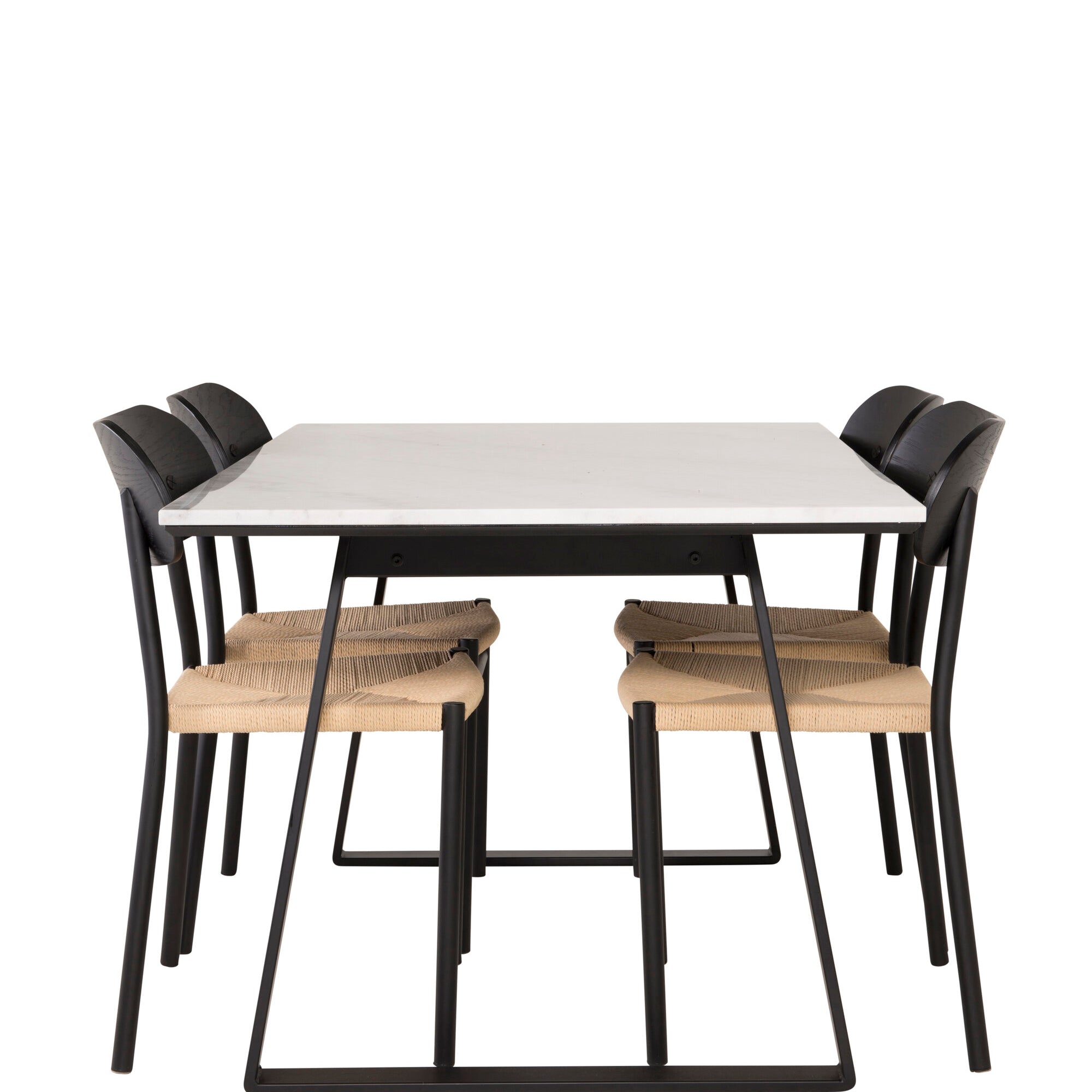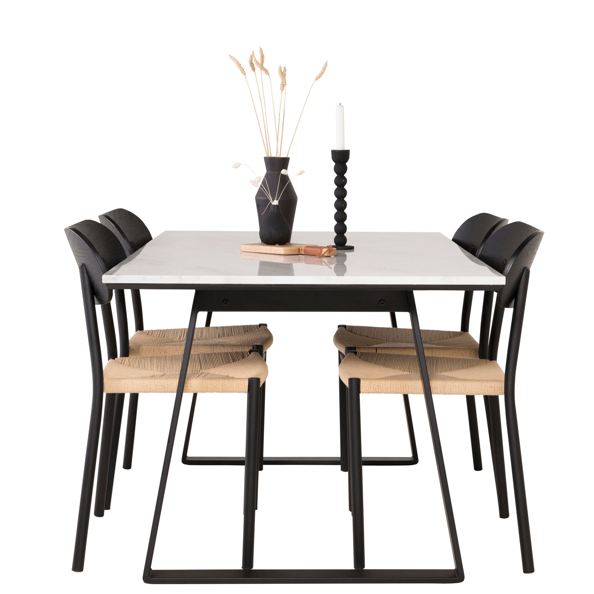 Jídelní stůl Estelle 140*90 – bílý mramor / černé nohy + jídelní židle Polly – černá / přírodní _4