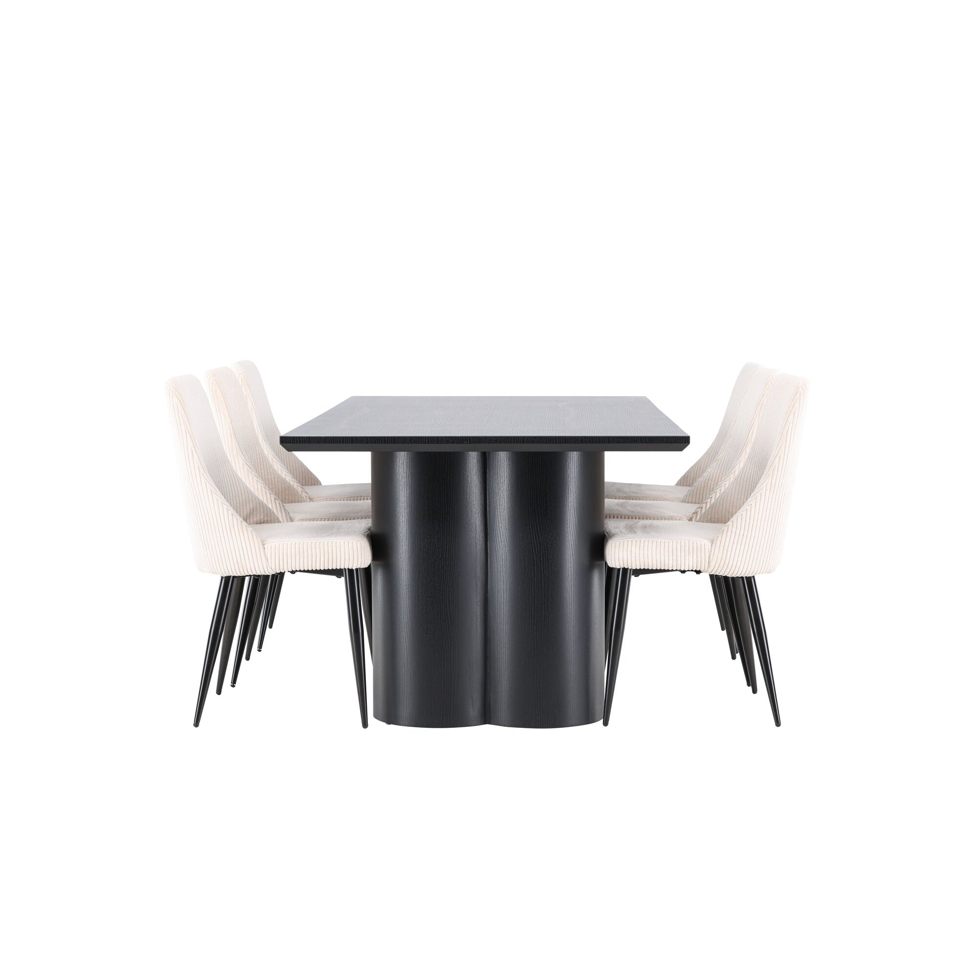 Oválný jídelní stůl Bianca, bílá Wash Černá dýha+židle Berit, černá béžová látka (polyesterové prádlo)_4
