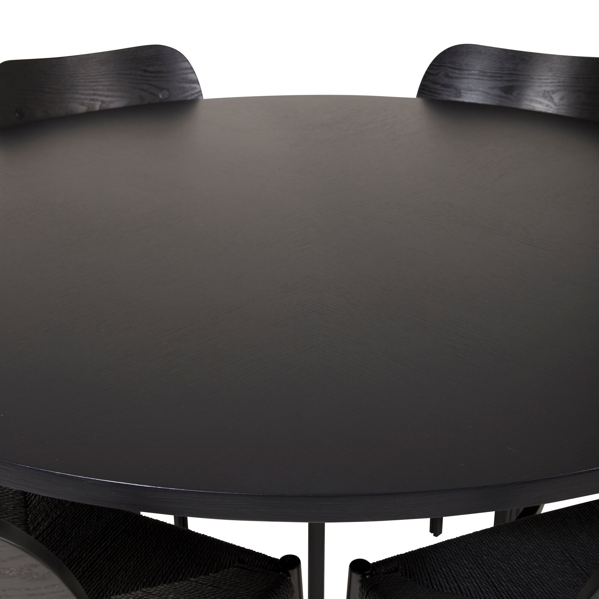 Copenhagen - Jídelní stůl kulatý - Černá / Černá + Jídelní židle Polly - Černá / Přírodní _6