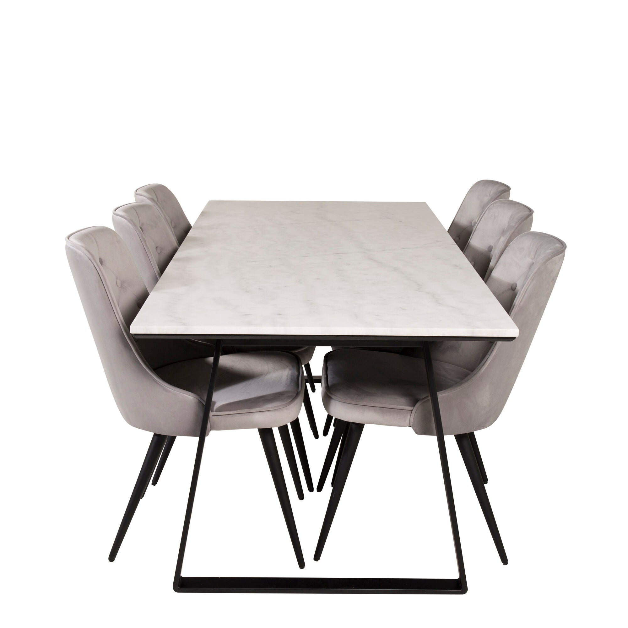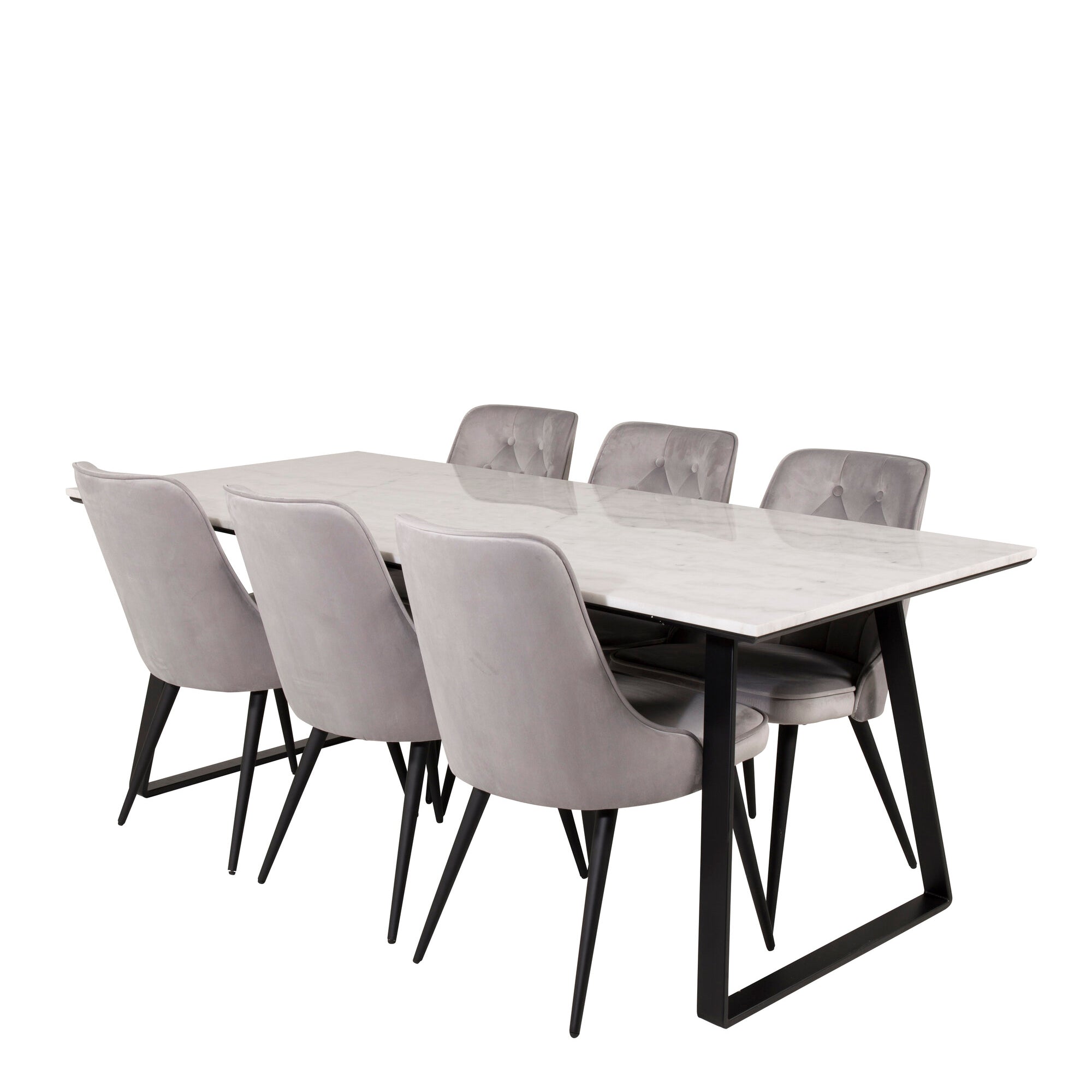 Estelle Matbord - Svart / Vit Marmor - 200*90*H76+Velvet Deluxe Jídelní židle - Černé nohy / Světle šedá velvet_6