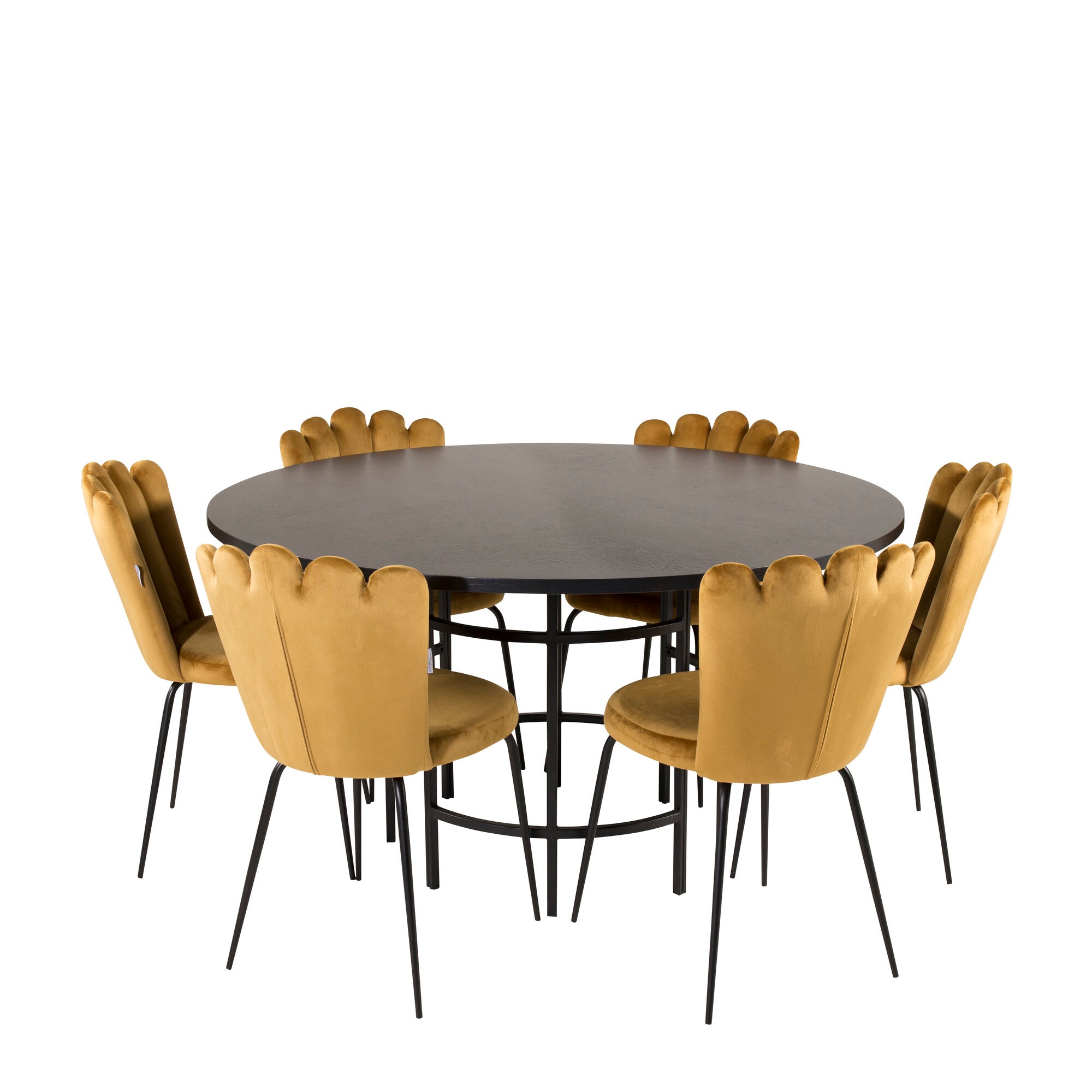 Copenhagen - Jídelní stůl kulatý - Černá / Černá+Limhamn Light - Židle - Zlatá Velvet_6