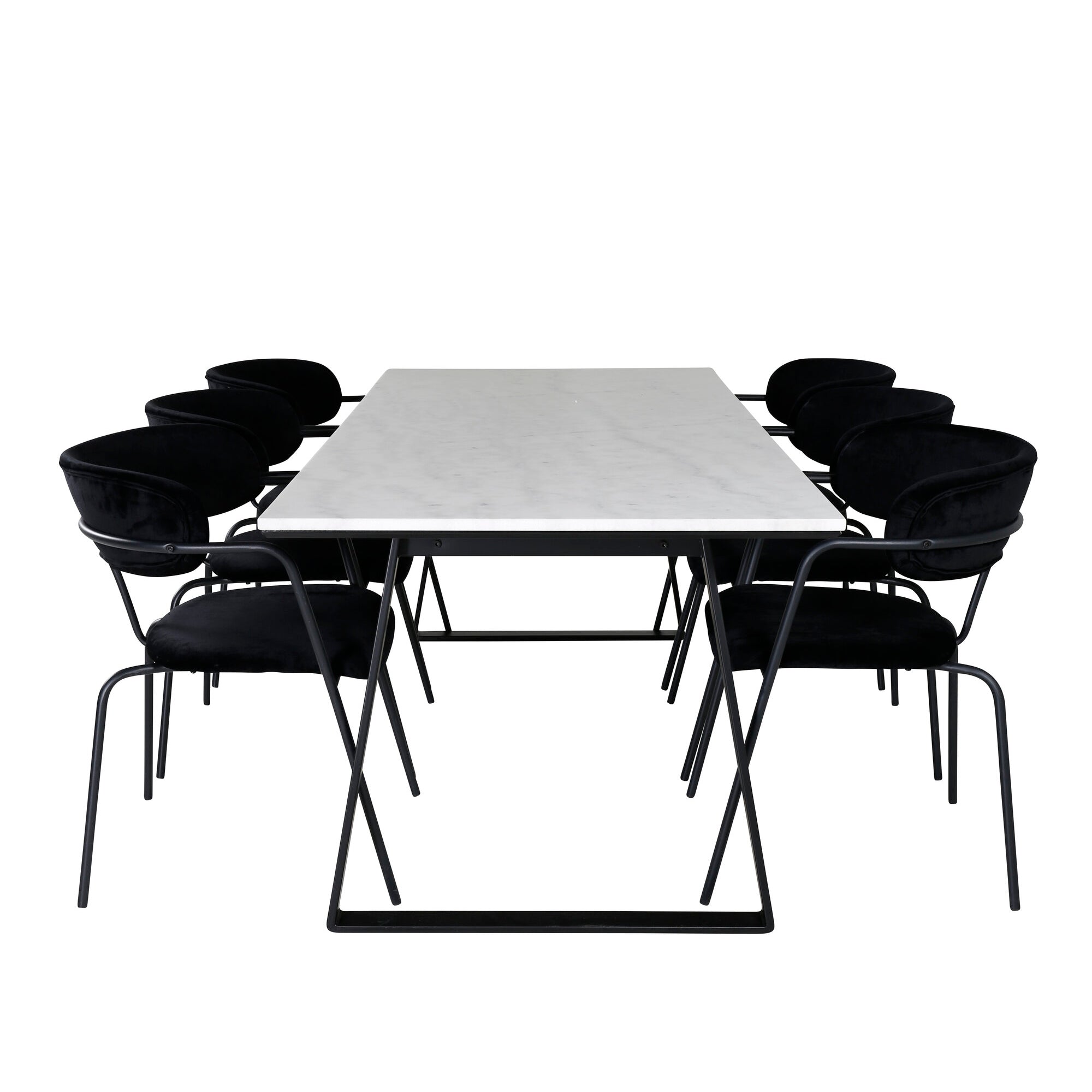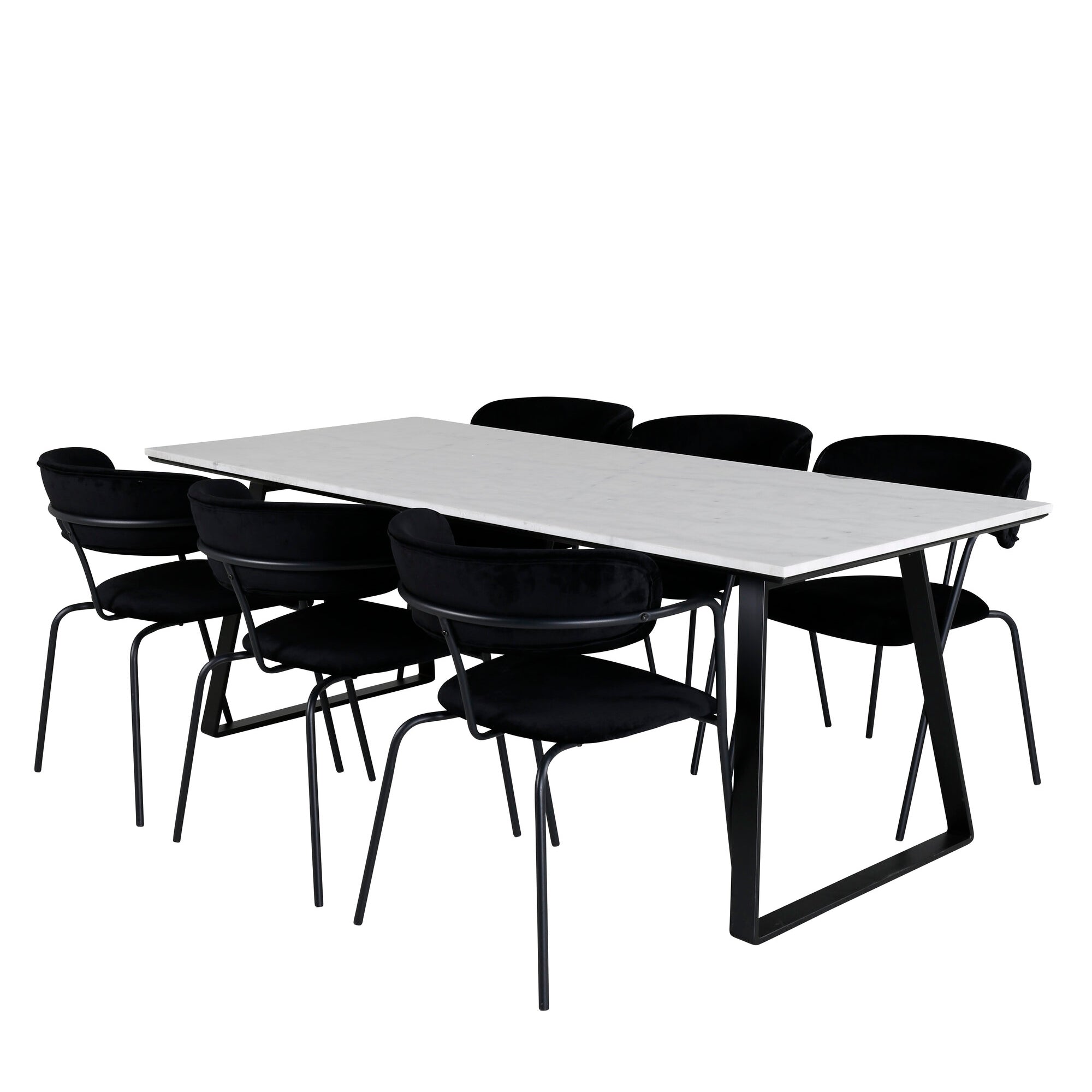 Estelle Jídelní stůl 200*90*H76 - Bílá / Černá+Křeslo Arrow - Černé nohy - Black Velvet_6