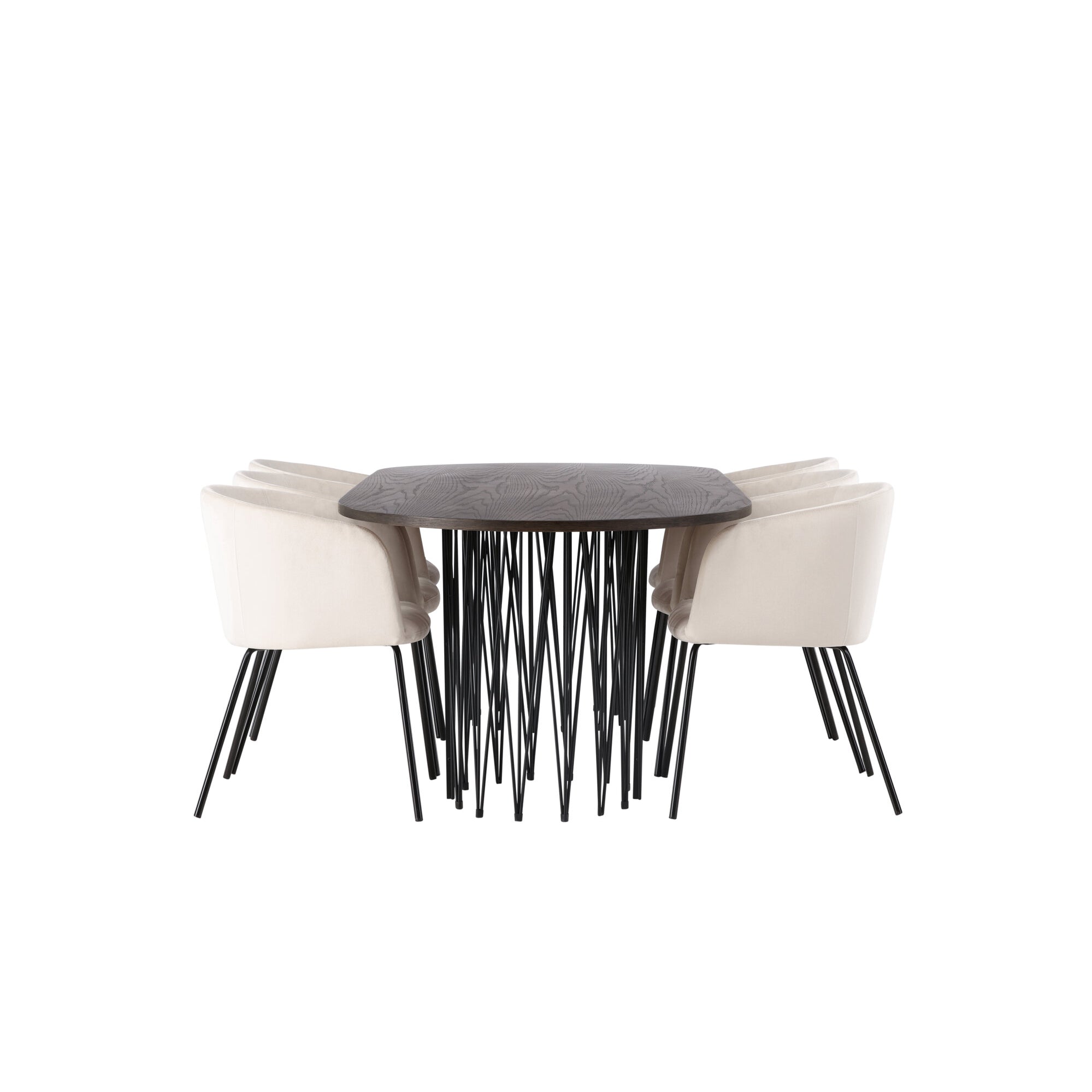 Bootcut oválný jídelní stůl – černá / černá Fanéer + jídelní židle Rosie – černá / béžová látka _6