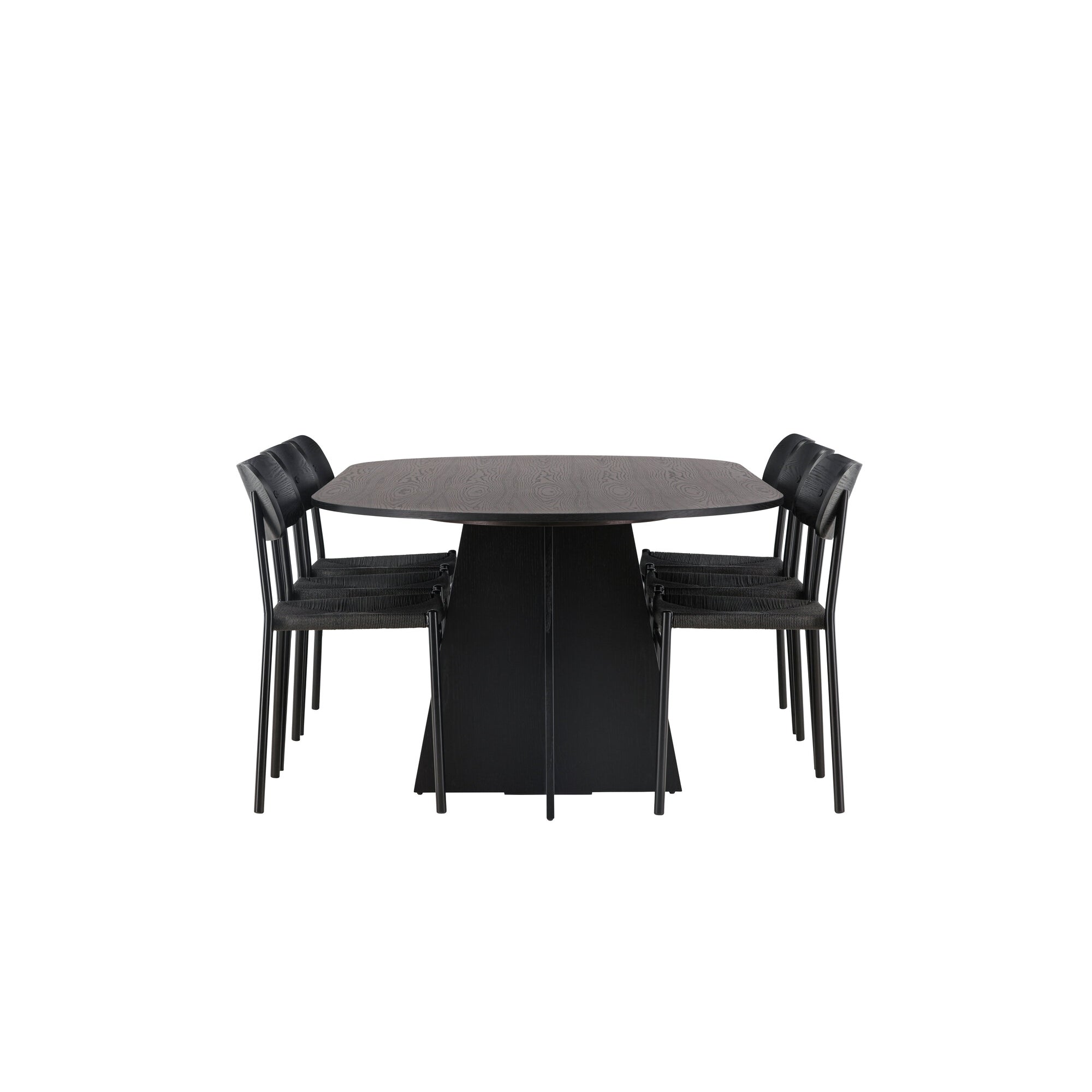 Bootcut Oválný jídelní stůl - černá / černá Fanéer + jídelní židle Rosie - černá / tmavě šedá látka _6