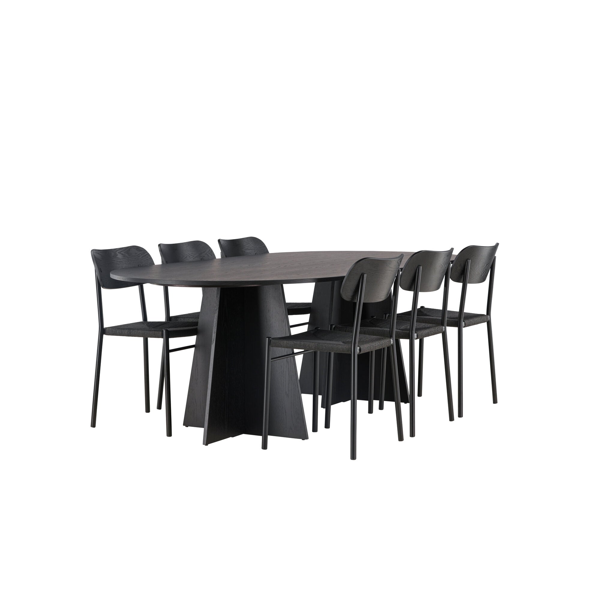 Bootcut Oválný jídelní stůl - černá / černá Fanéer + denní jídelní židle - matná černá / bílé prádlo _6