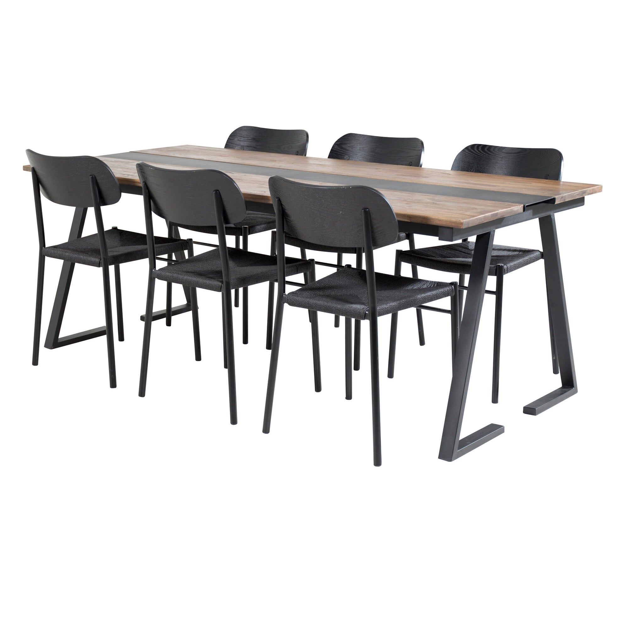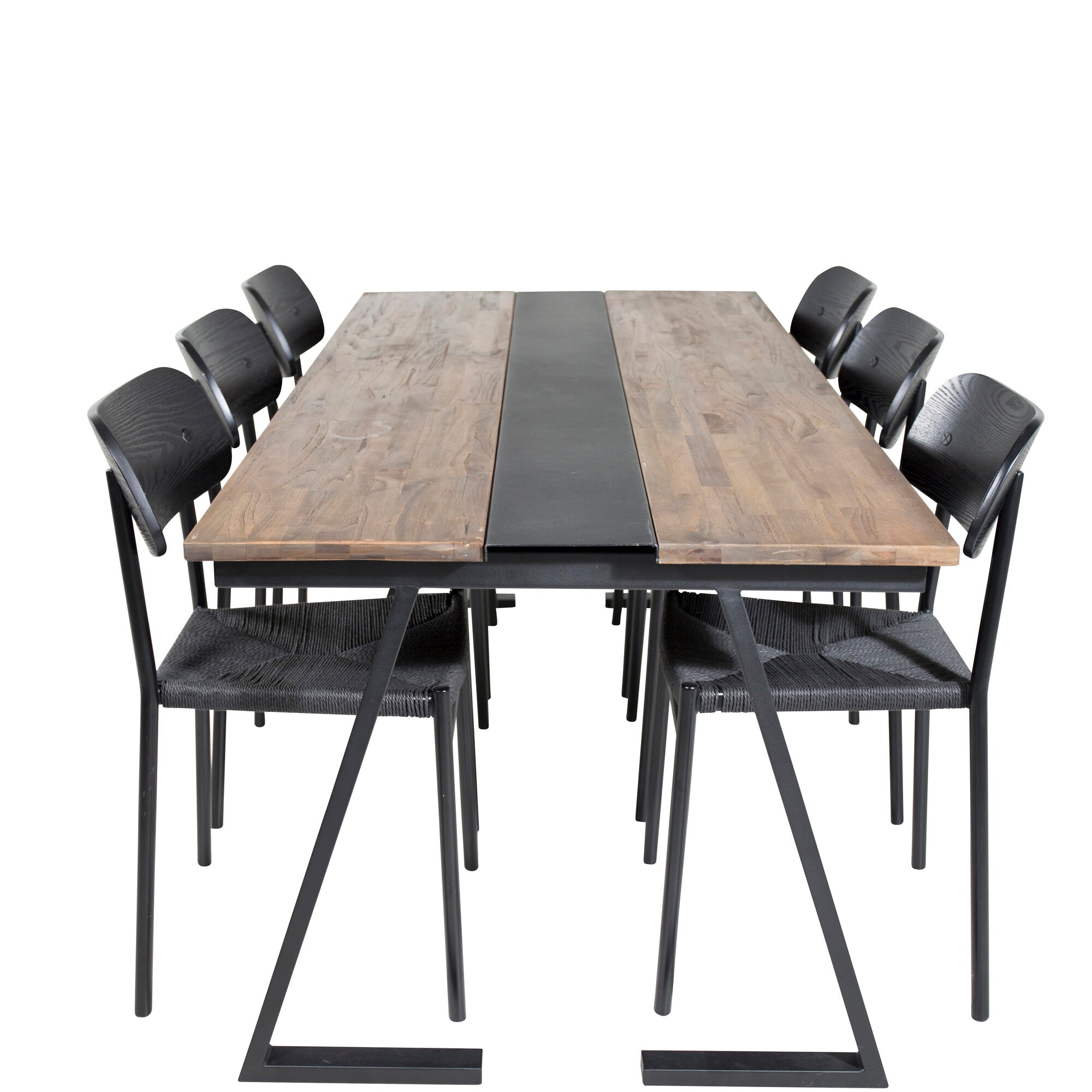 Jakarta Matbord - Svart / mörk Teak - 200*90*H75 +Jídelní židle Polly 2-balení - Černá / Černá _6